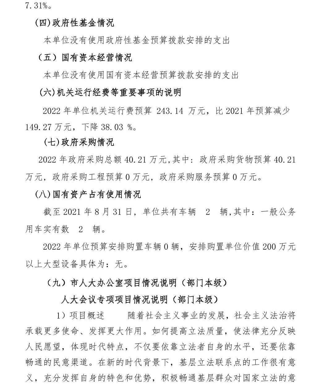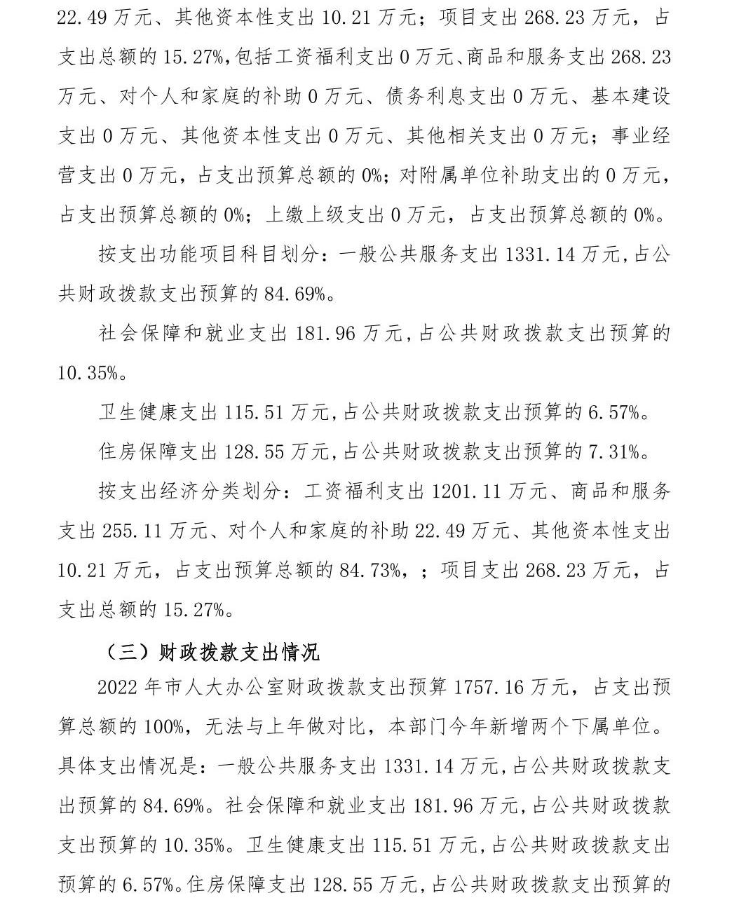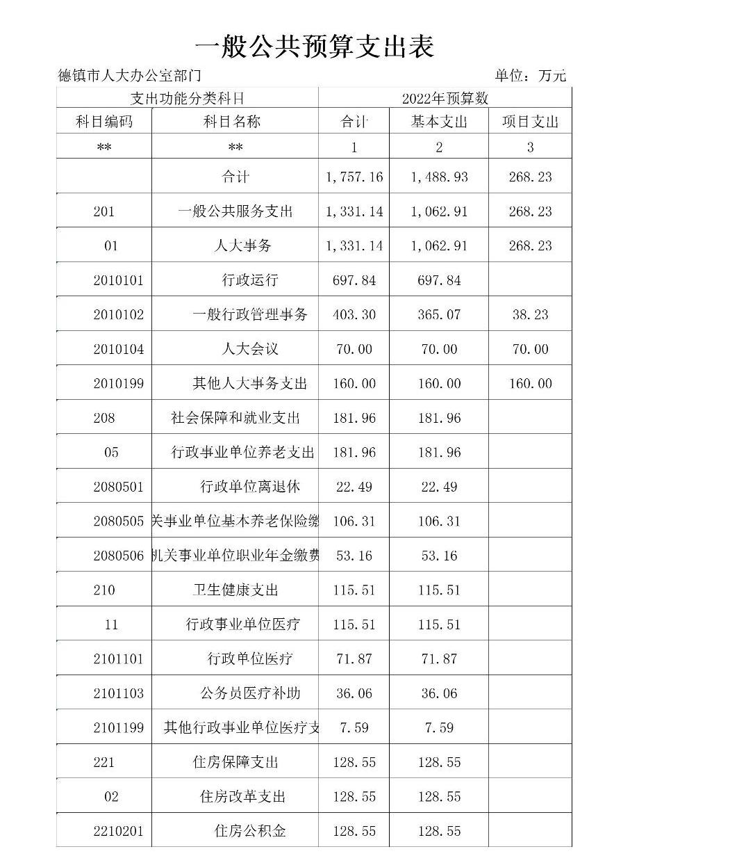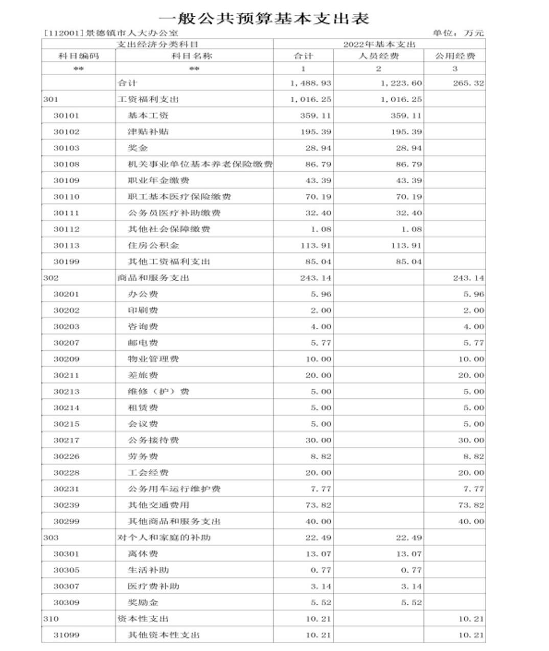 景德镇市人大办公室2022年部门预算公开