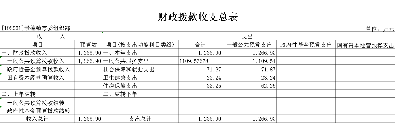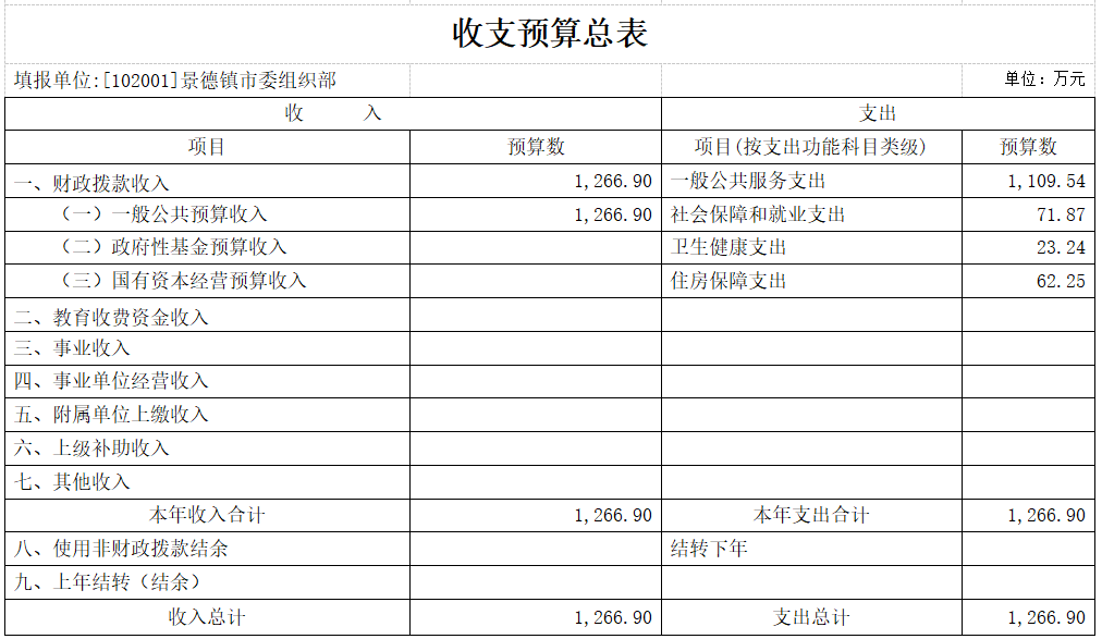 2022年景德镇市委组织部财政拨款支出预算总额1266.90万元,较上年预算安排减少913.14万元;
