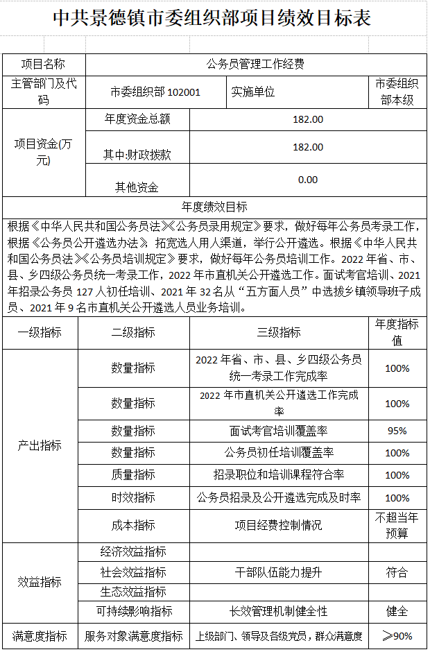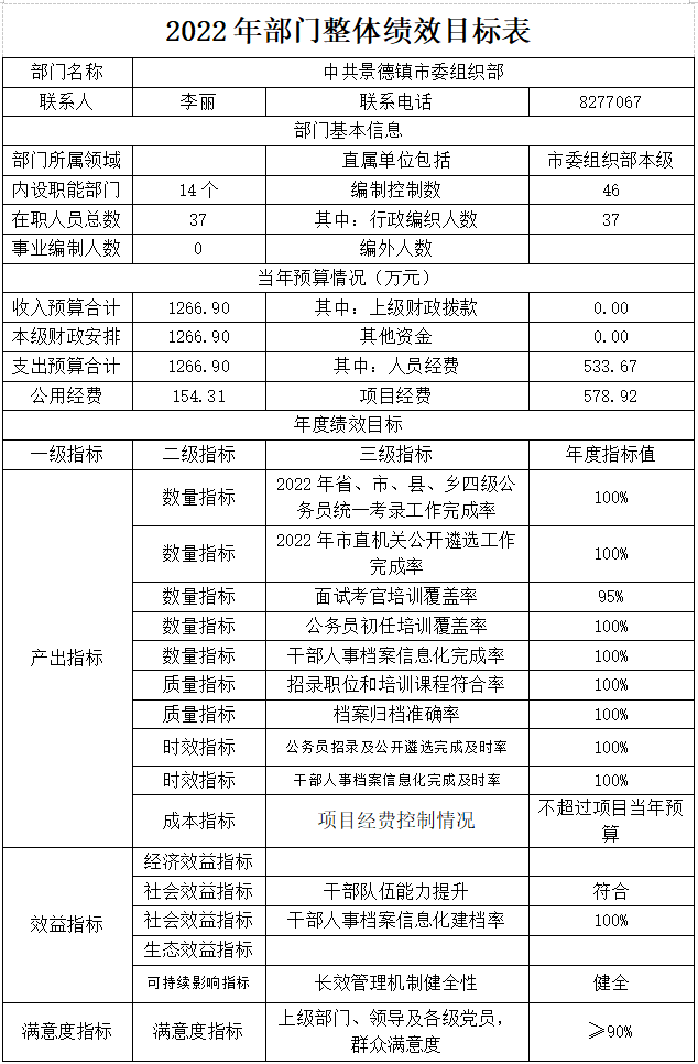 2022年景德镇市委组织部共有预算单位 1 个,即部门本级。