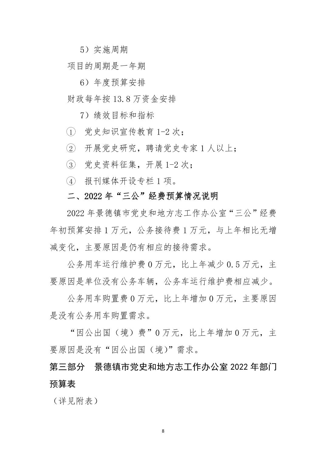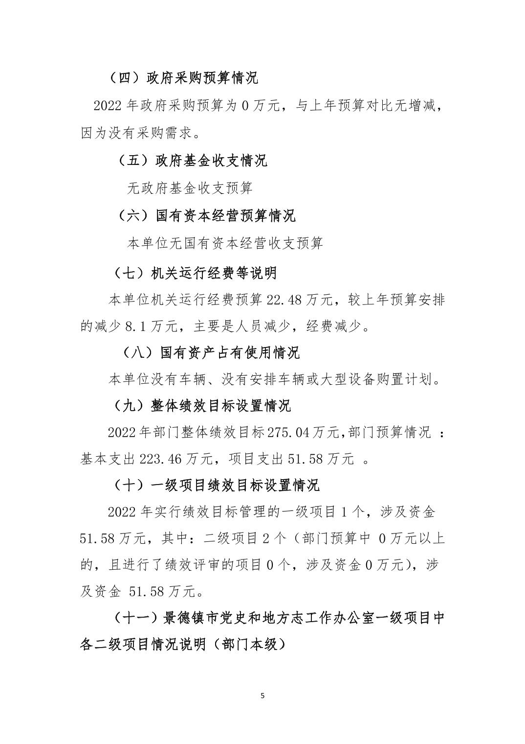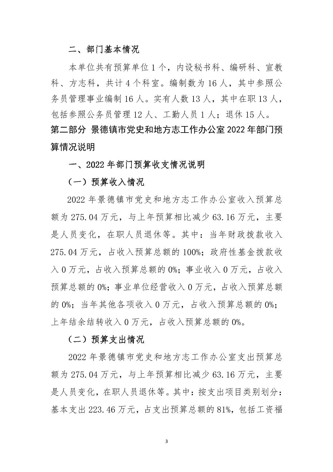 景德镇市党史和地方志工作办公室本级2022年部门预算说明