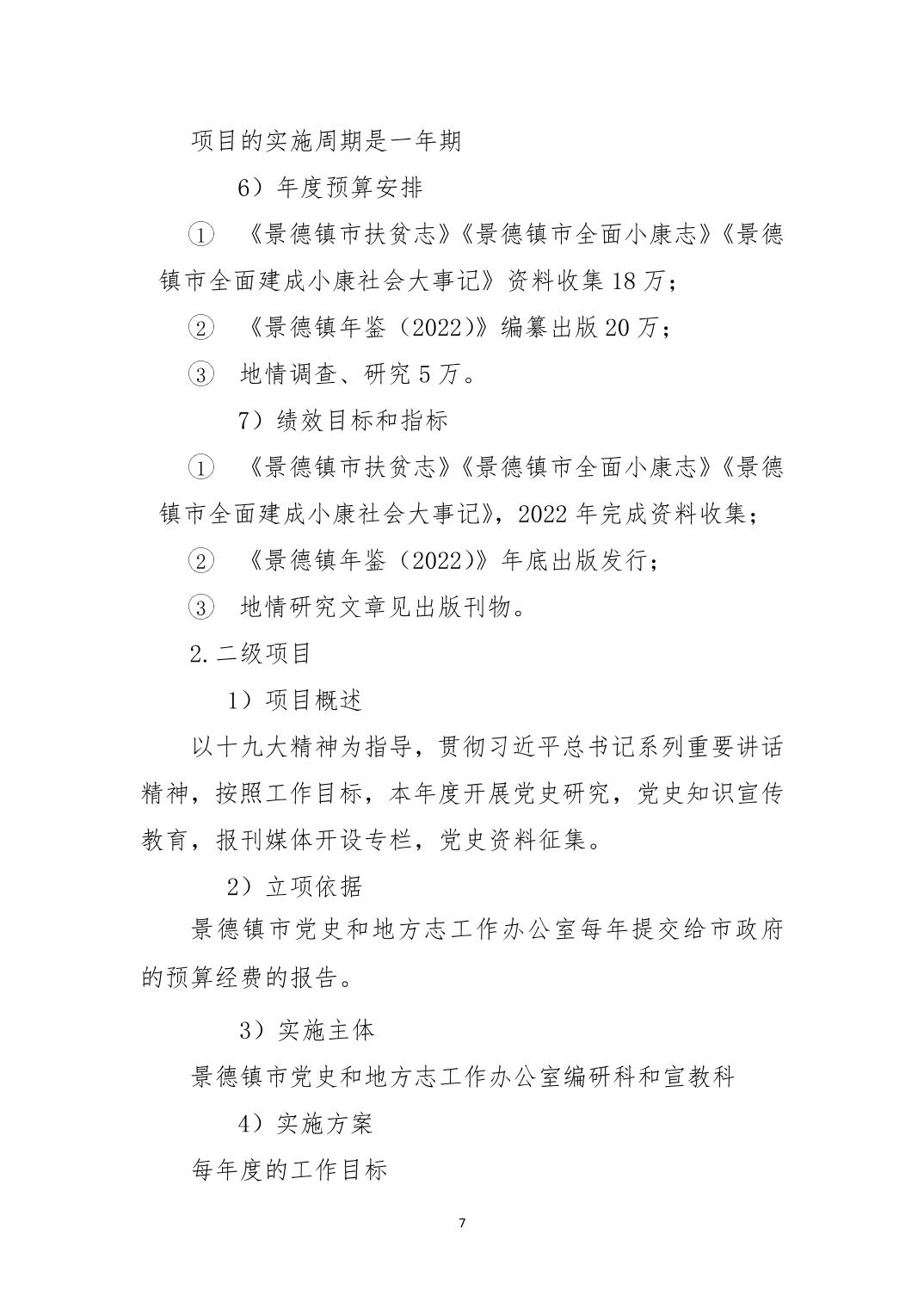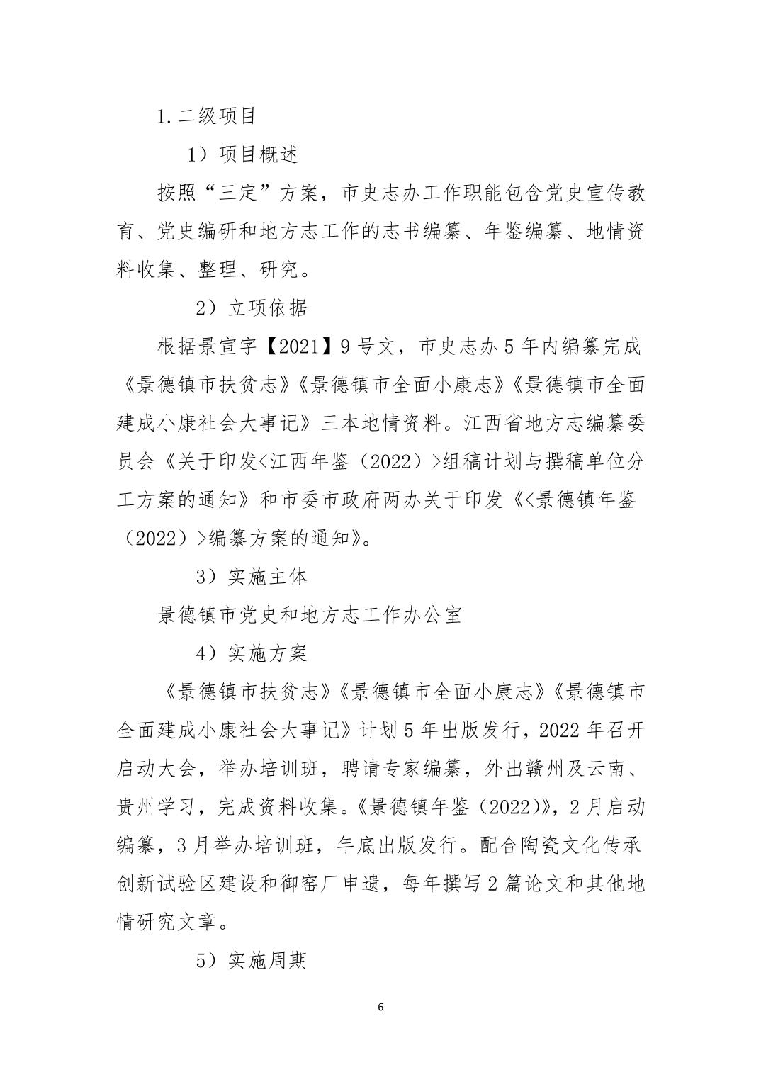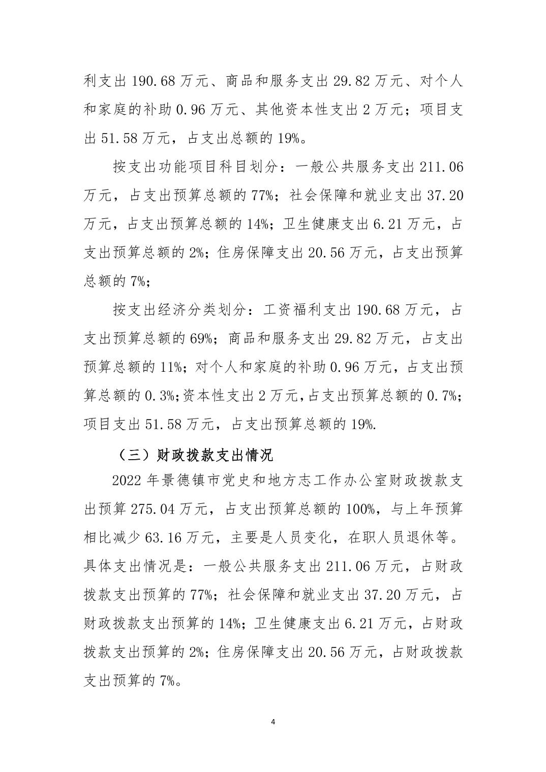 景德镇市党史和地方志工作办公室本级2022年部门预算说明