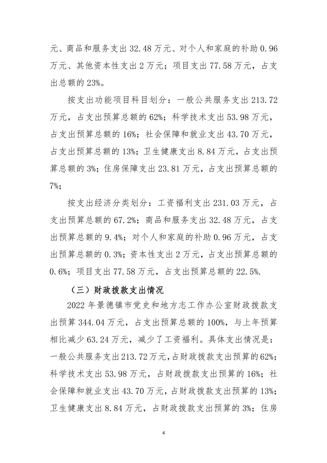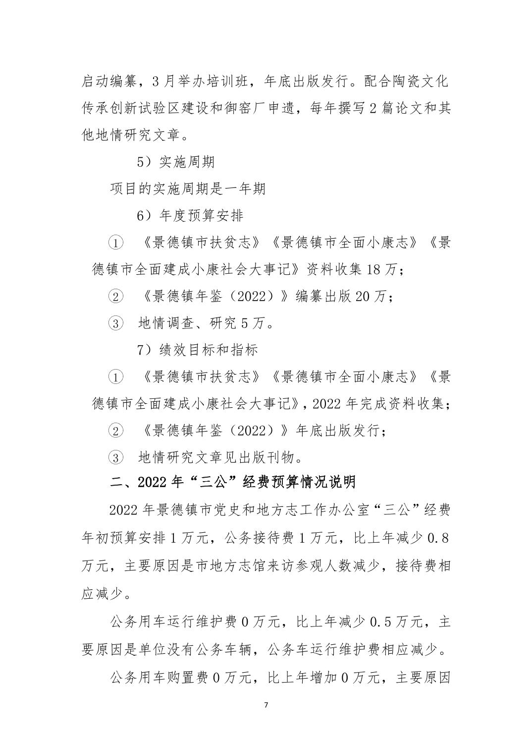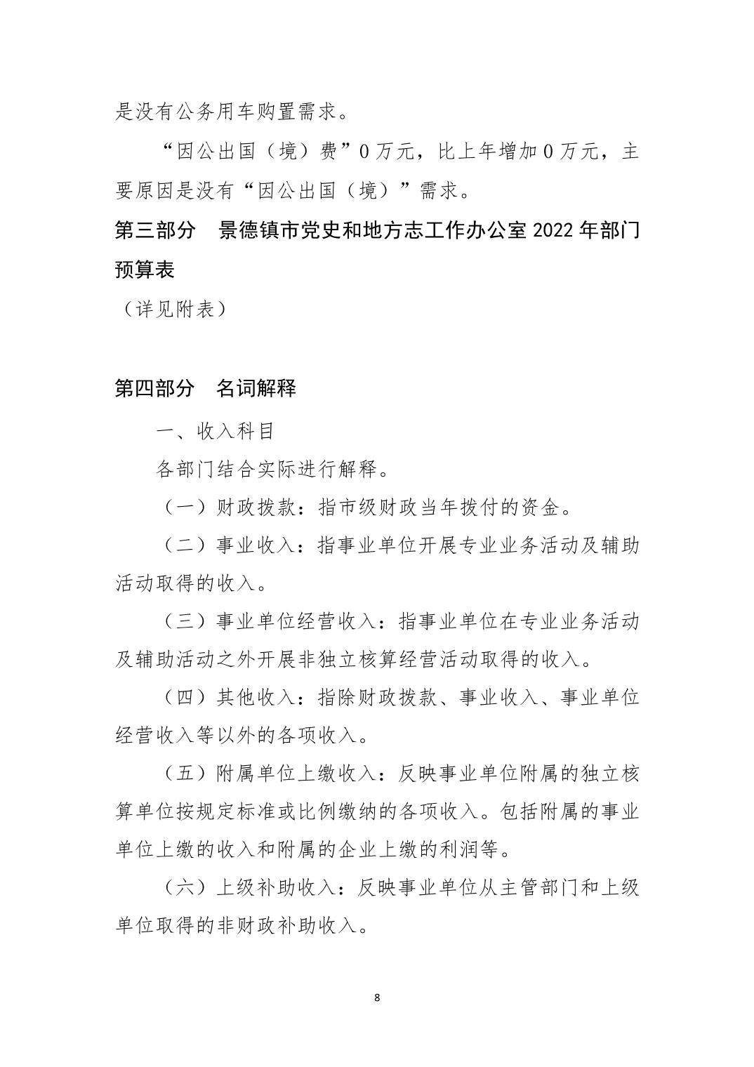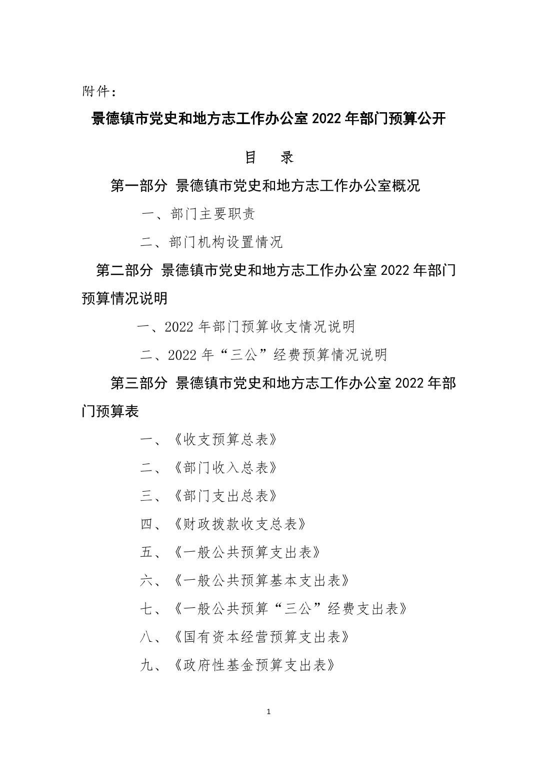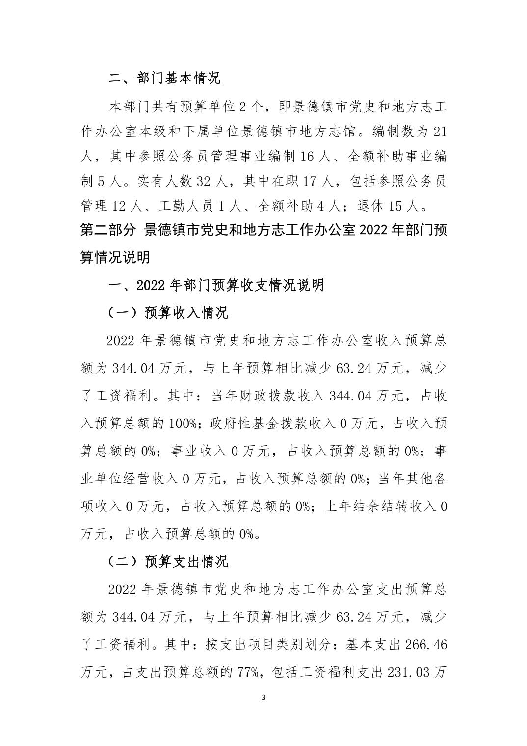 景德镇市党史和地方志工作办公室2022年部门预算说明(部门)