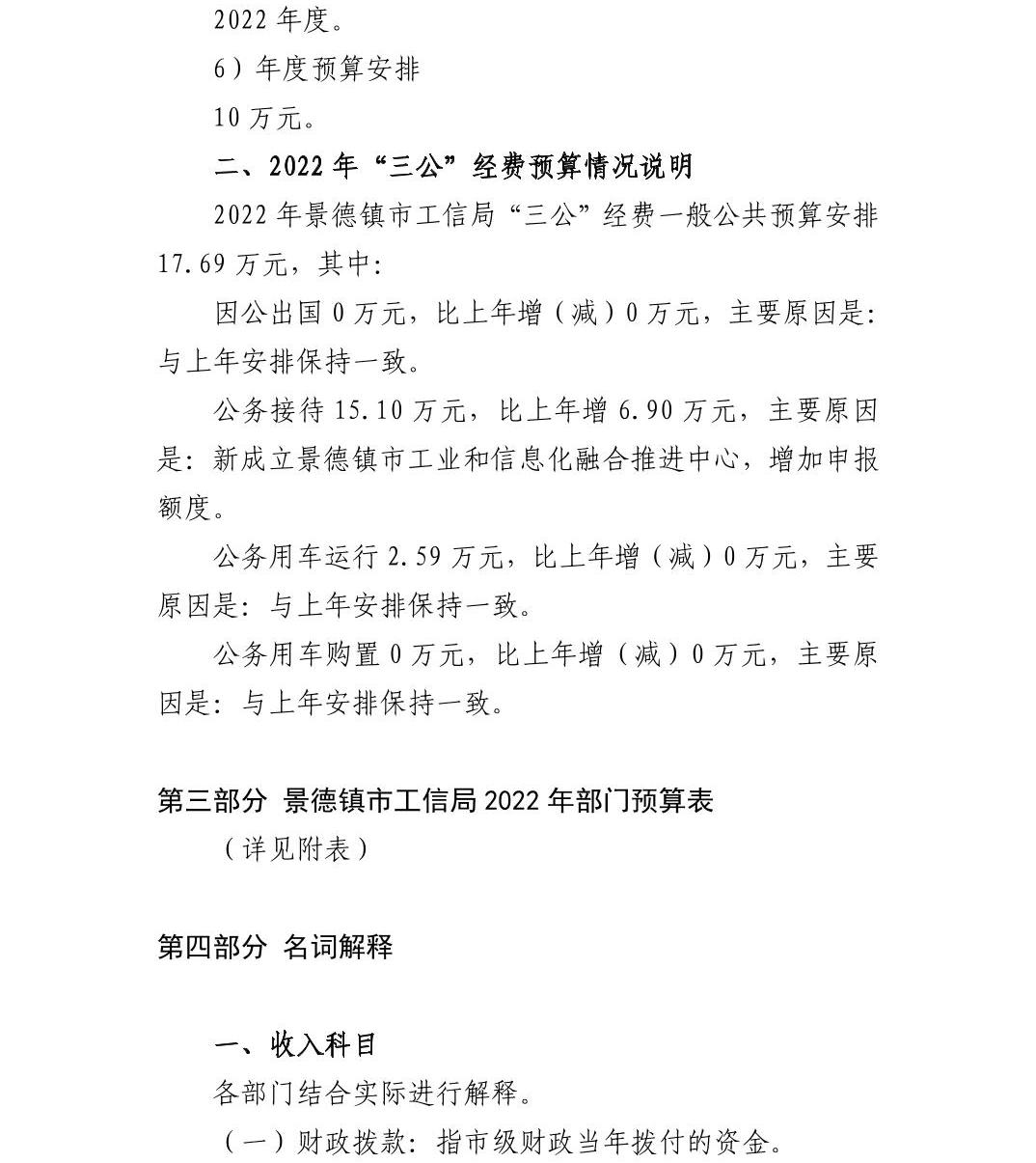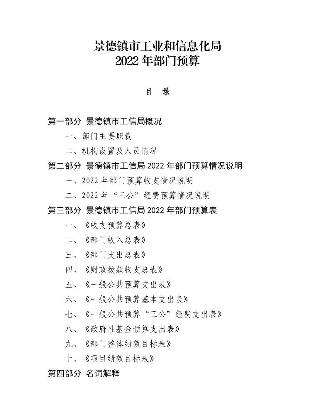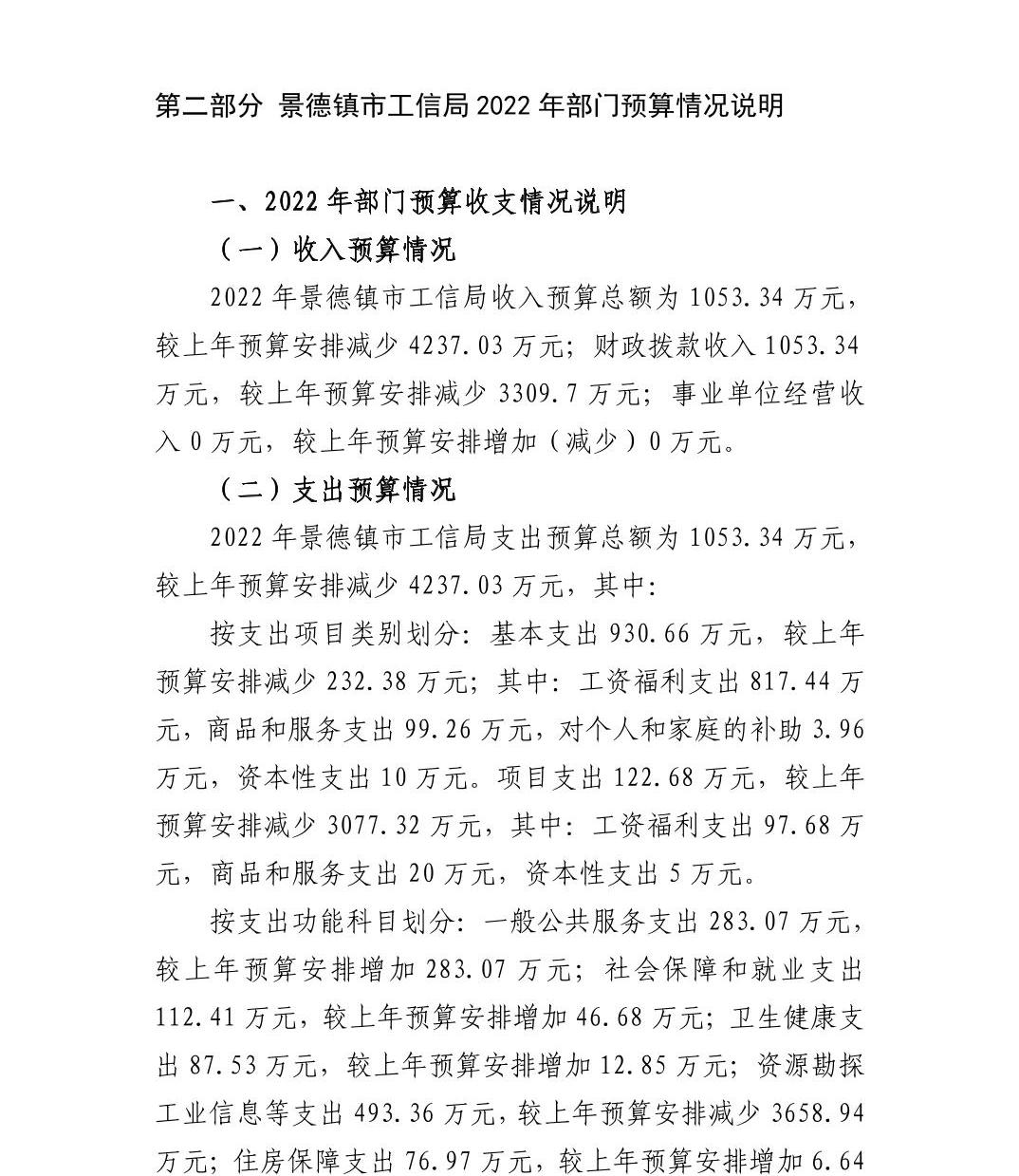 景德镇市工业和信息化局2022年部门预算