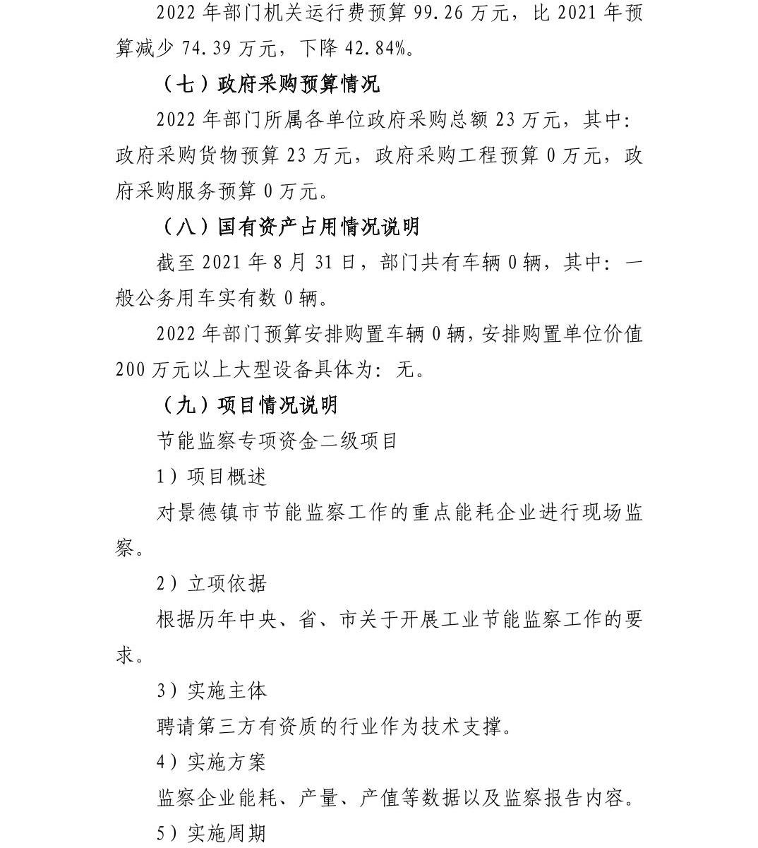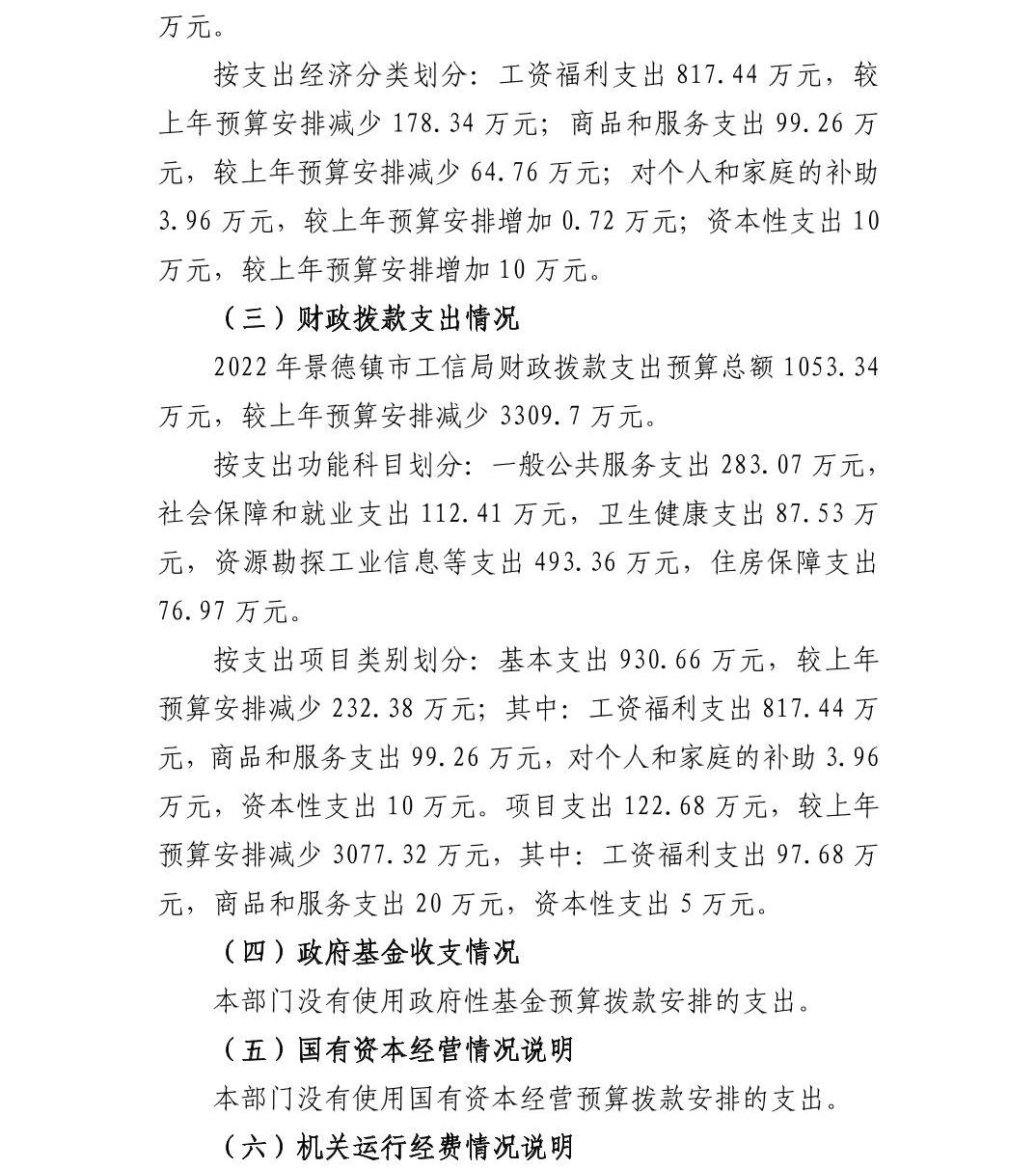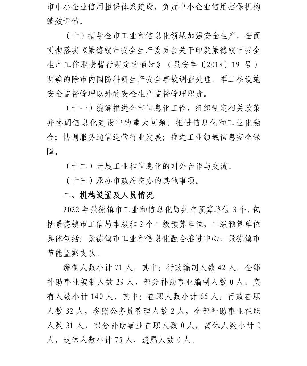 景德镇市工业和信息化局2022年部门预算