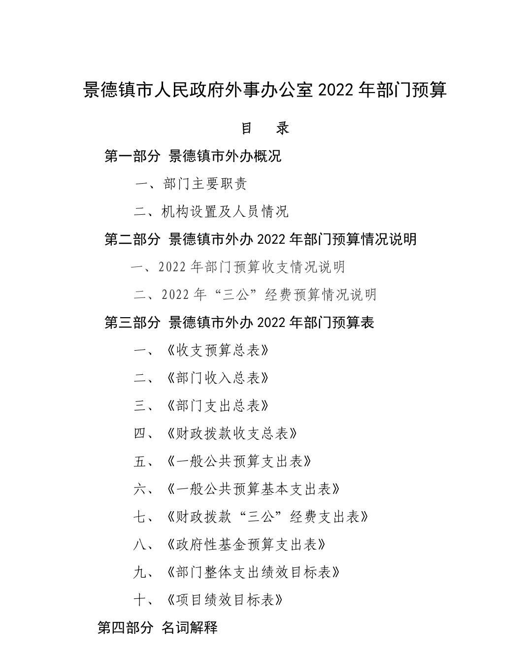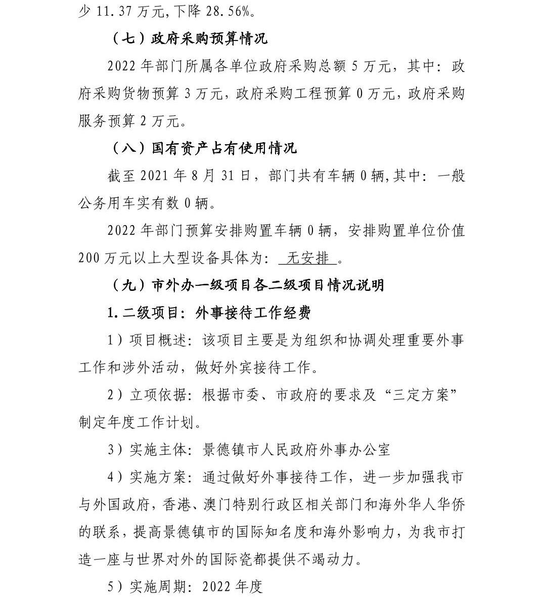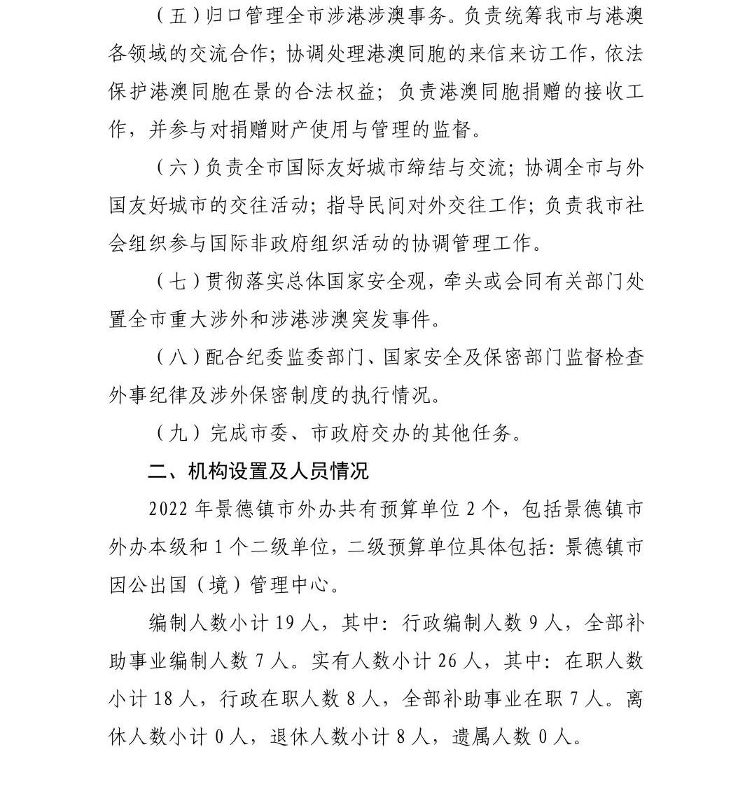 景德镇市外办2022年部门预算编制说明