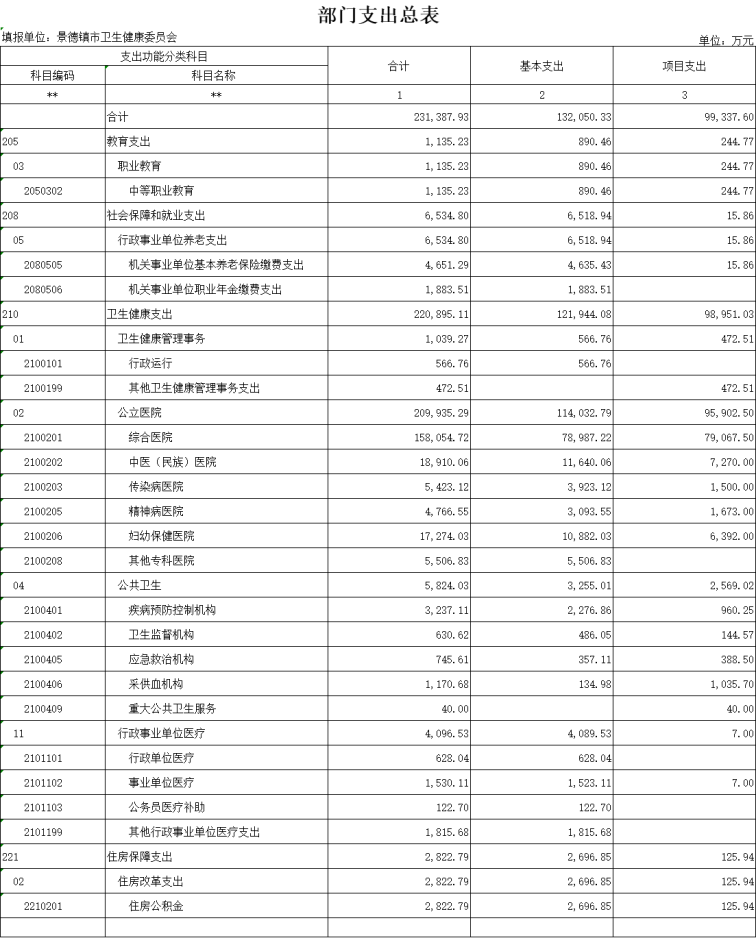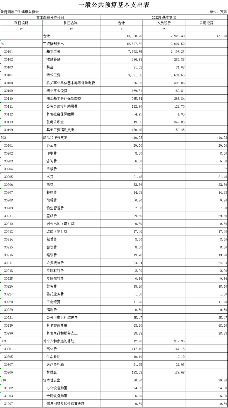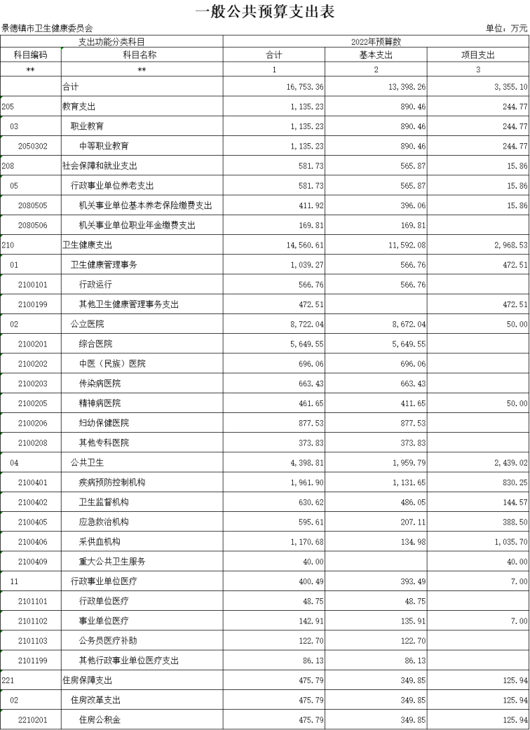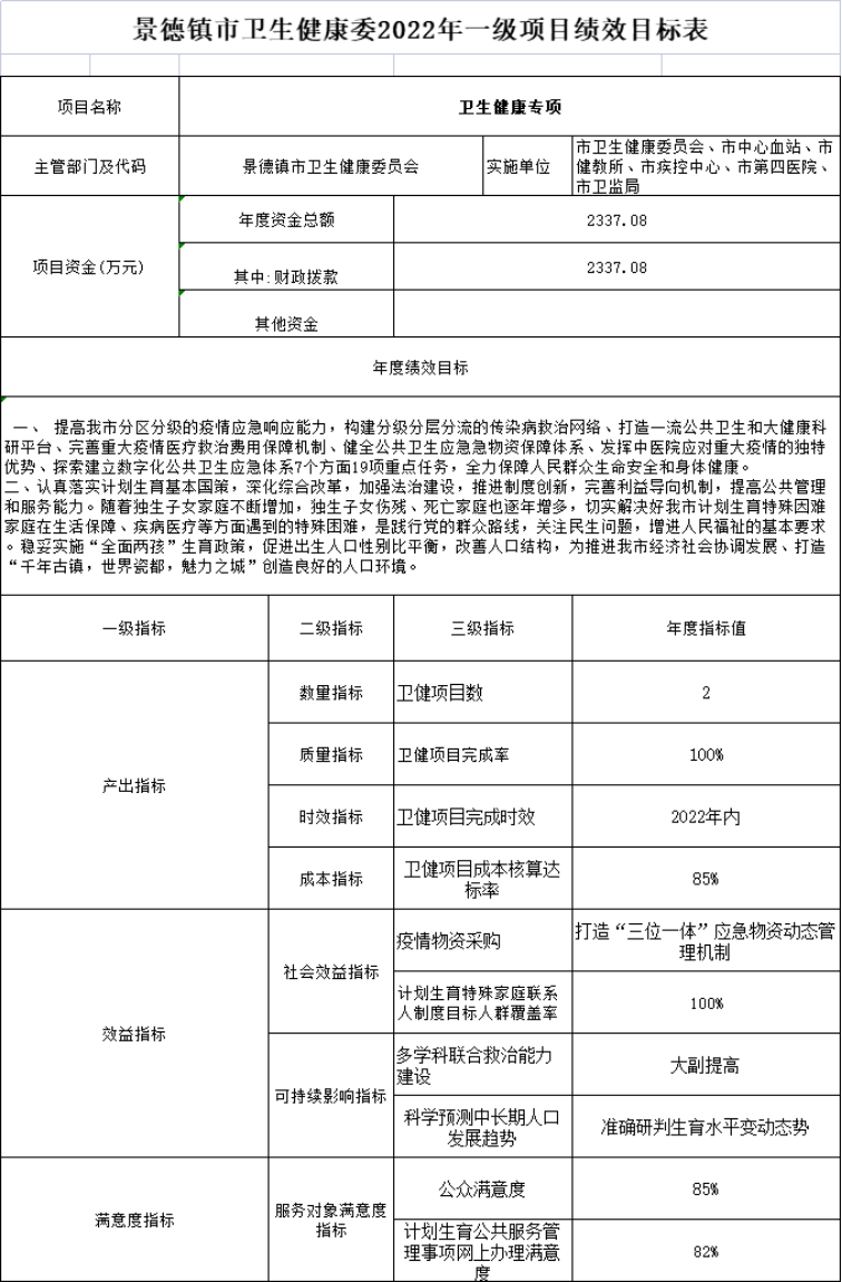景德镇市卫生健康委员会2022年部门预算