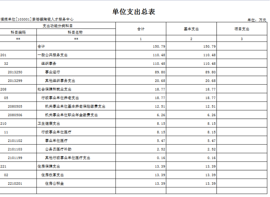 按支出功能科目划分:一般公共服务支出110.48万元,社会保障和就业支出18.77万元,卫生健康支出8.15万元,住房保障支出13.39万元。