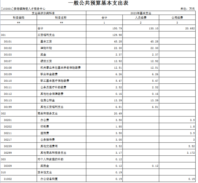 按支出项目类别划分:基本支出150.79万元,其中:工资福利支出129.98万元,商品和服务支出20.49万元,对个人和家庭的补助0.12万元,资本性支出0.19万元。项目支出0万元;其中:商品和服务支出0万元,资本性支出0万元。