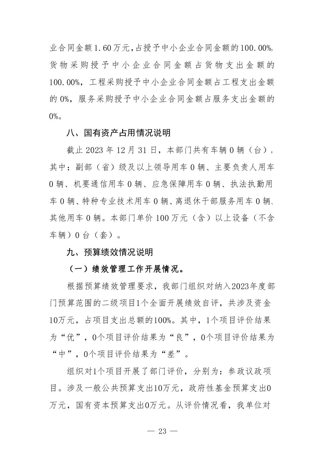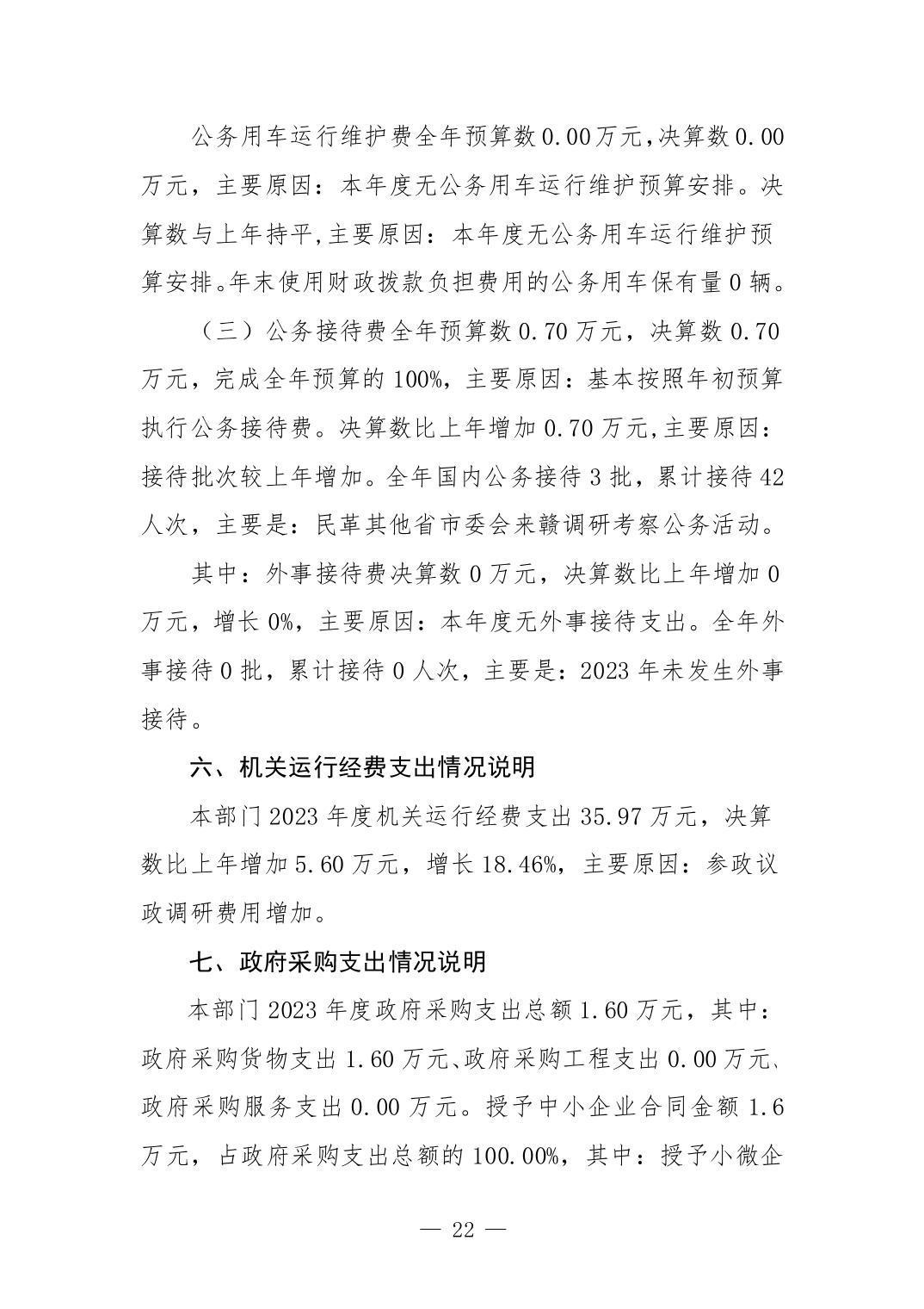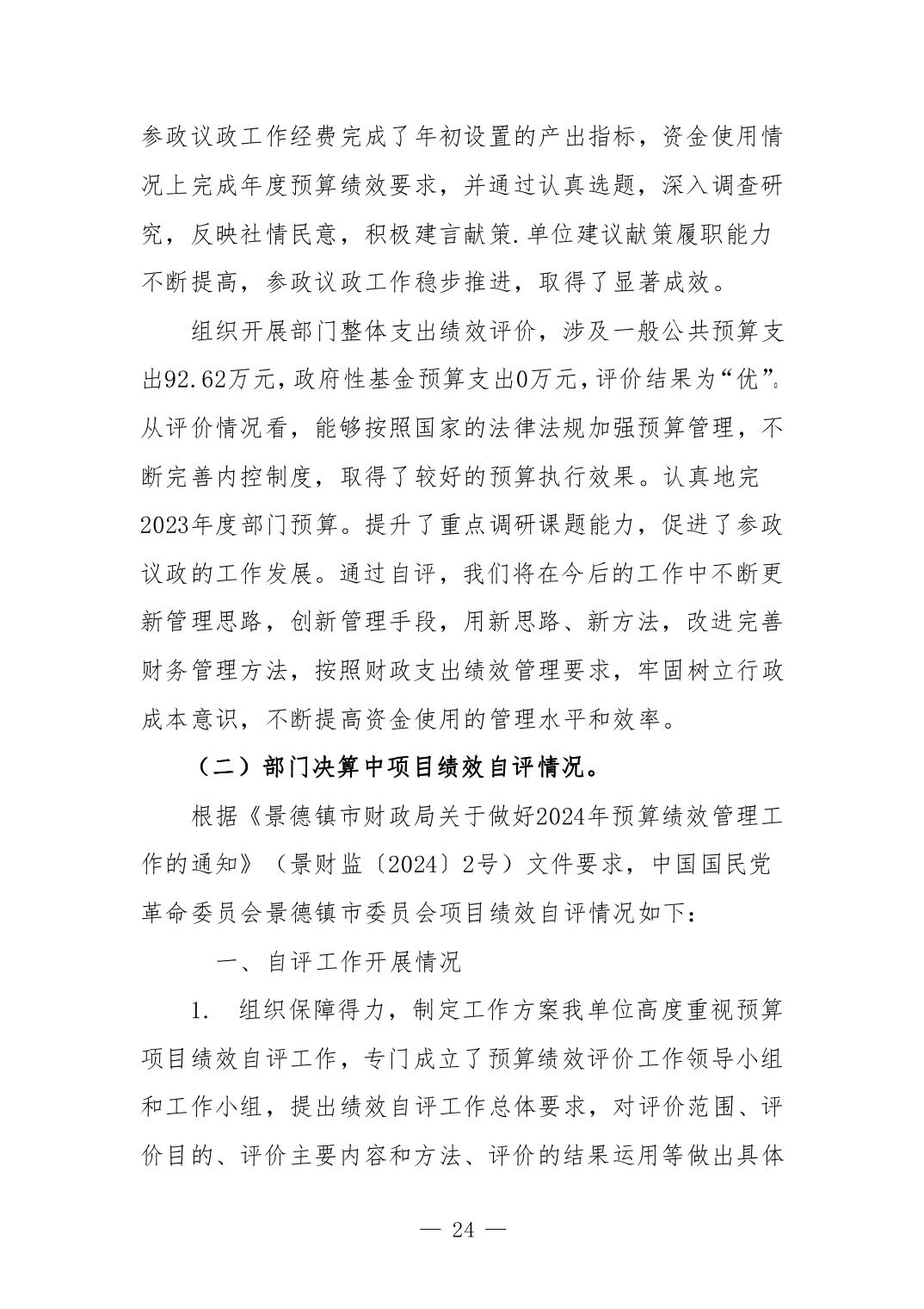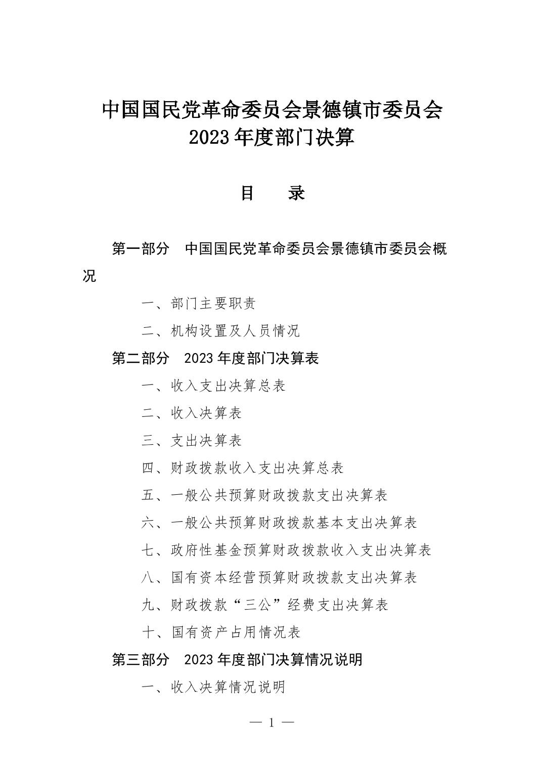 中国国民党革命委员会景德镇市委员会2023年部门决算公开报告