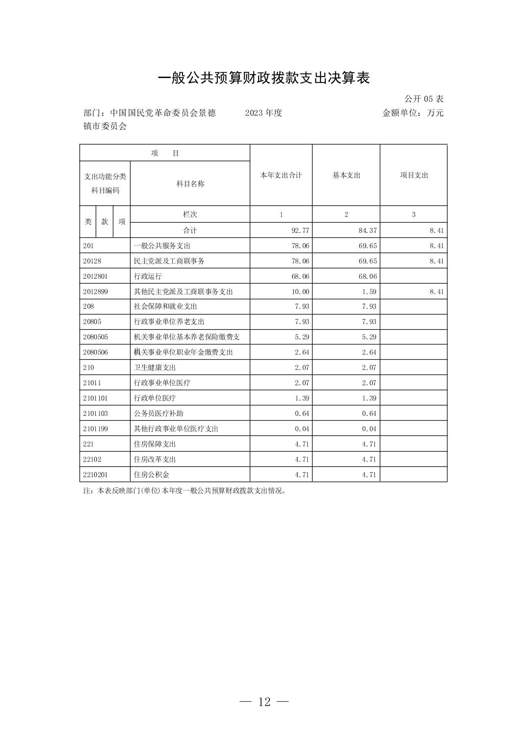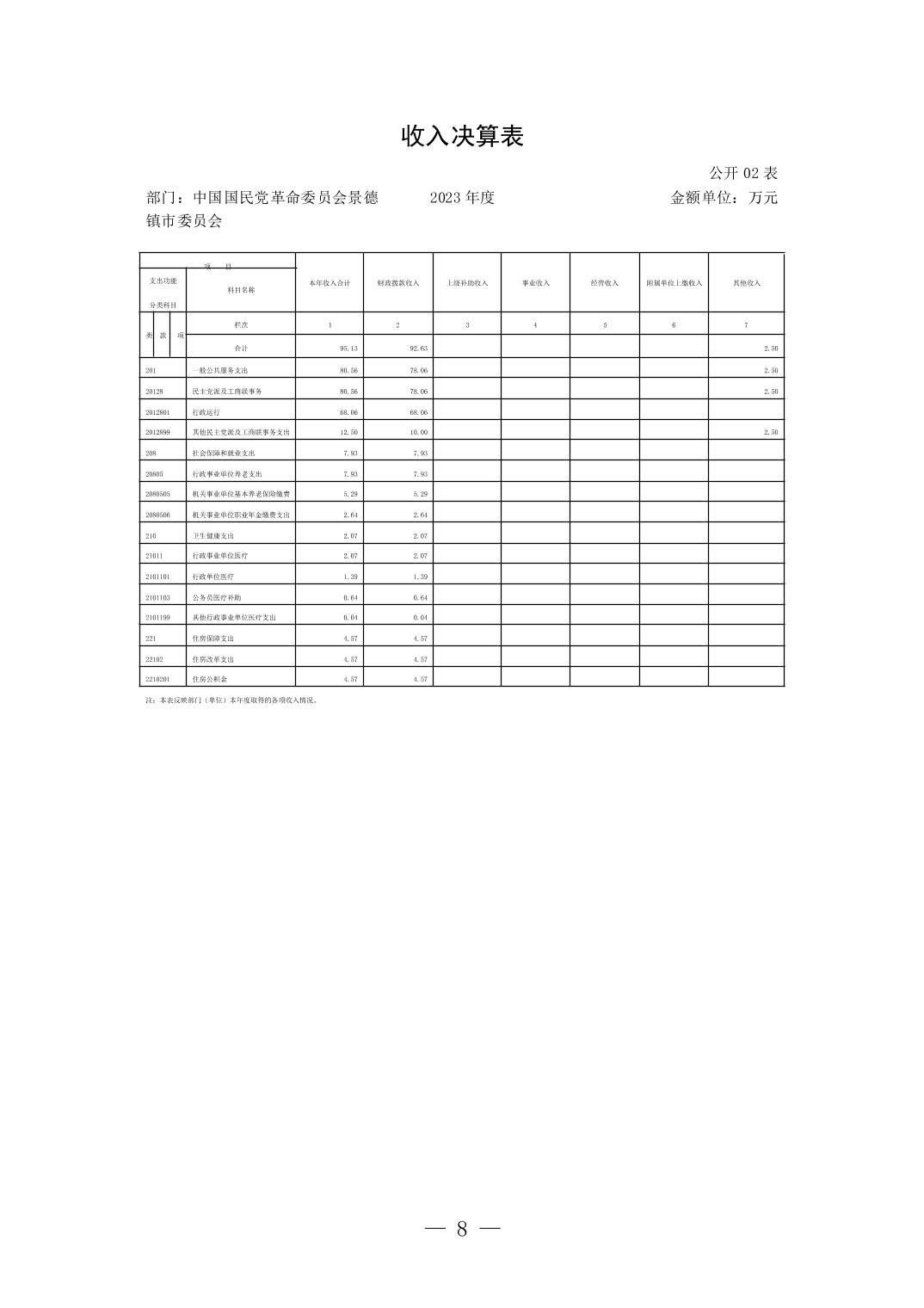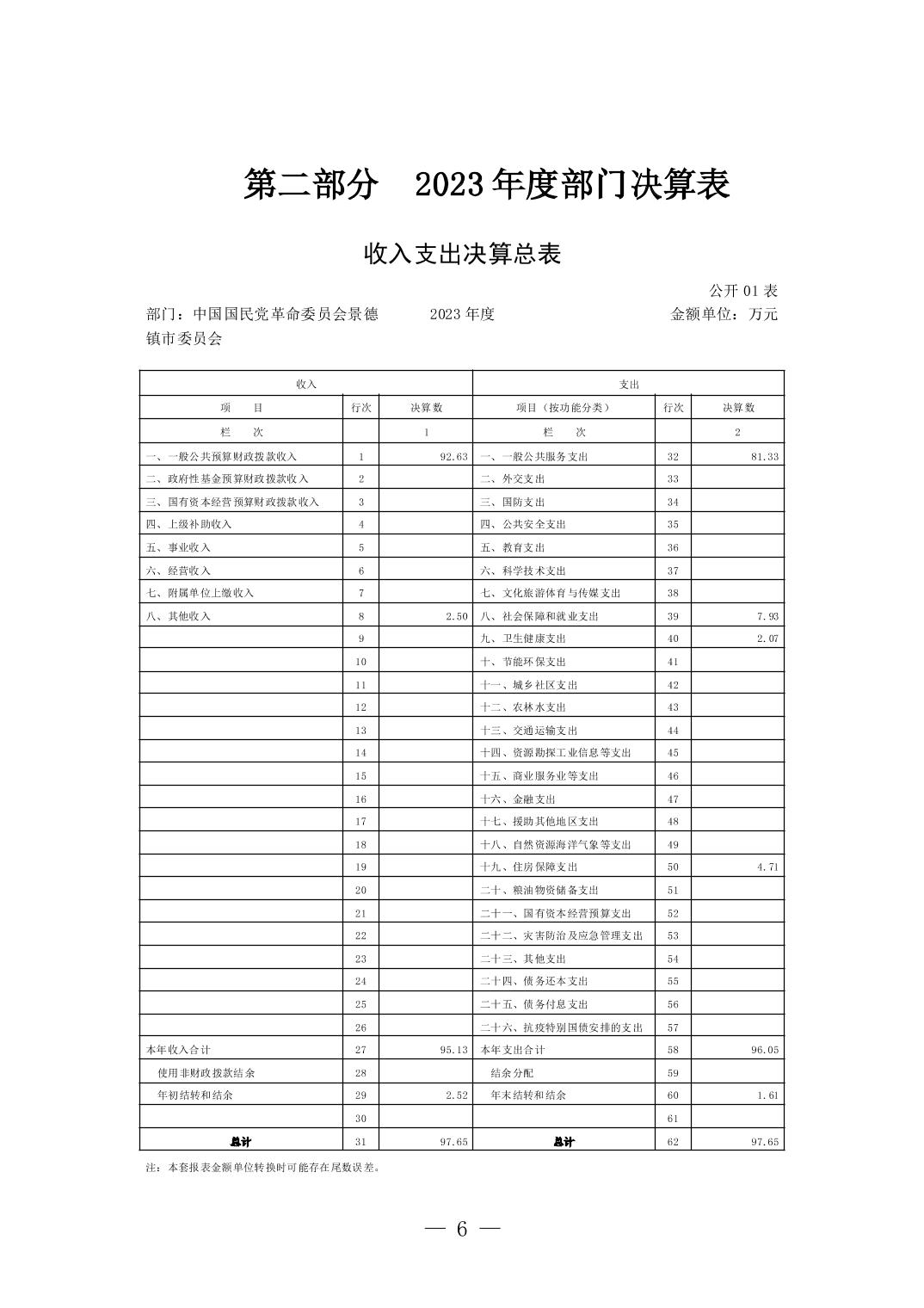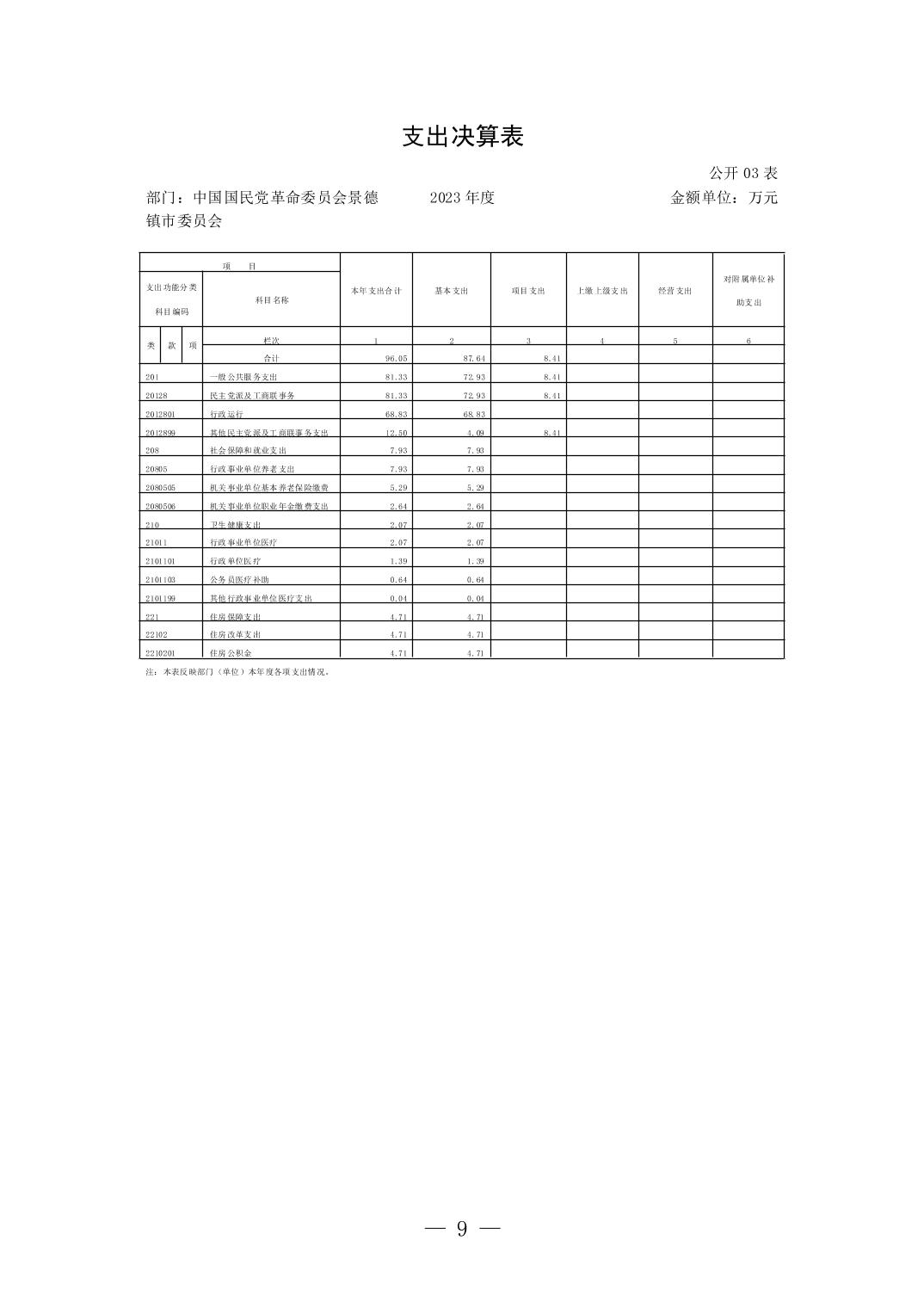 中国国民党革命委员会景德镇市委员会2023年部门决算公开报告