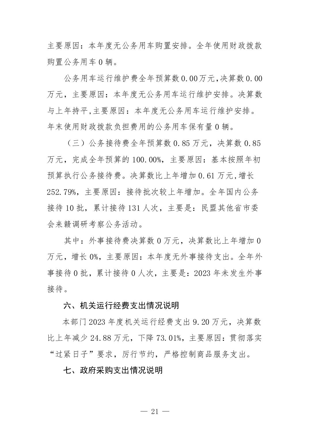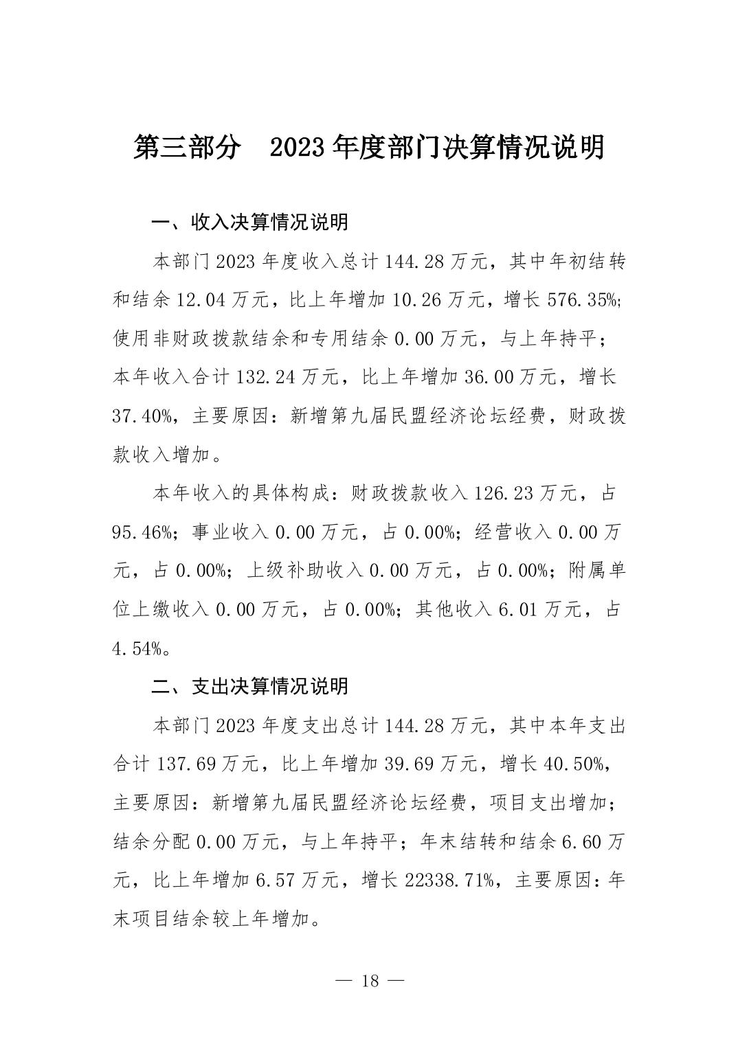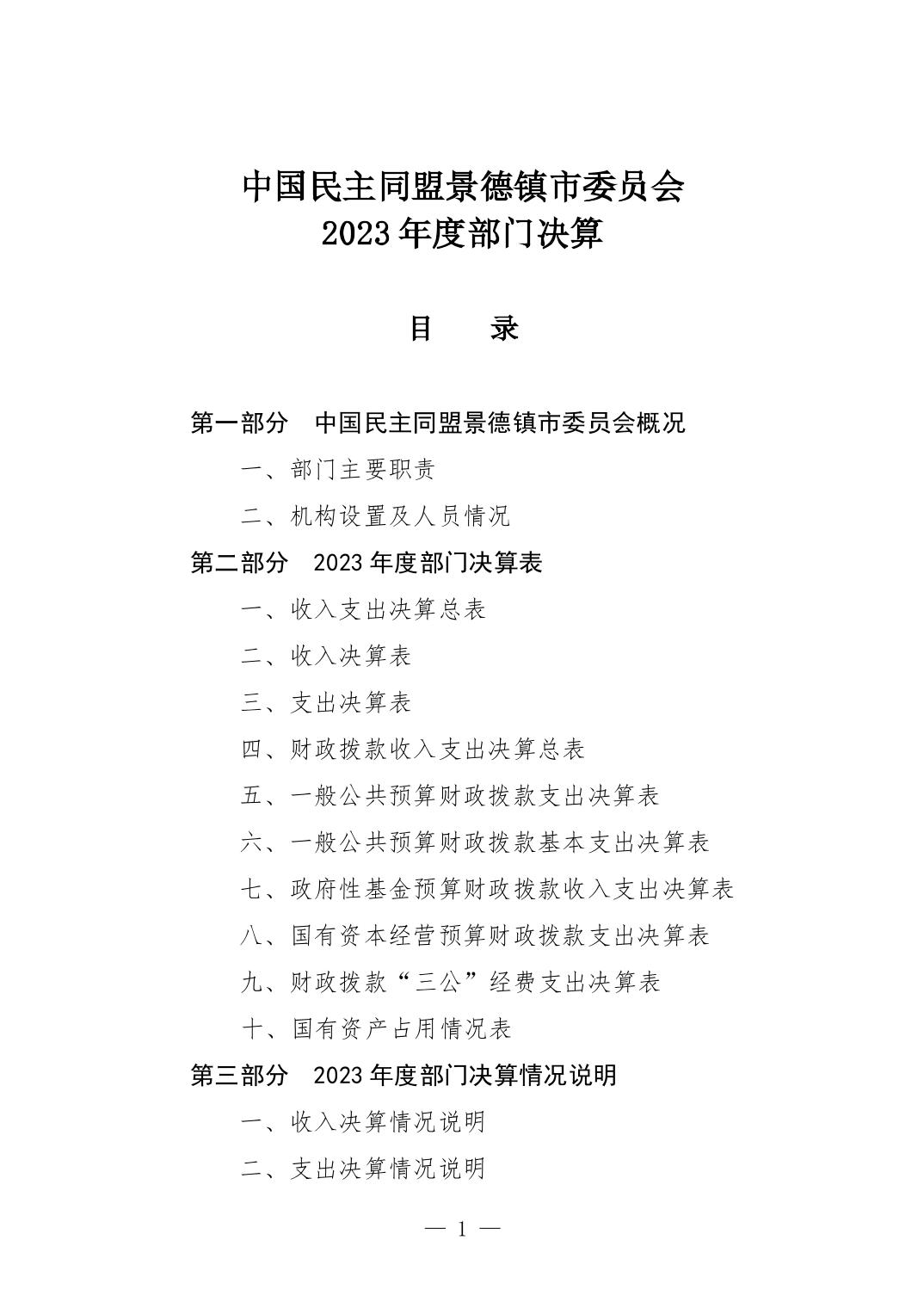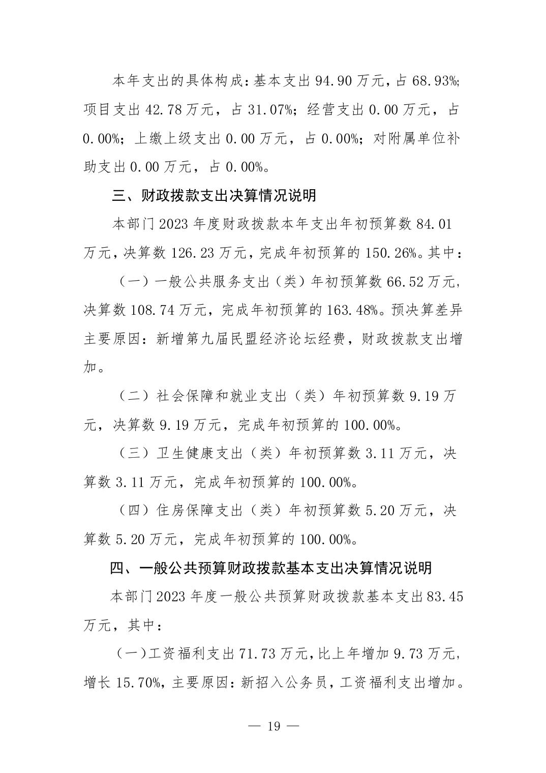 中国民主同盟景德镇市委员会2023年部门决算公开报告