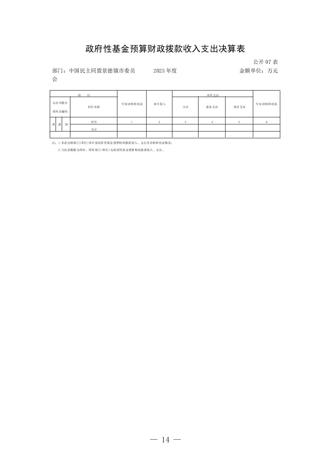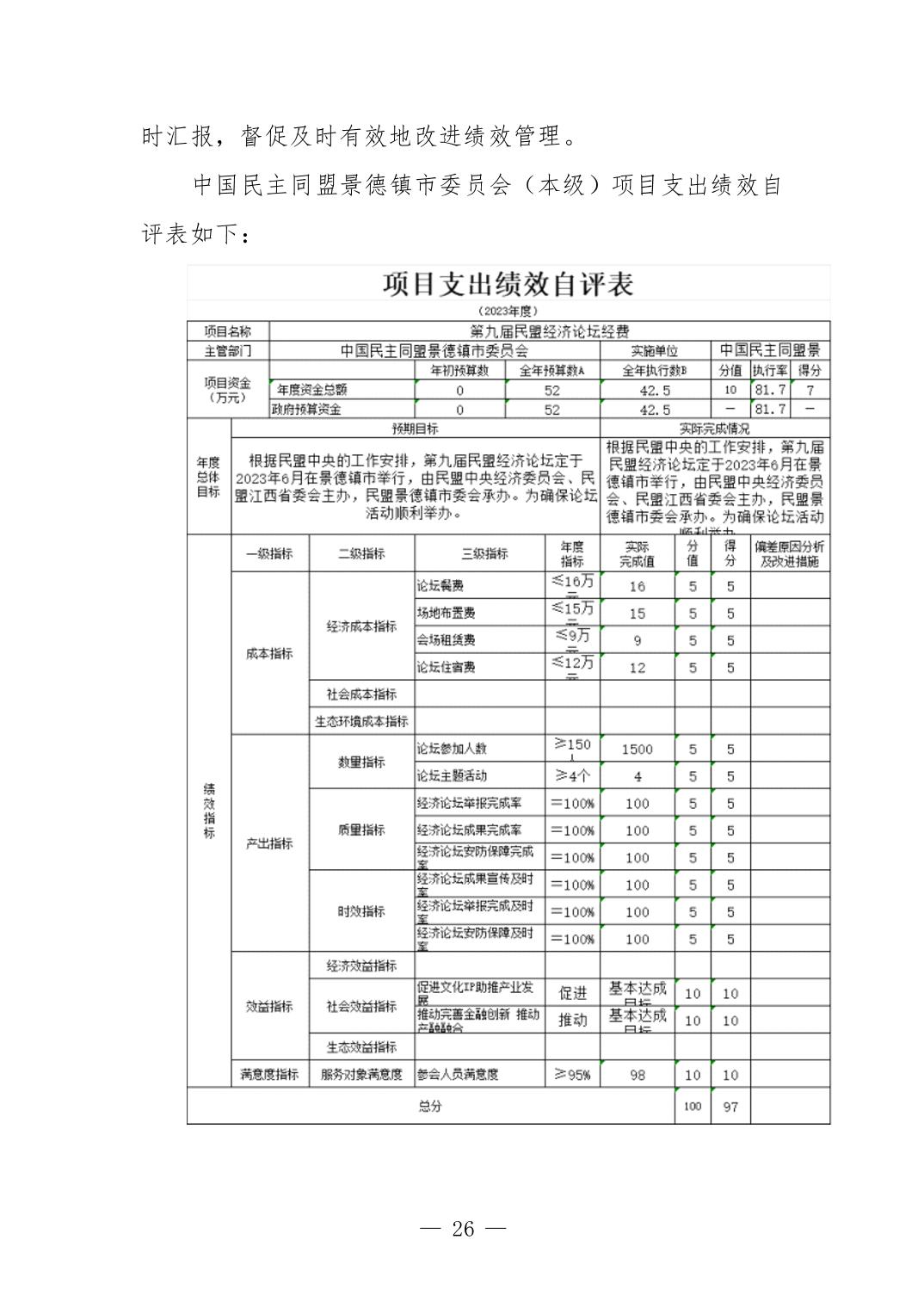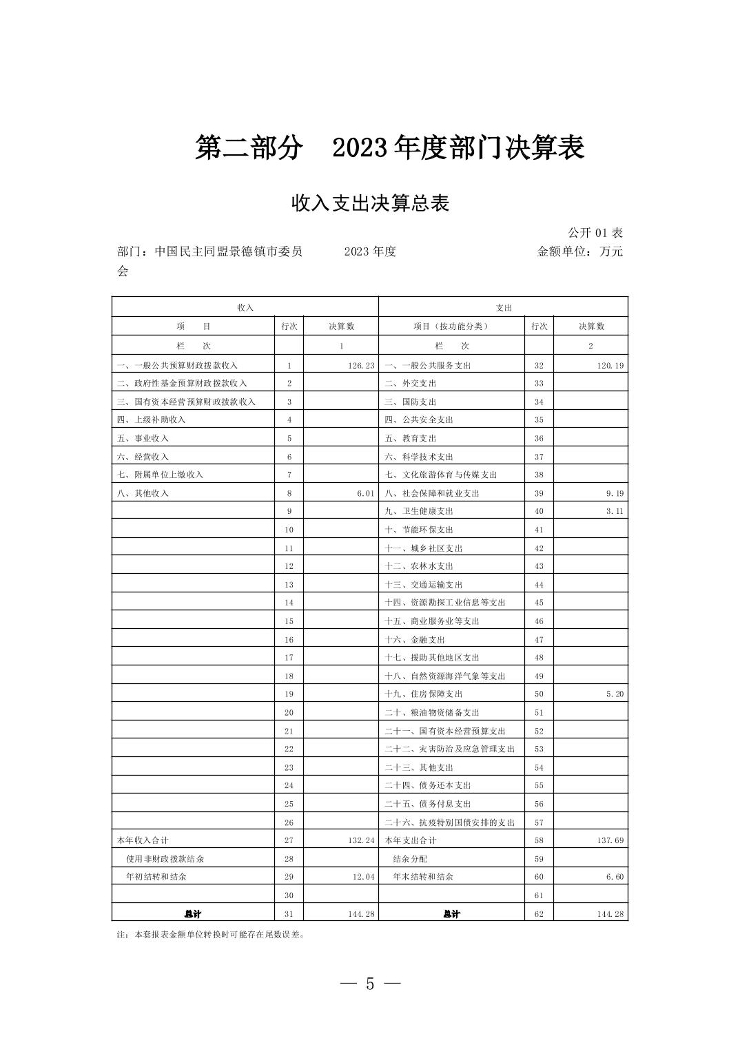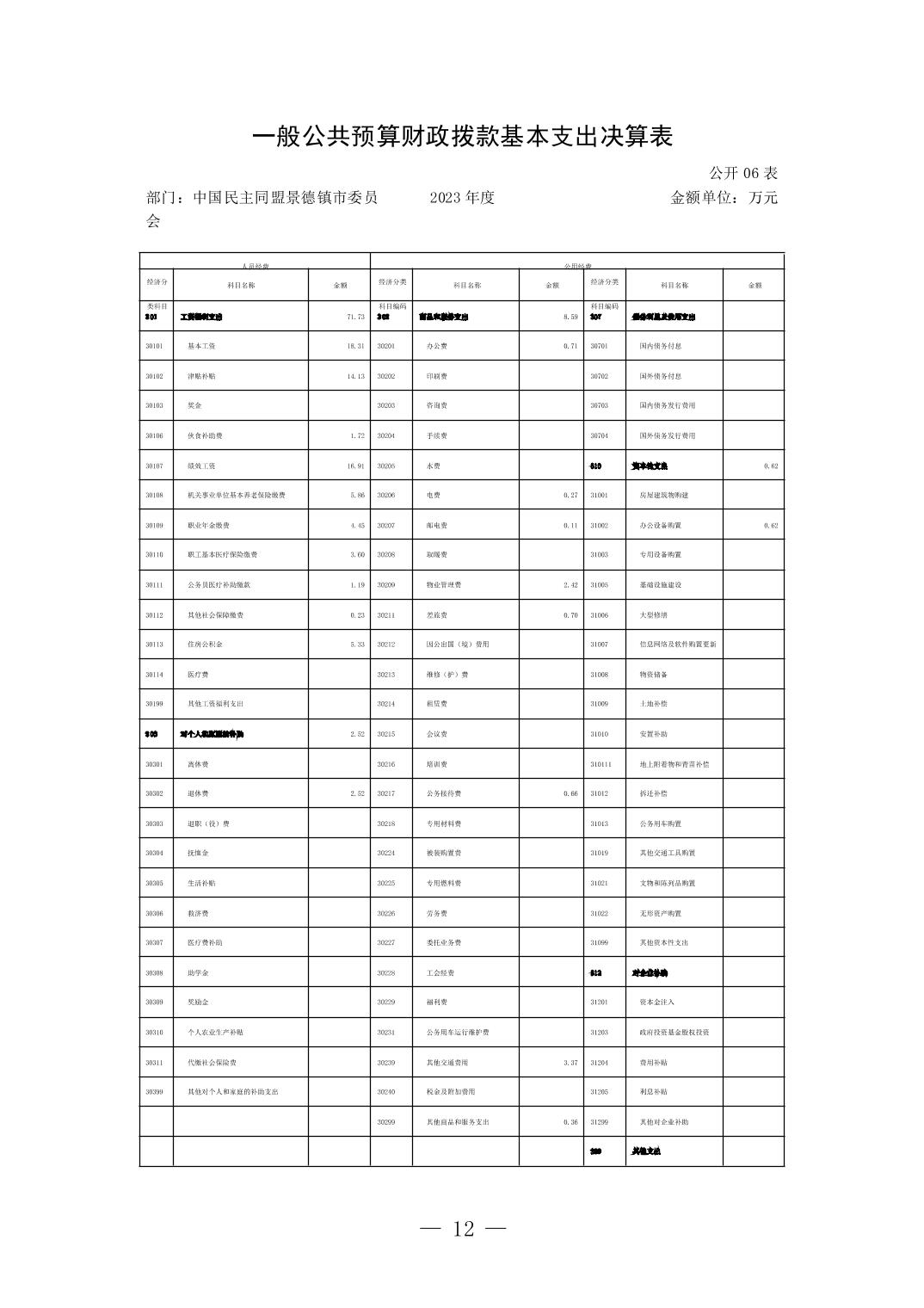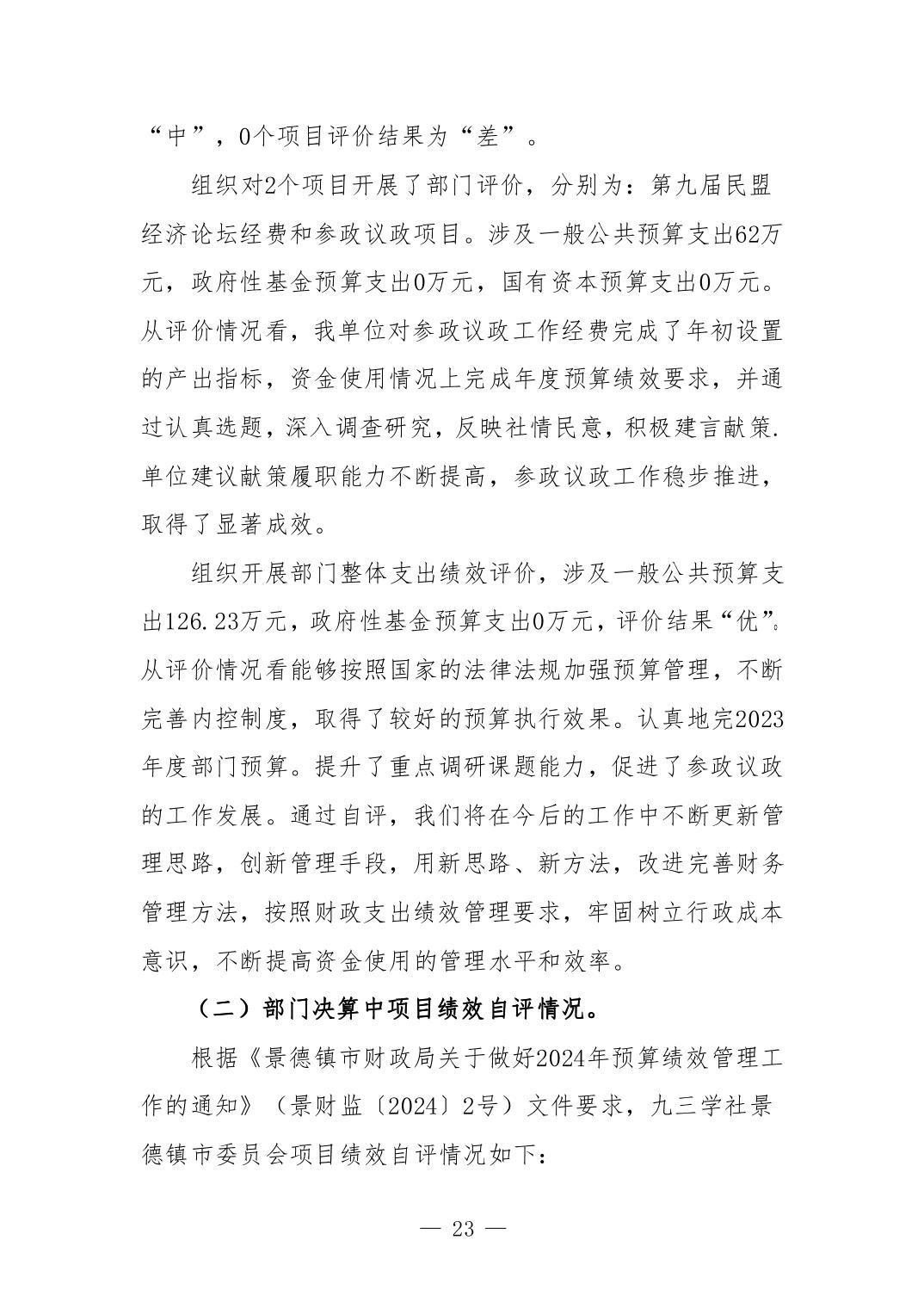 中国民主同盟景德镇市委员会2023年部门决算公开报告