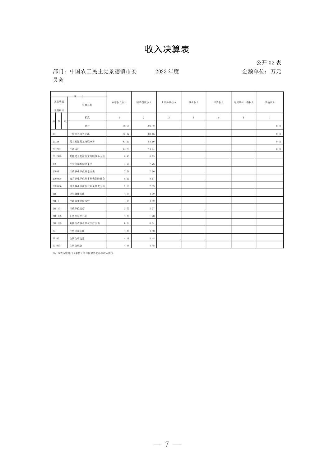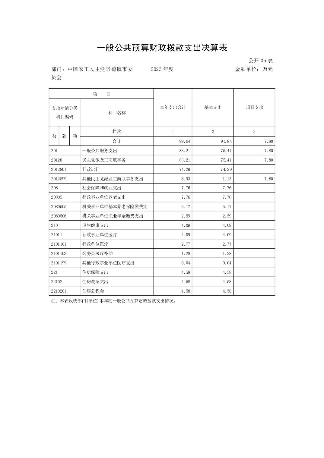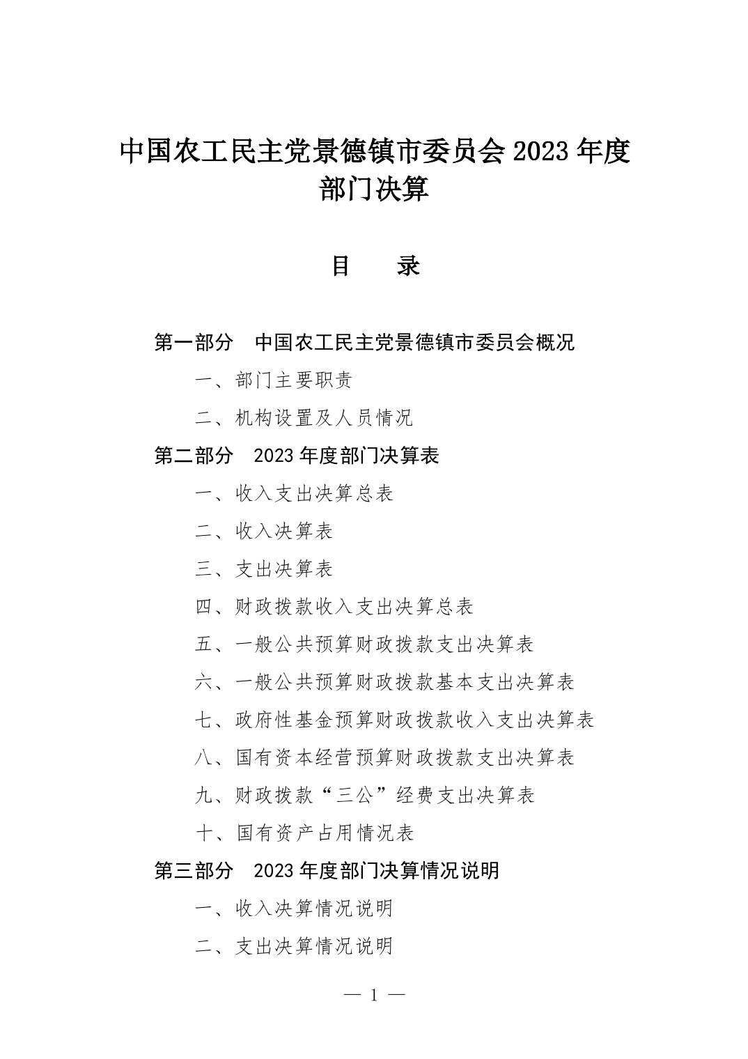 中国农工民主党景德镇市委员会2023年部门决算公开报告
