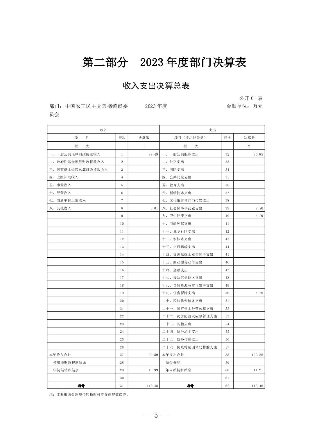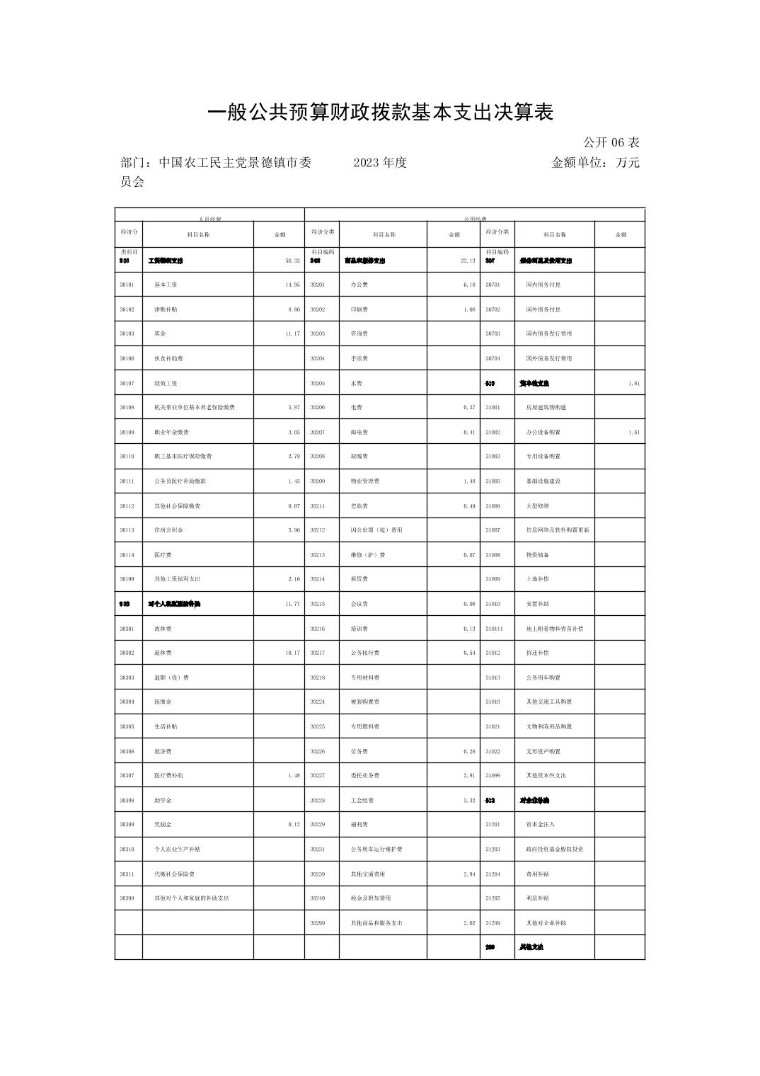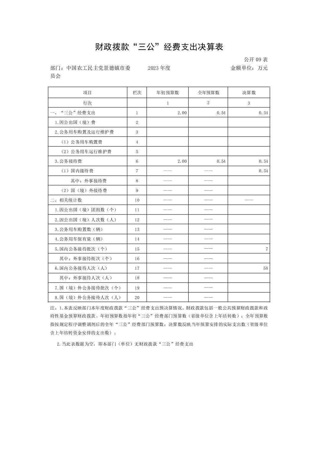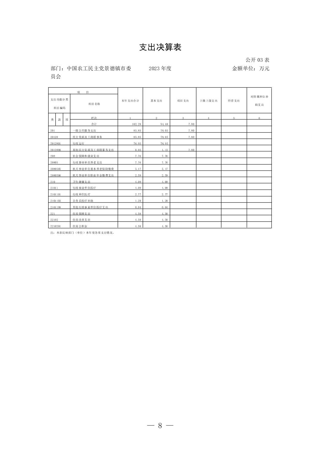 中国农工民主党景德镇市委员会2023年部门决算公开报告