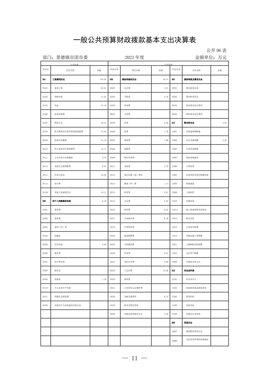 景德镇市团市委2023年部门决算