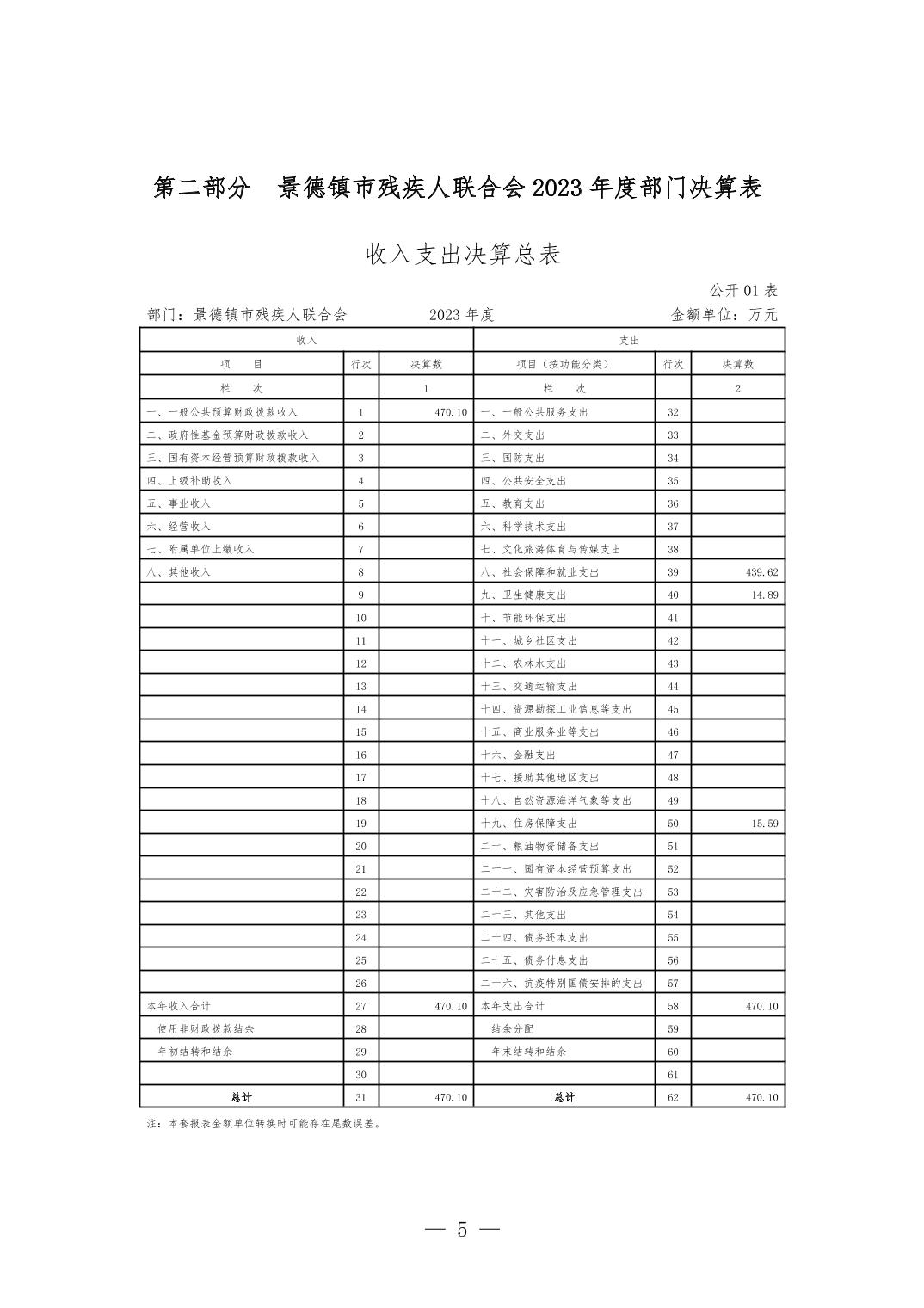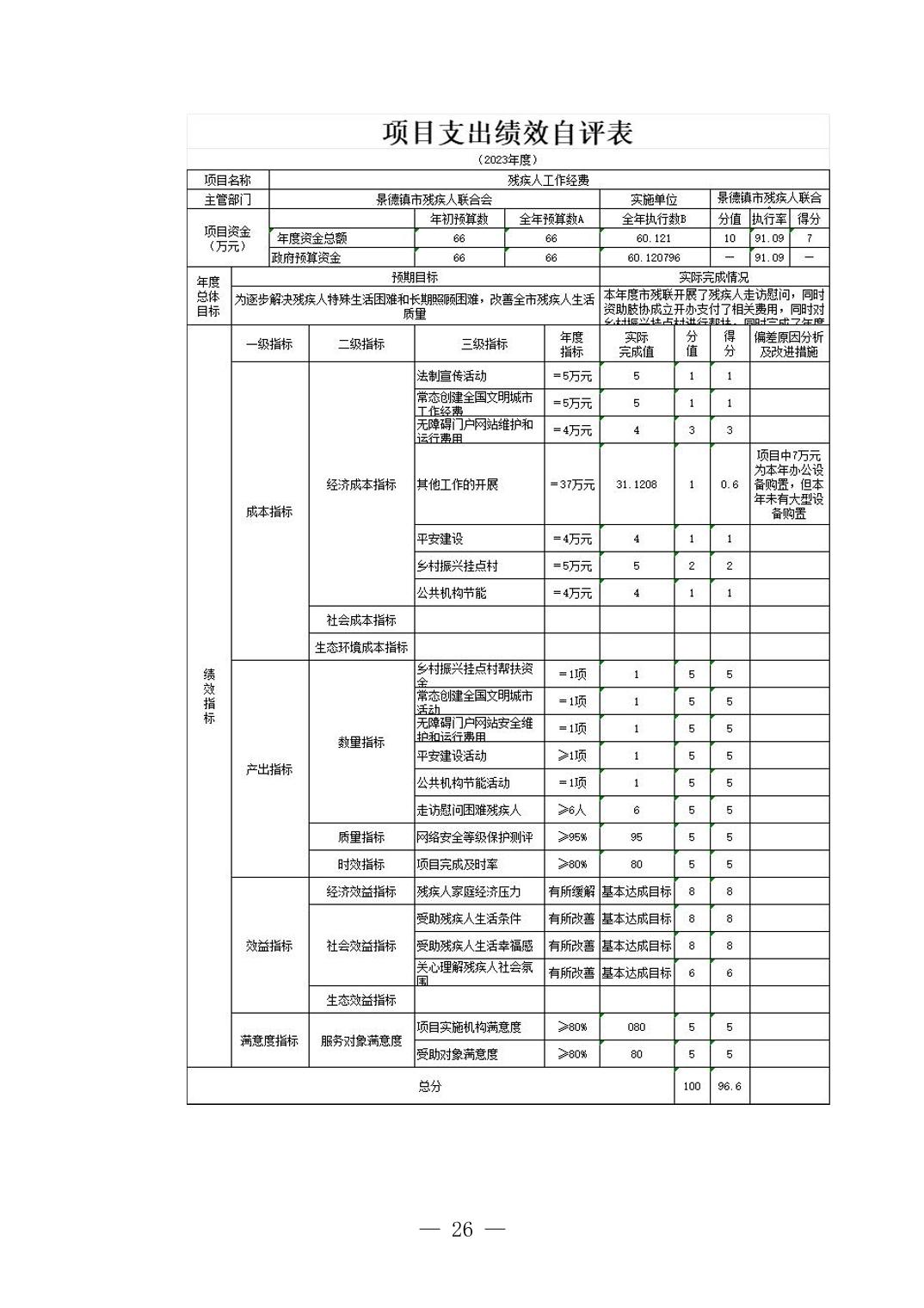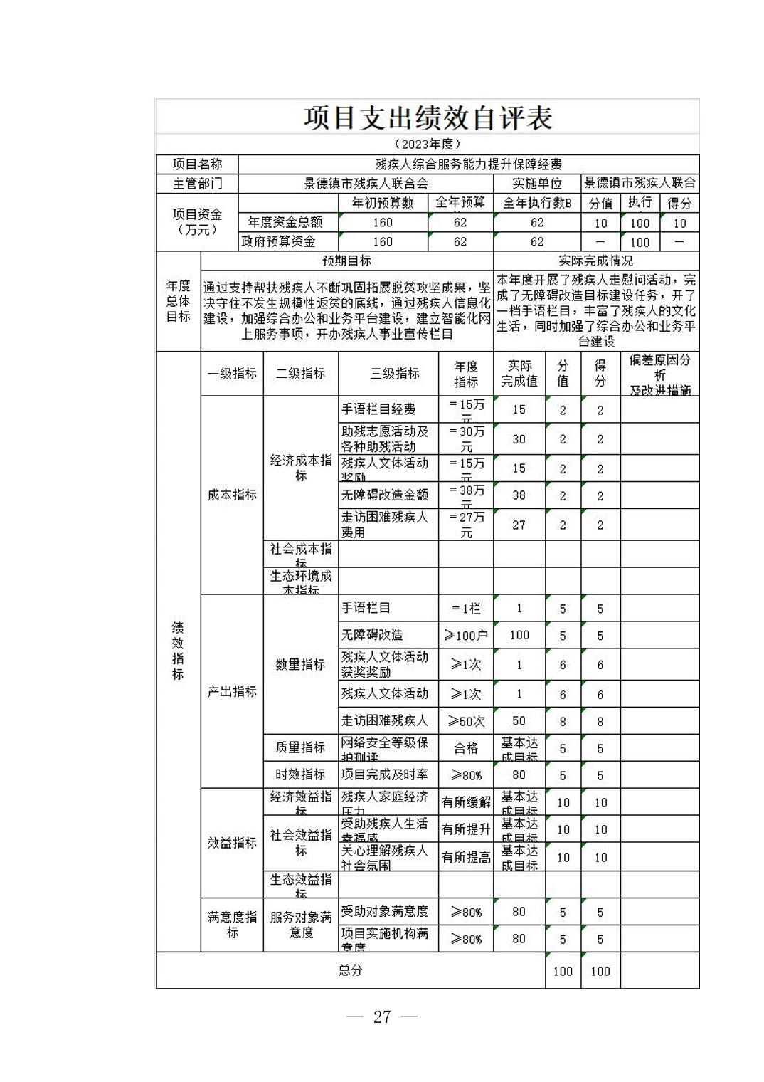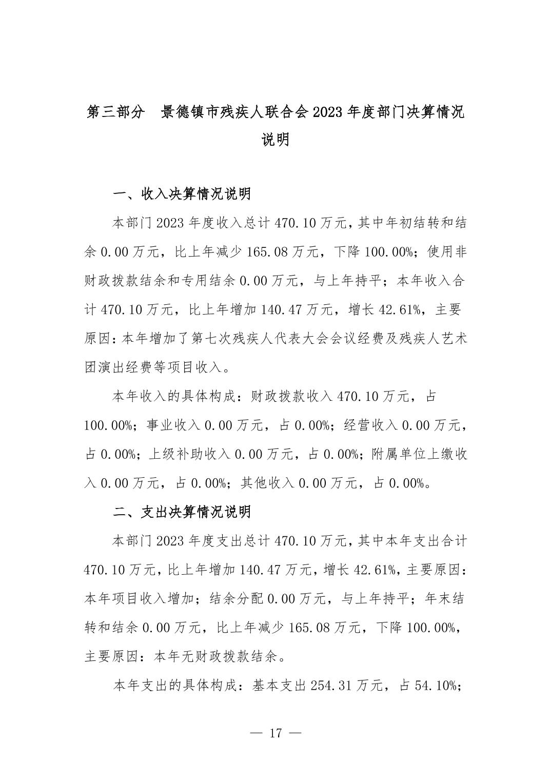 景德镇市残疾人联合会2023年部门决算公开