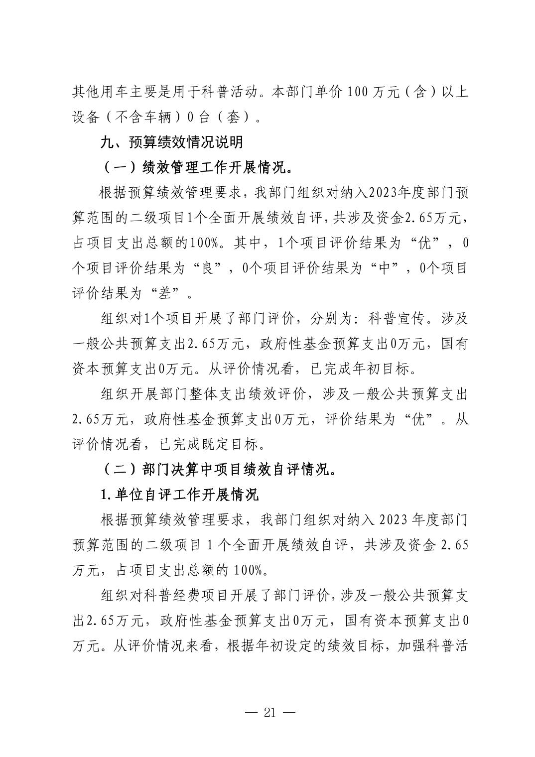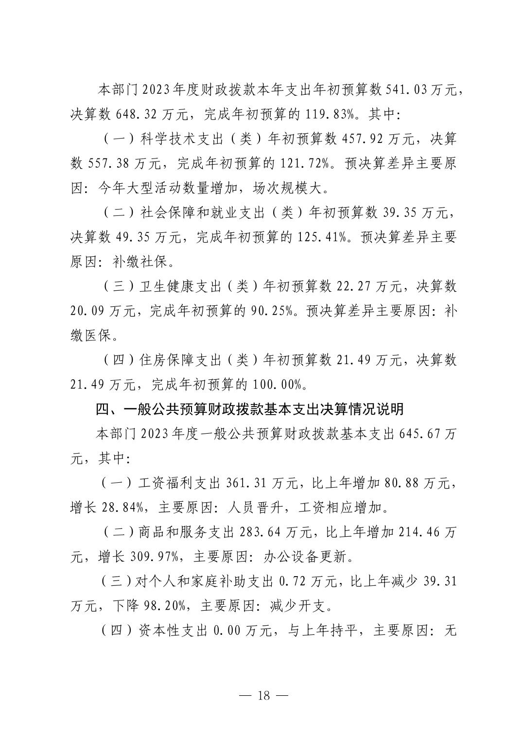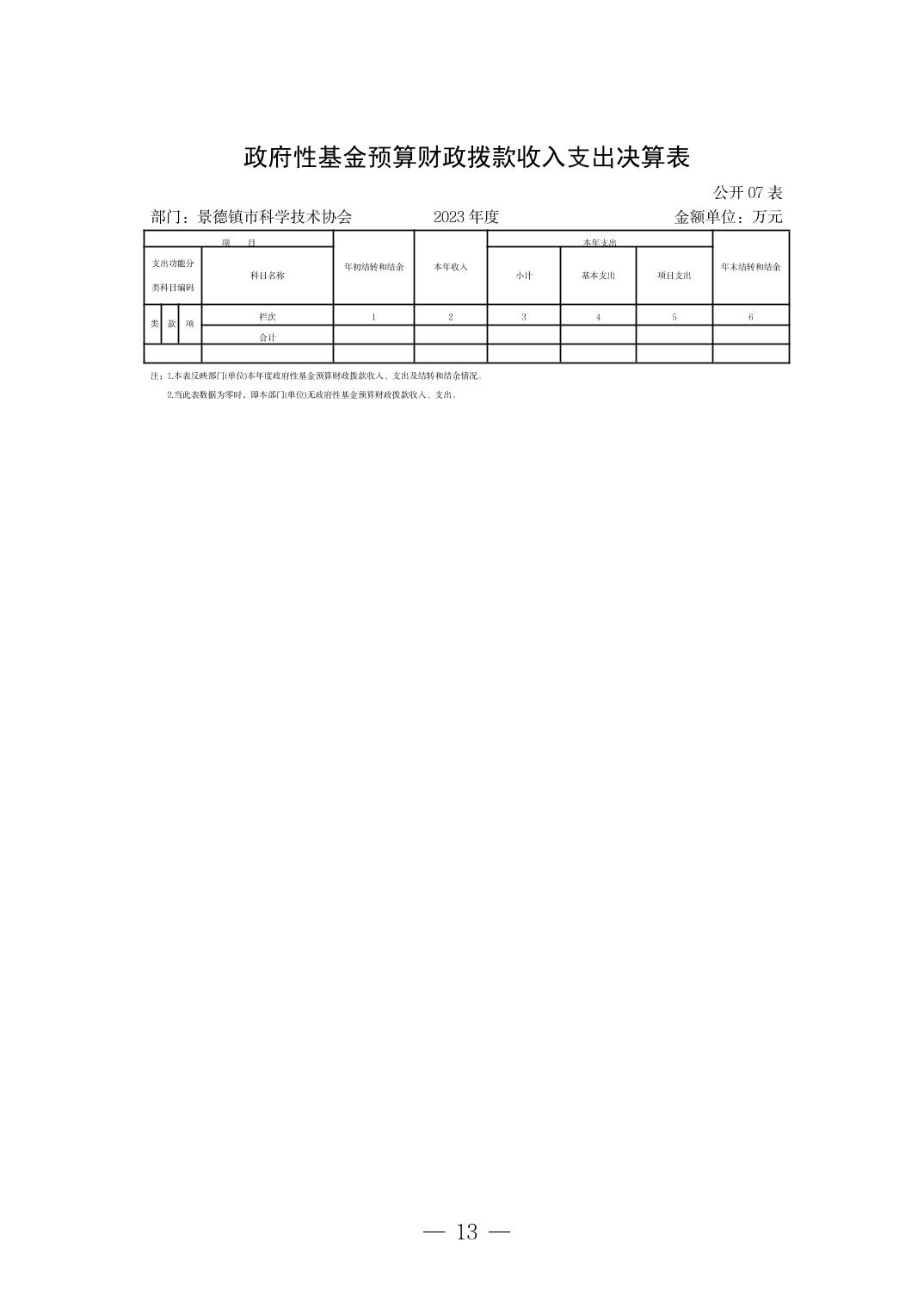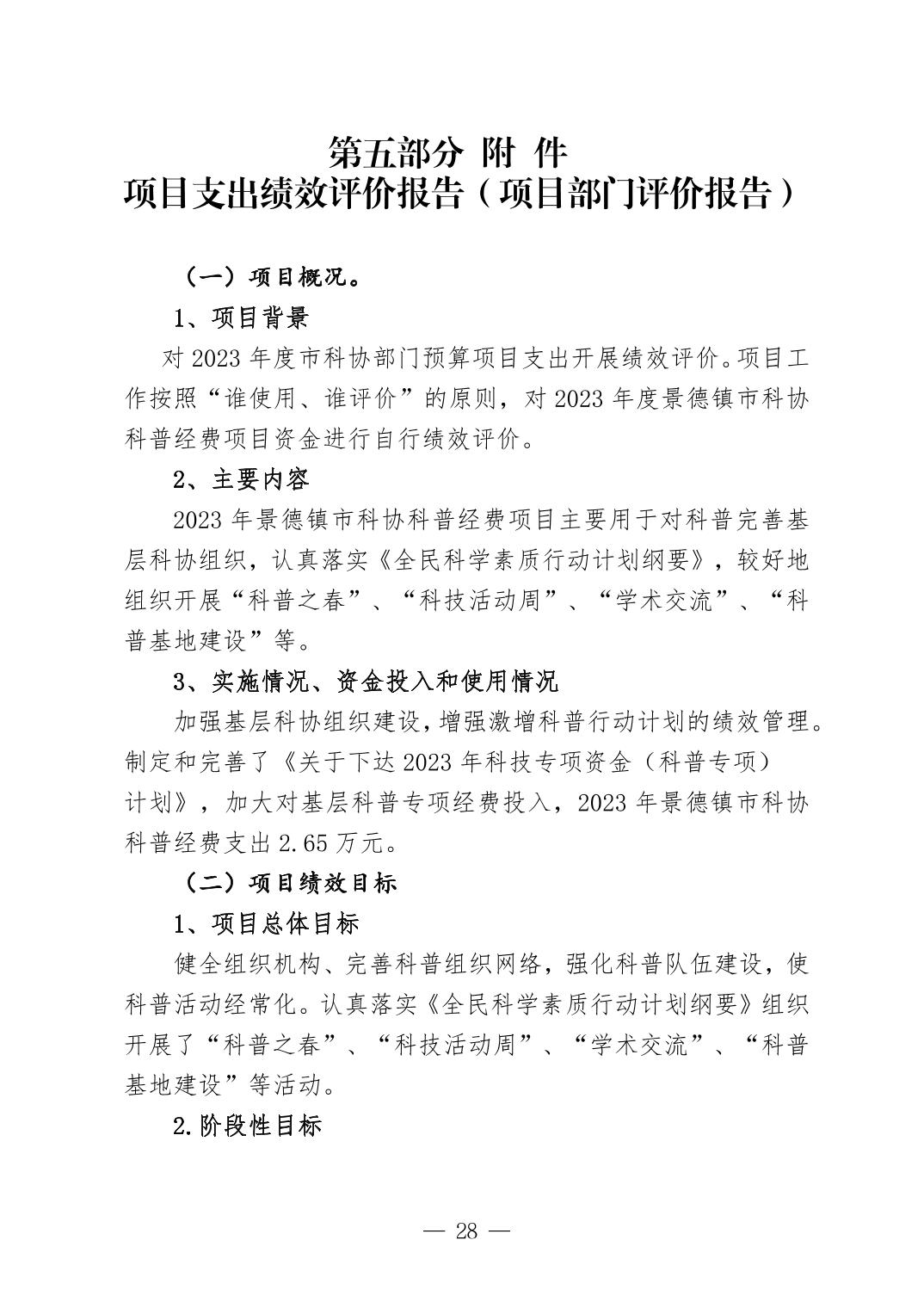 景德镇市科学技术协会2023年决算