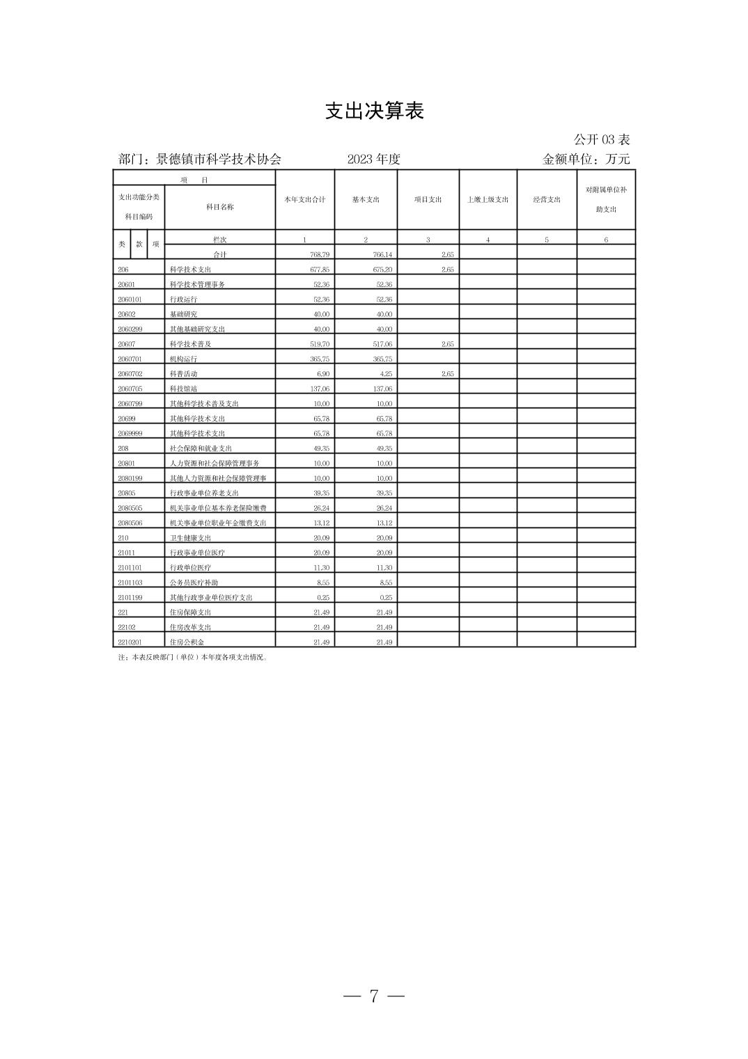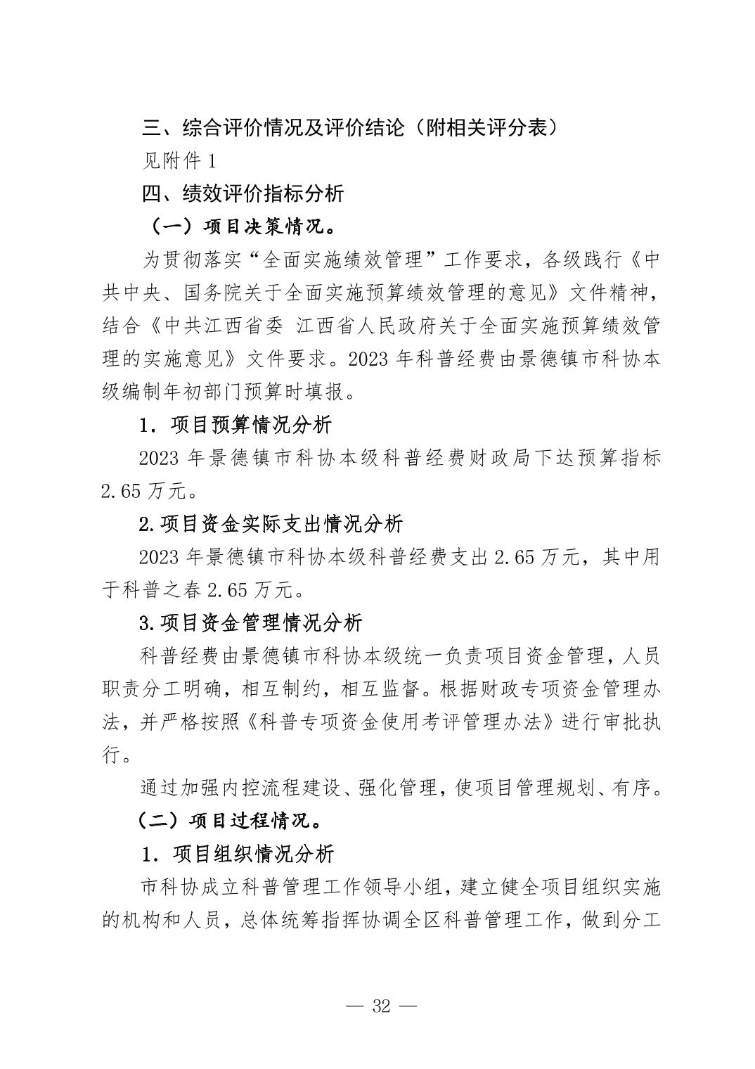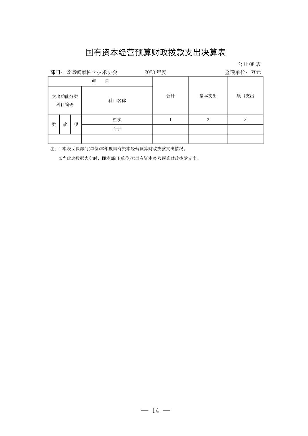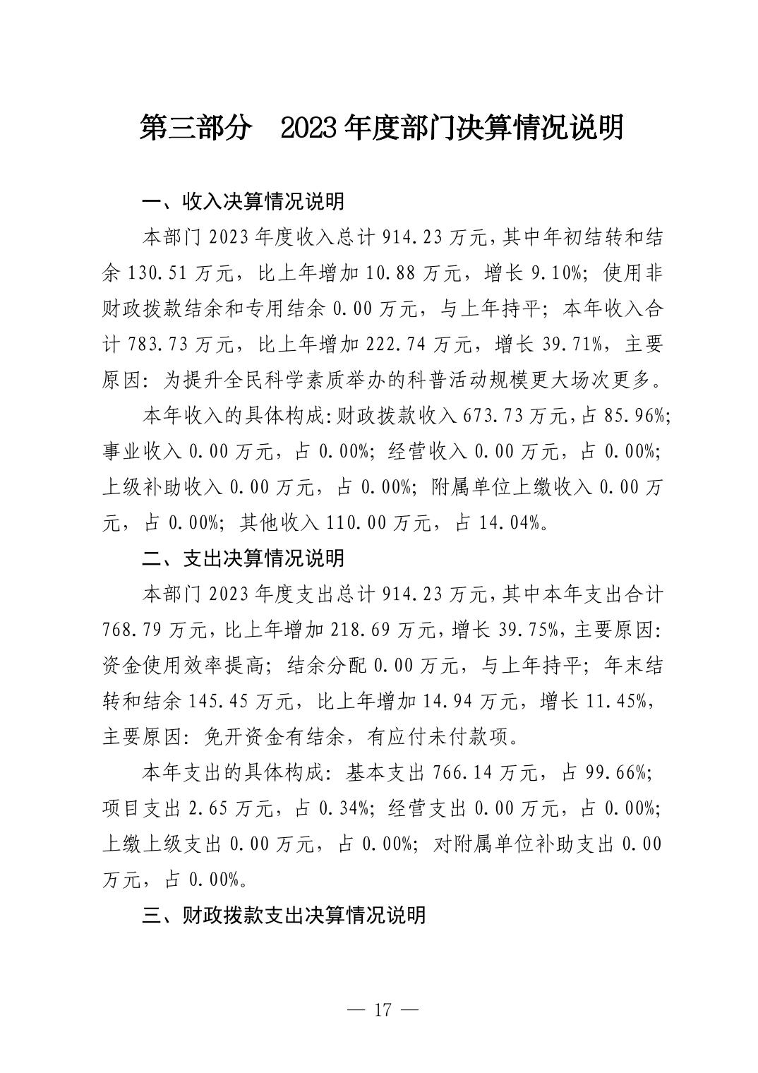 景德镇市科学技术协会2023年决算