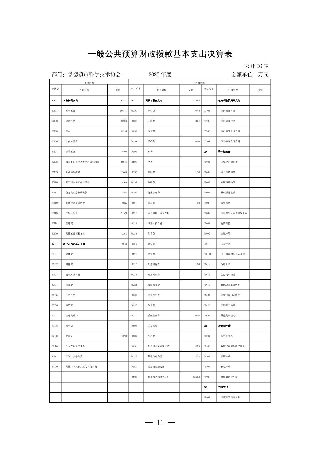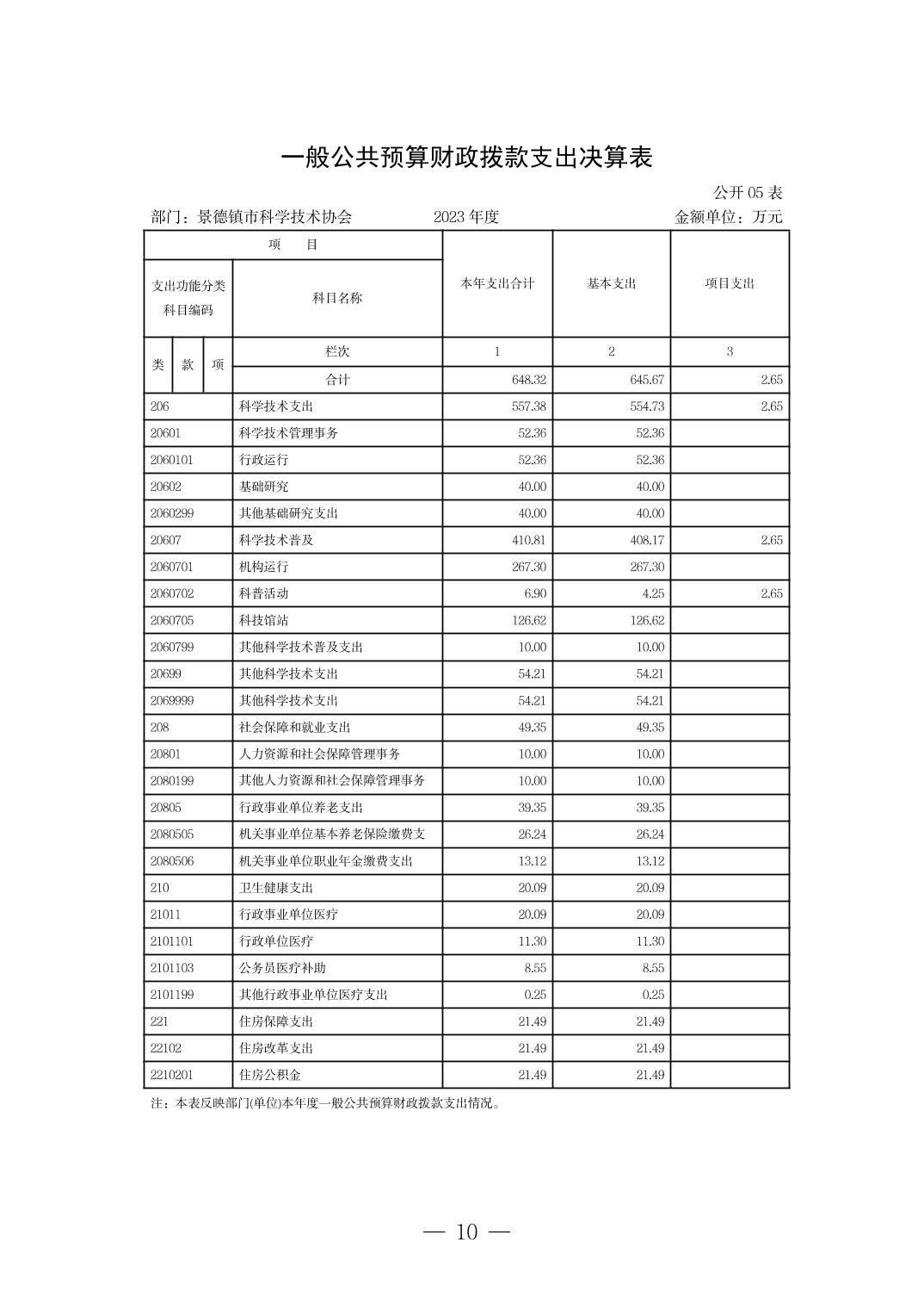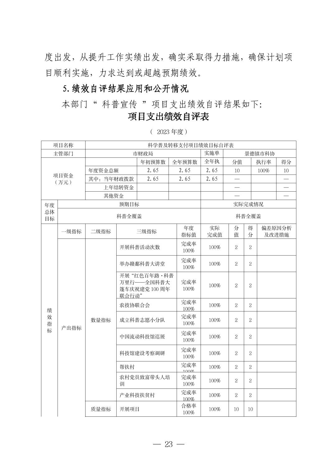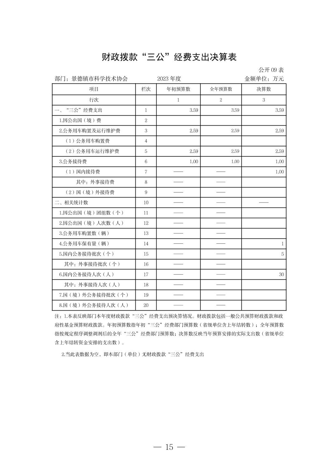 景德镇市科学技术协会2023年决算