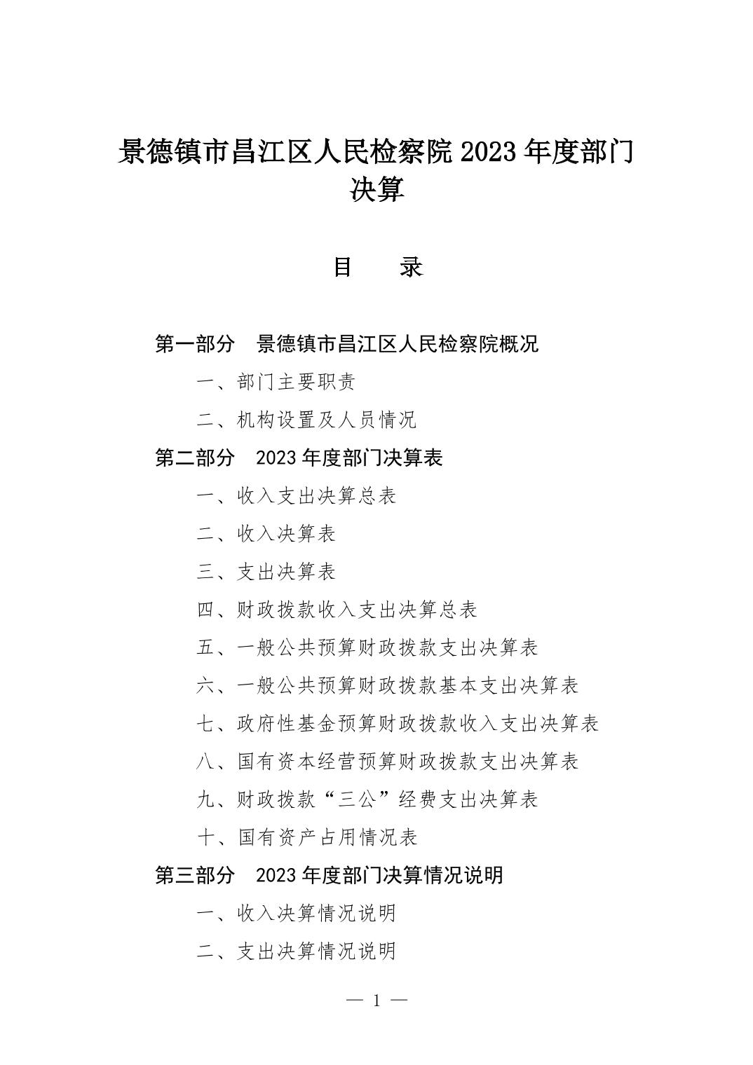 景德镇市昌江区人民检察院2023年部门决算公开