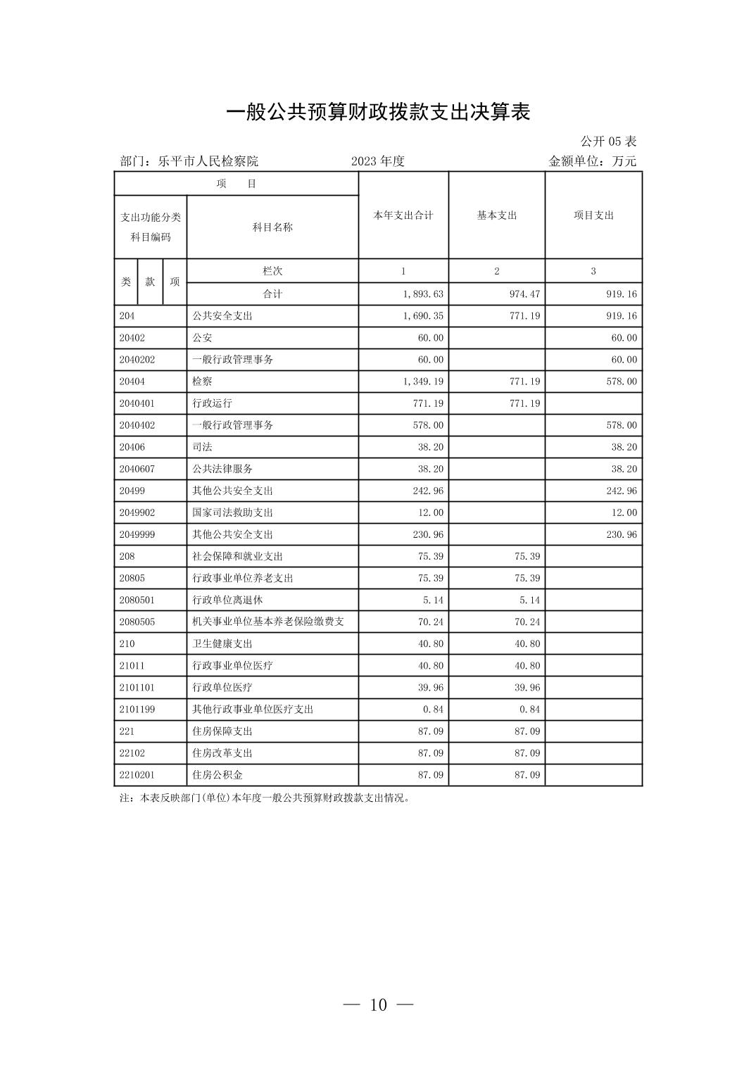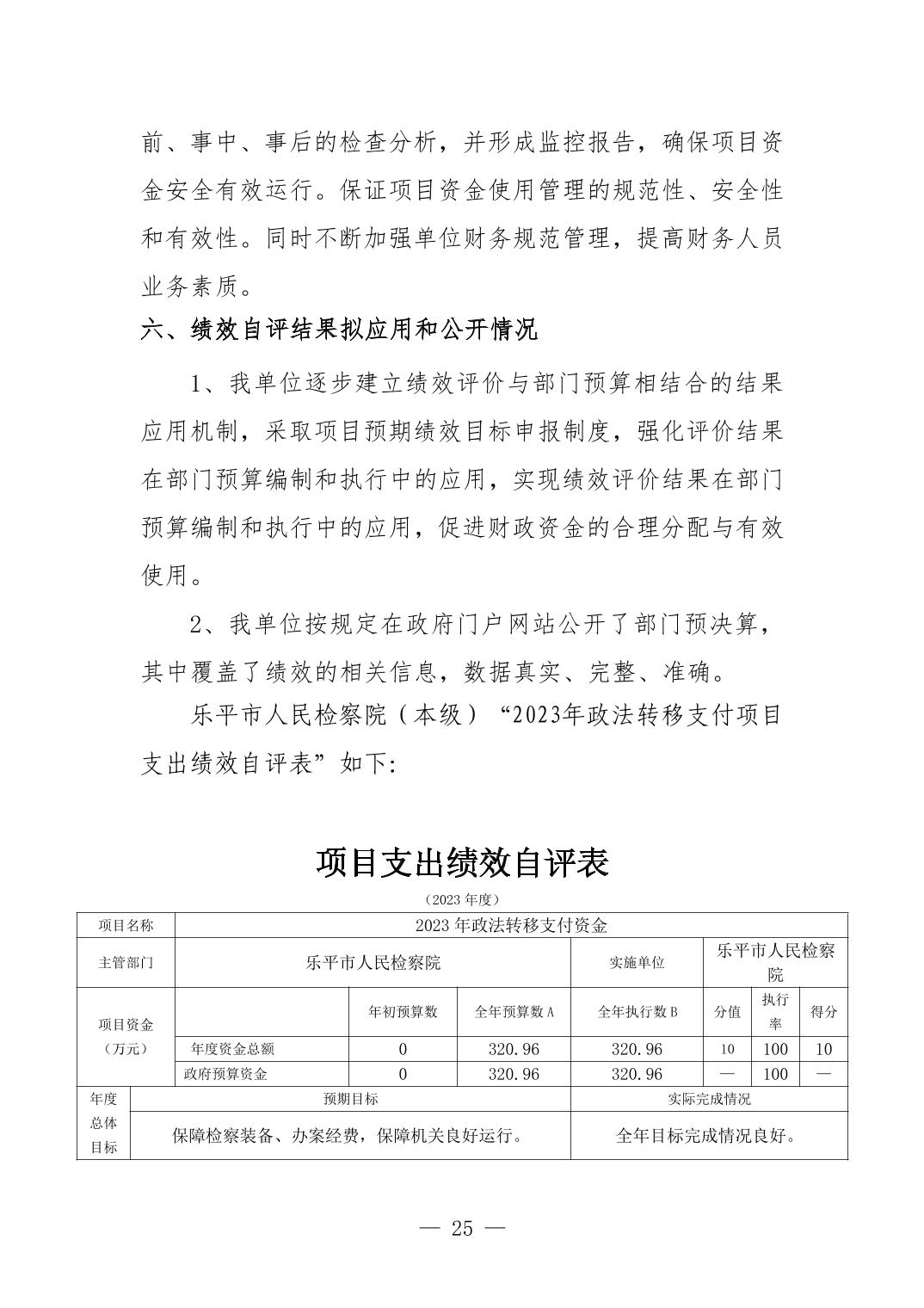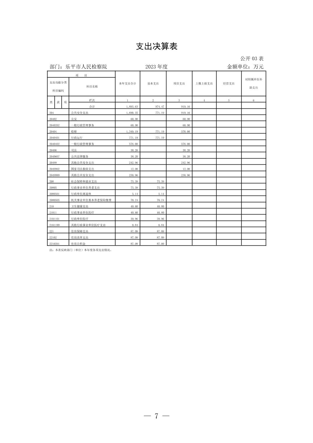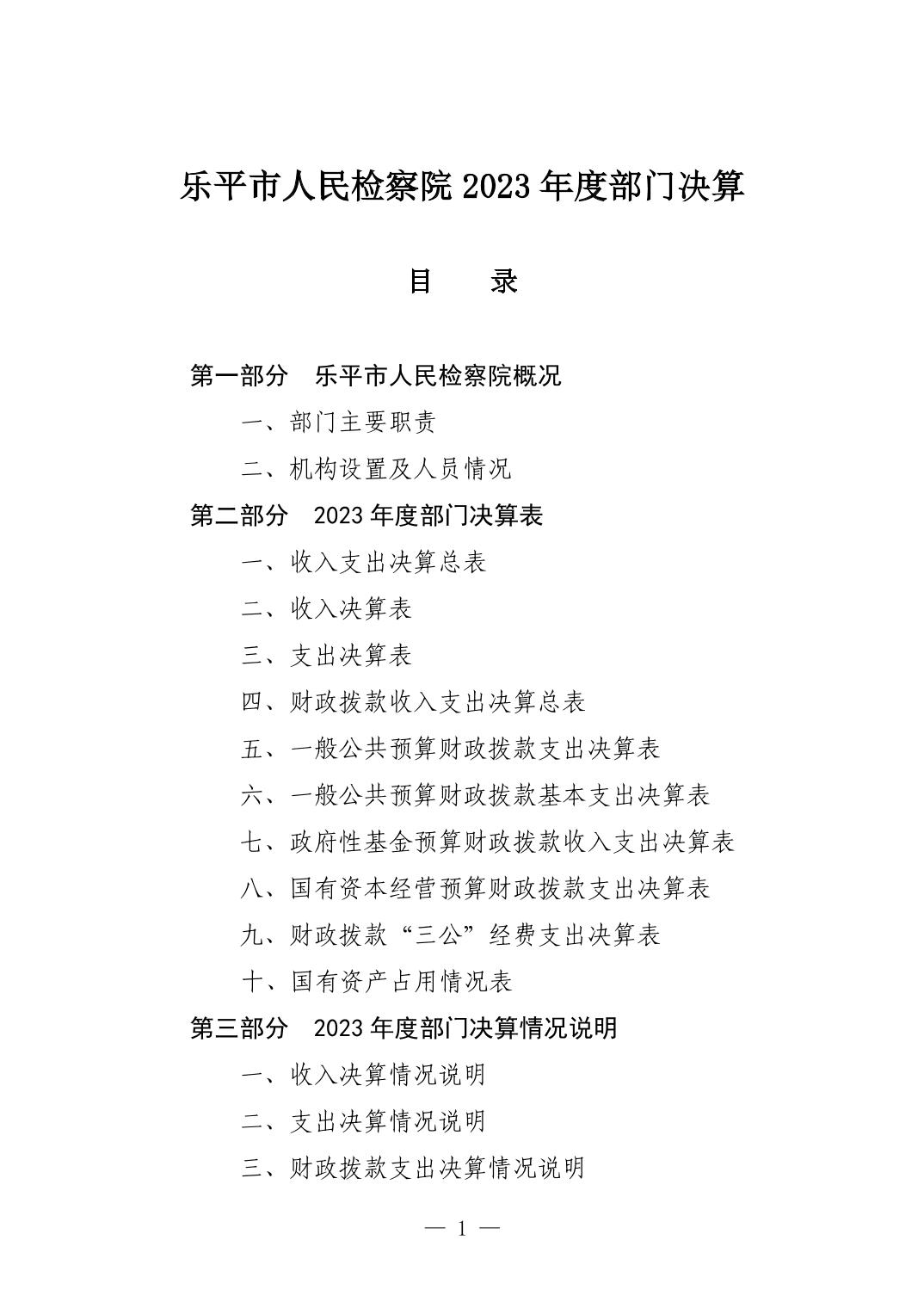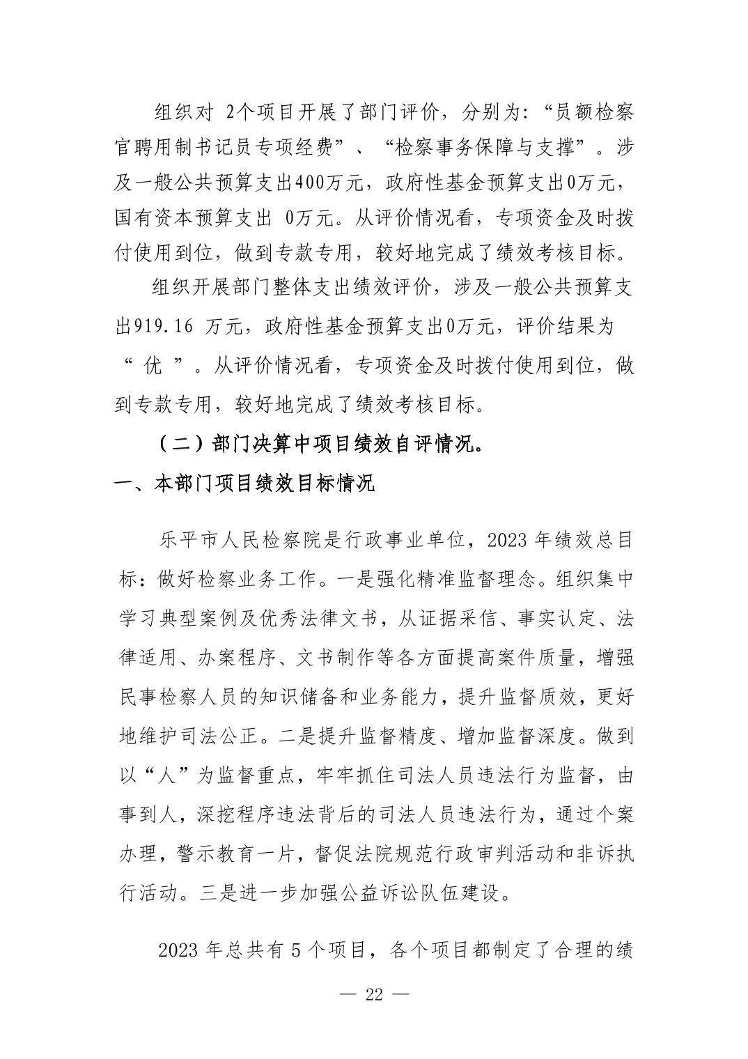 乐平市人民检察院2023年决算