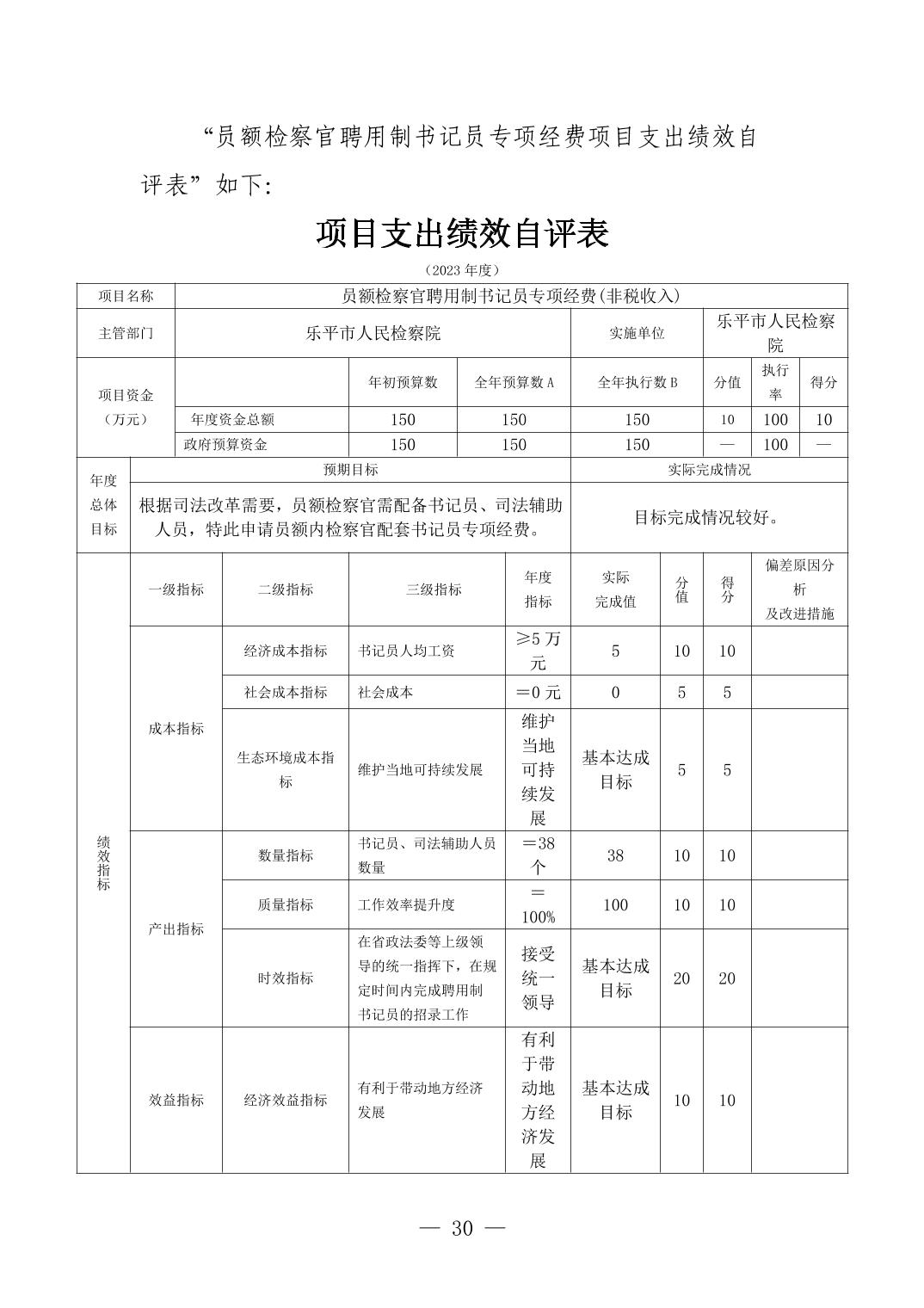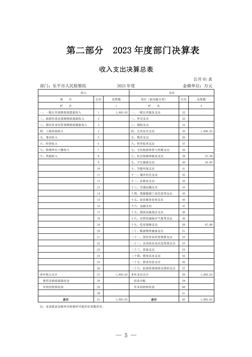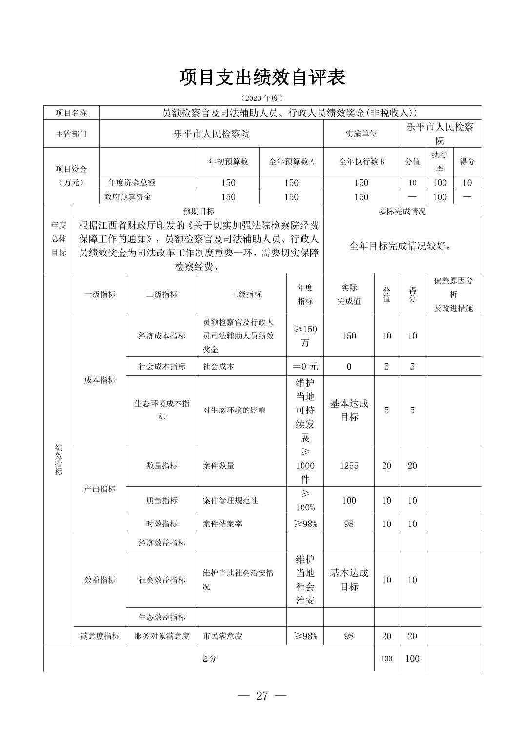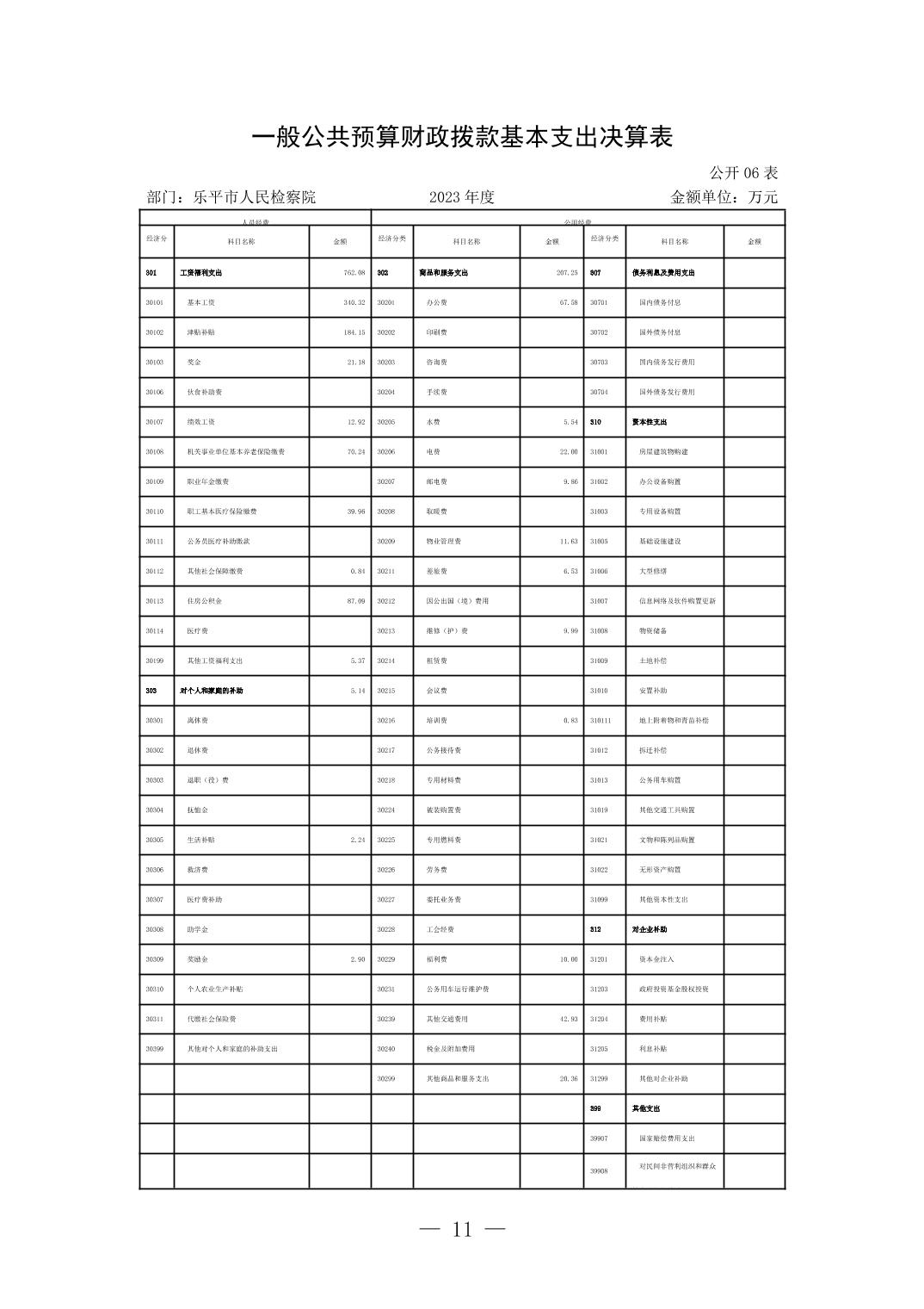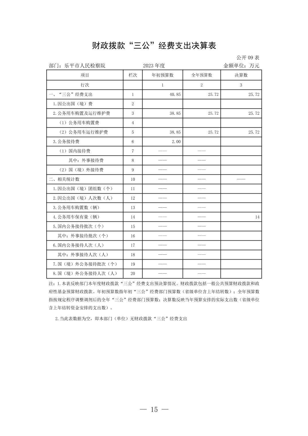 乐平市人民检察院2023年决算