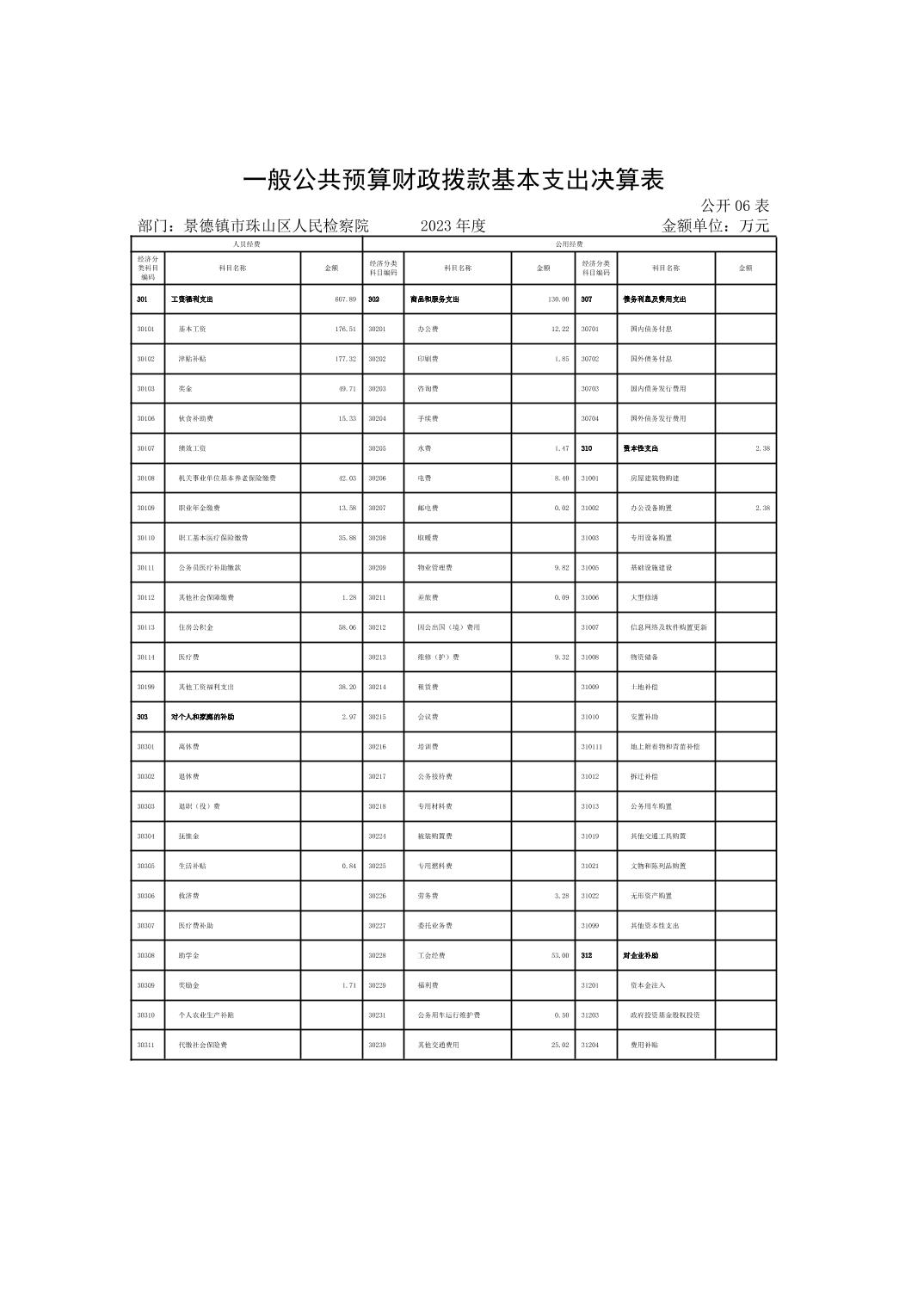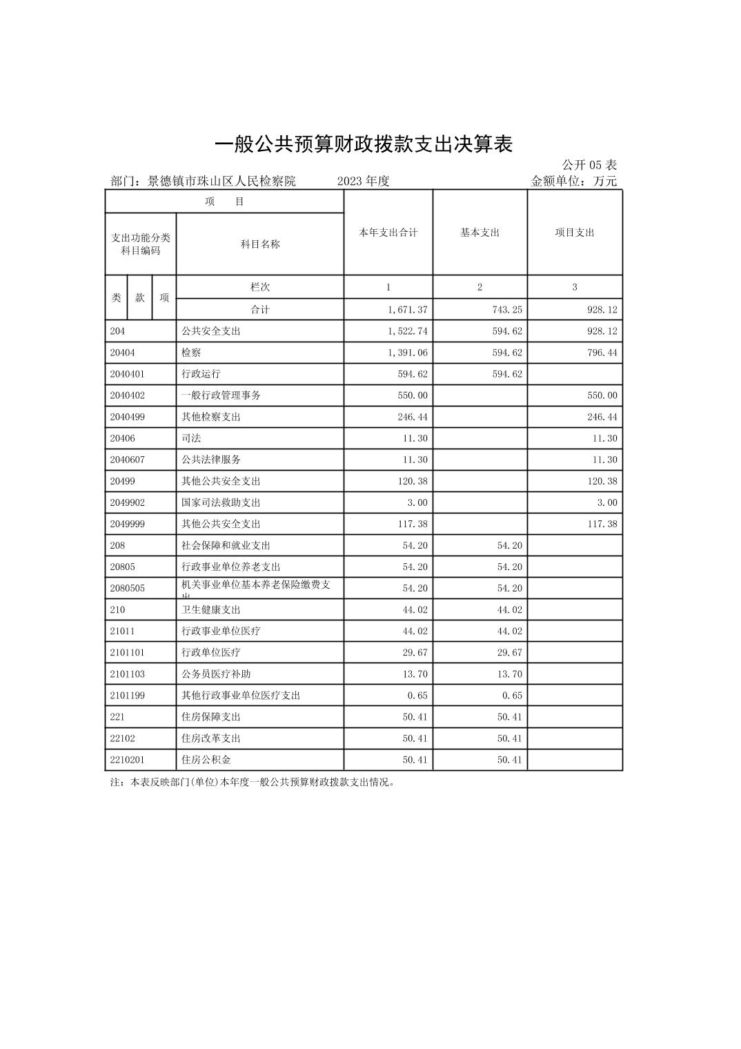 景德镇市珠山区人民检察院2023年决算