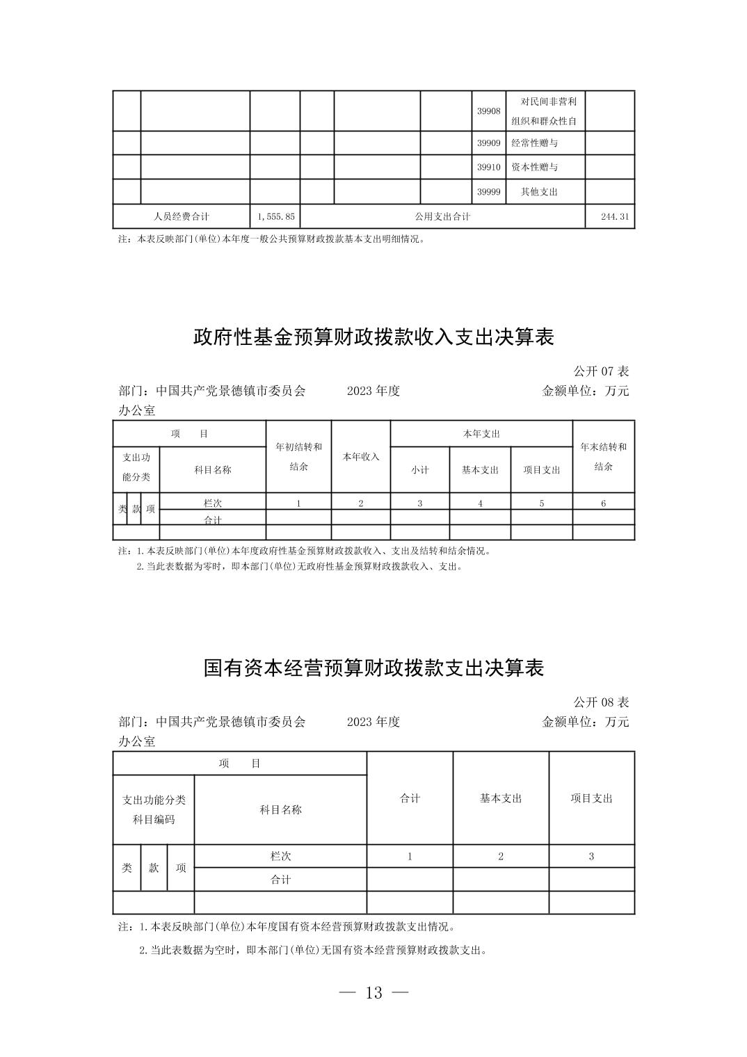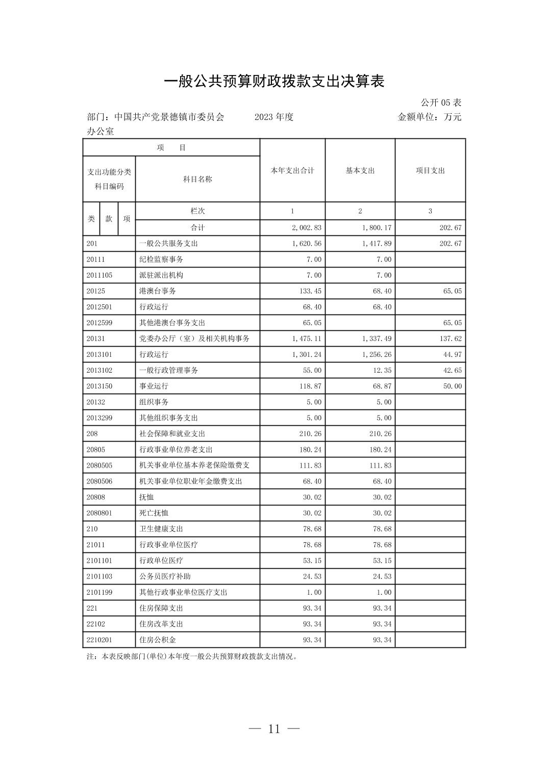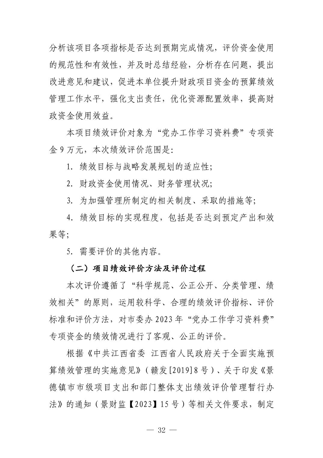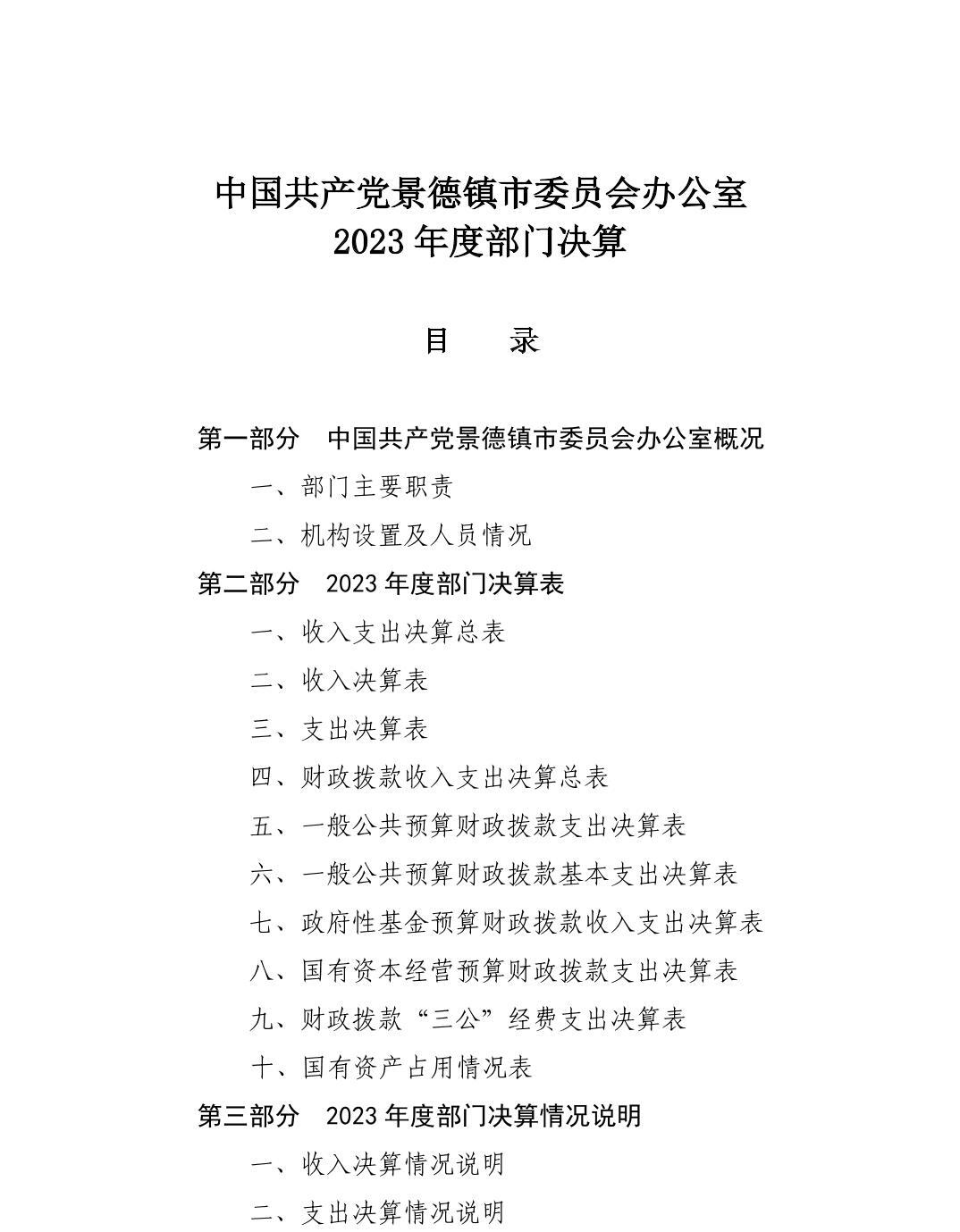 中国共产党景德镇市委员会办公室2023年部门决算