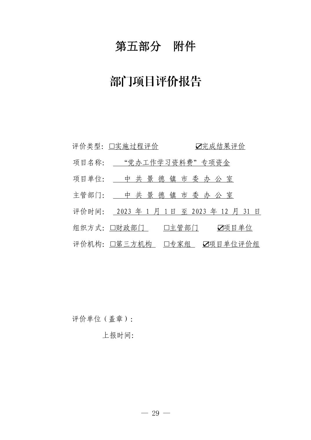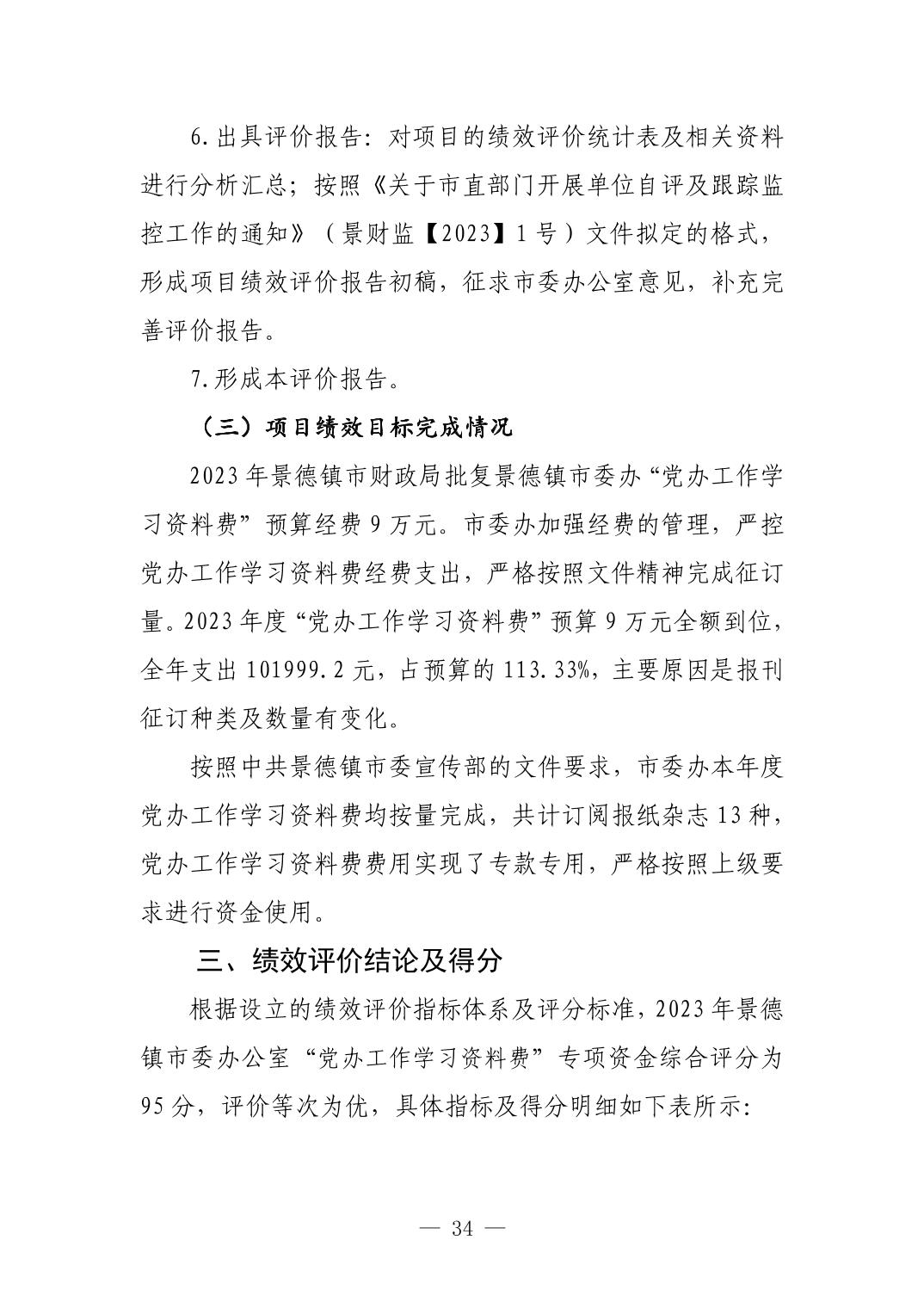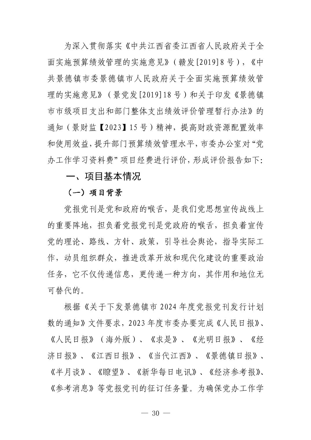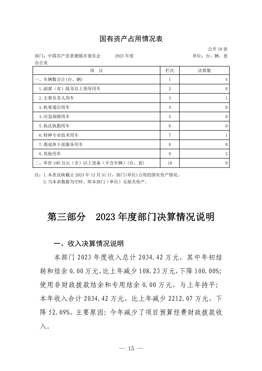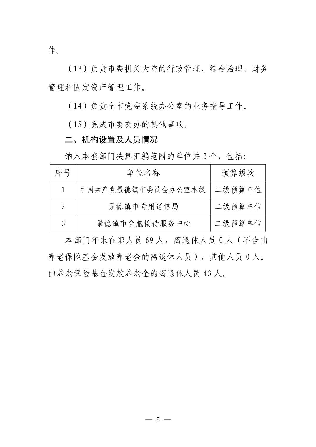 中国共产党景德镇市委员会办公室2023年部门决算