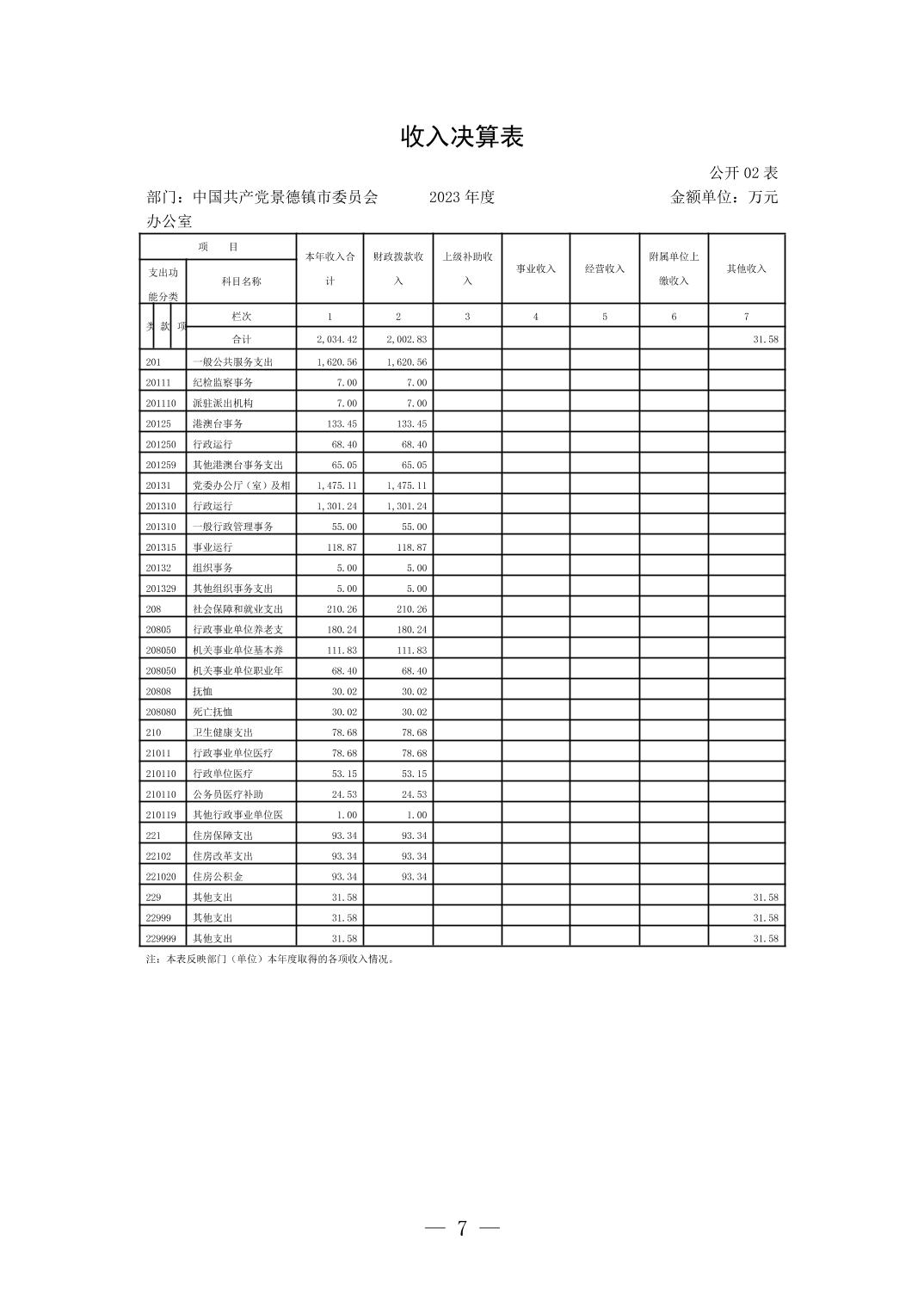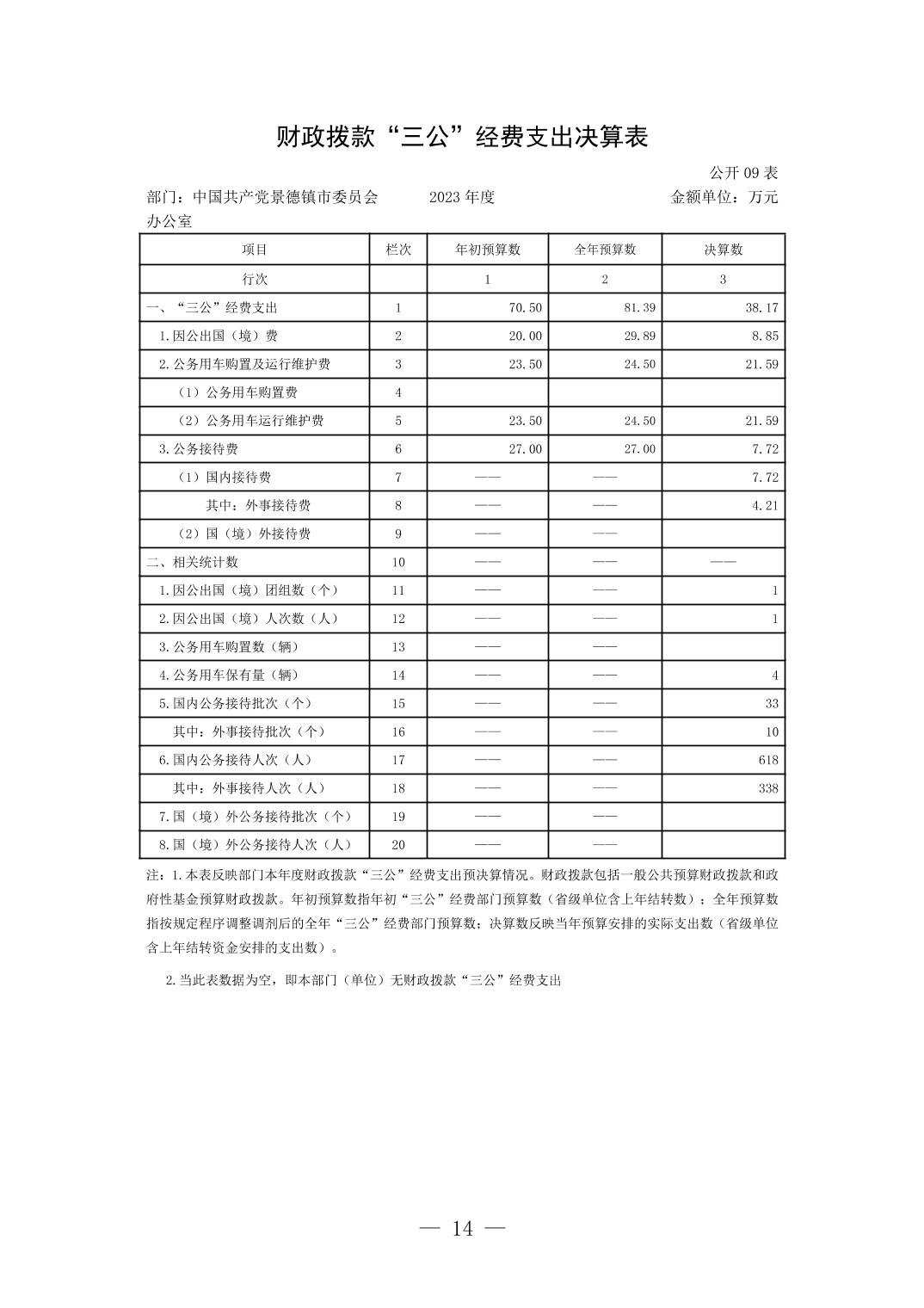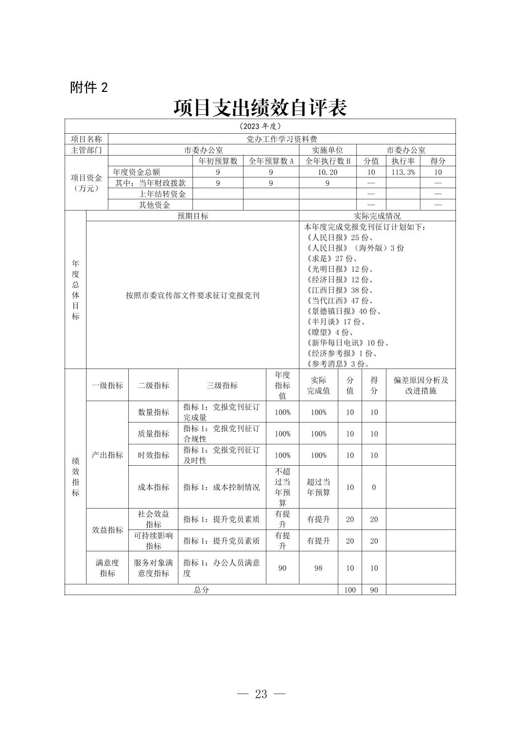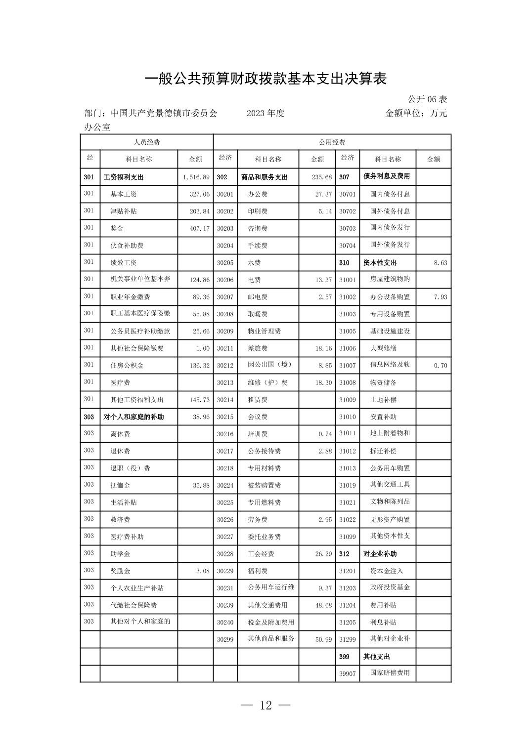 中国共产党景德镇市委员会办公室2023年部门决算