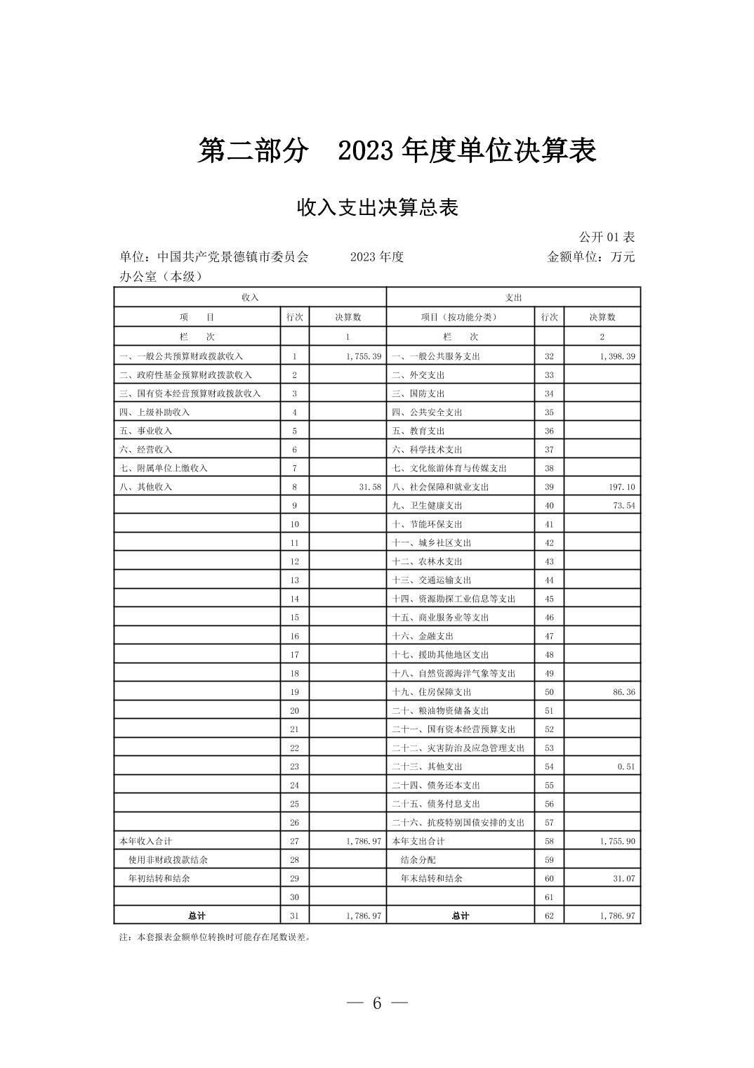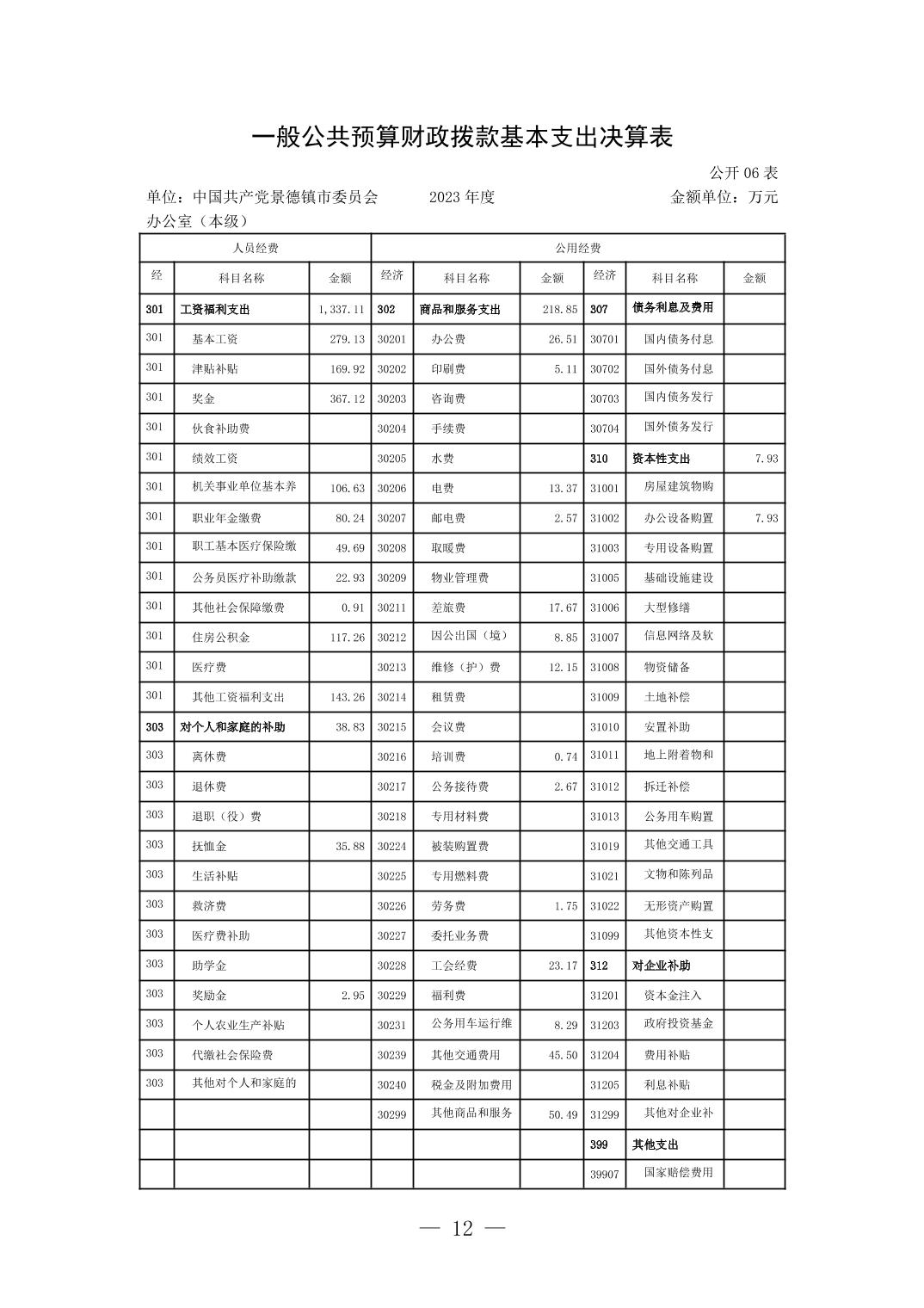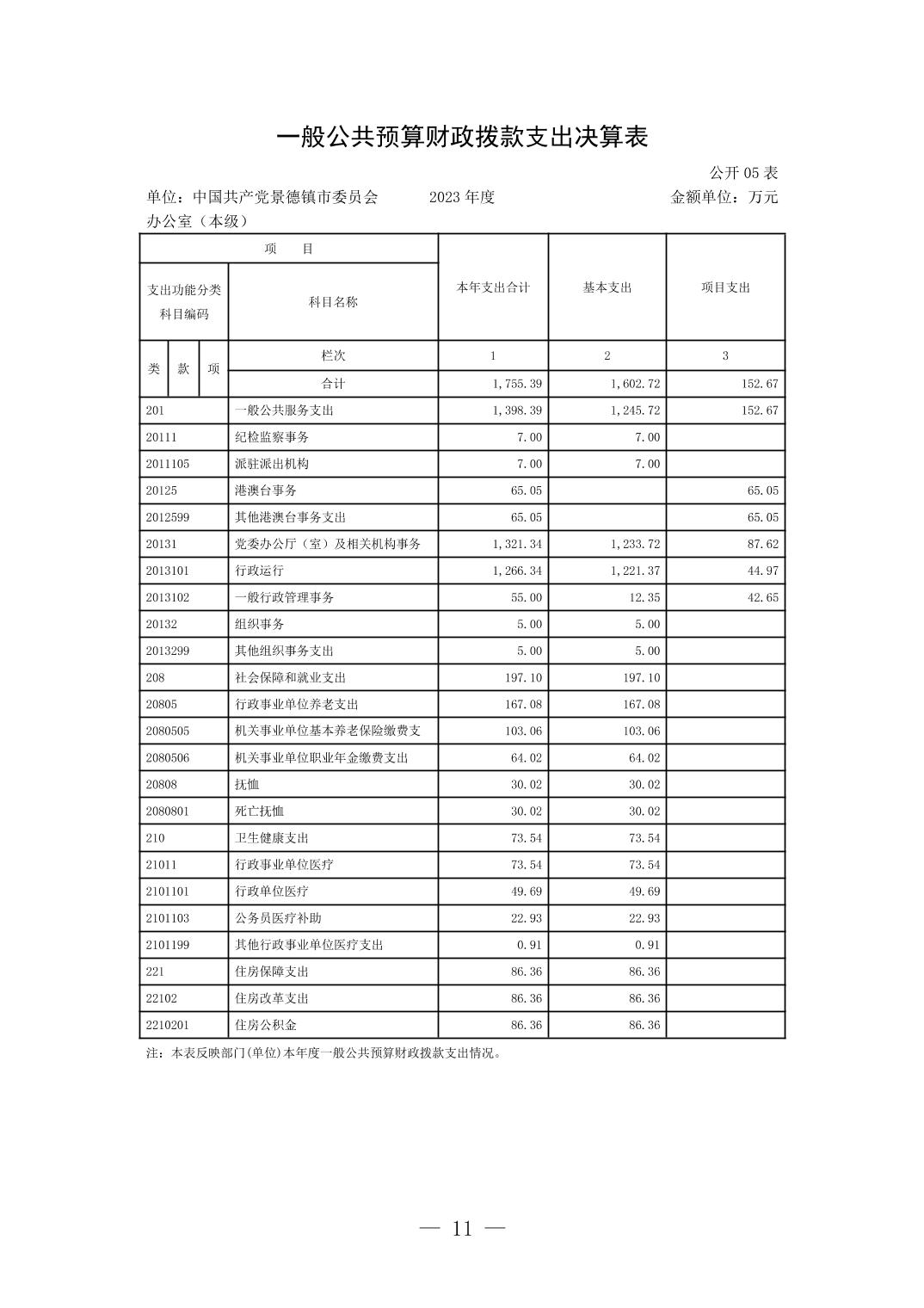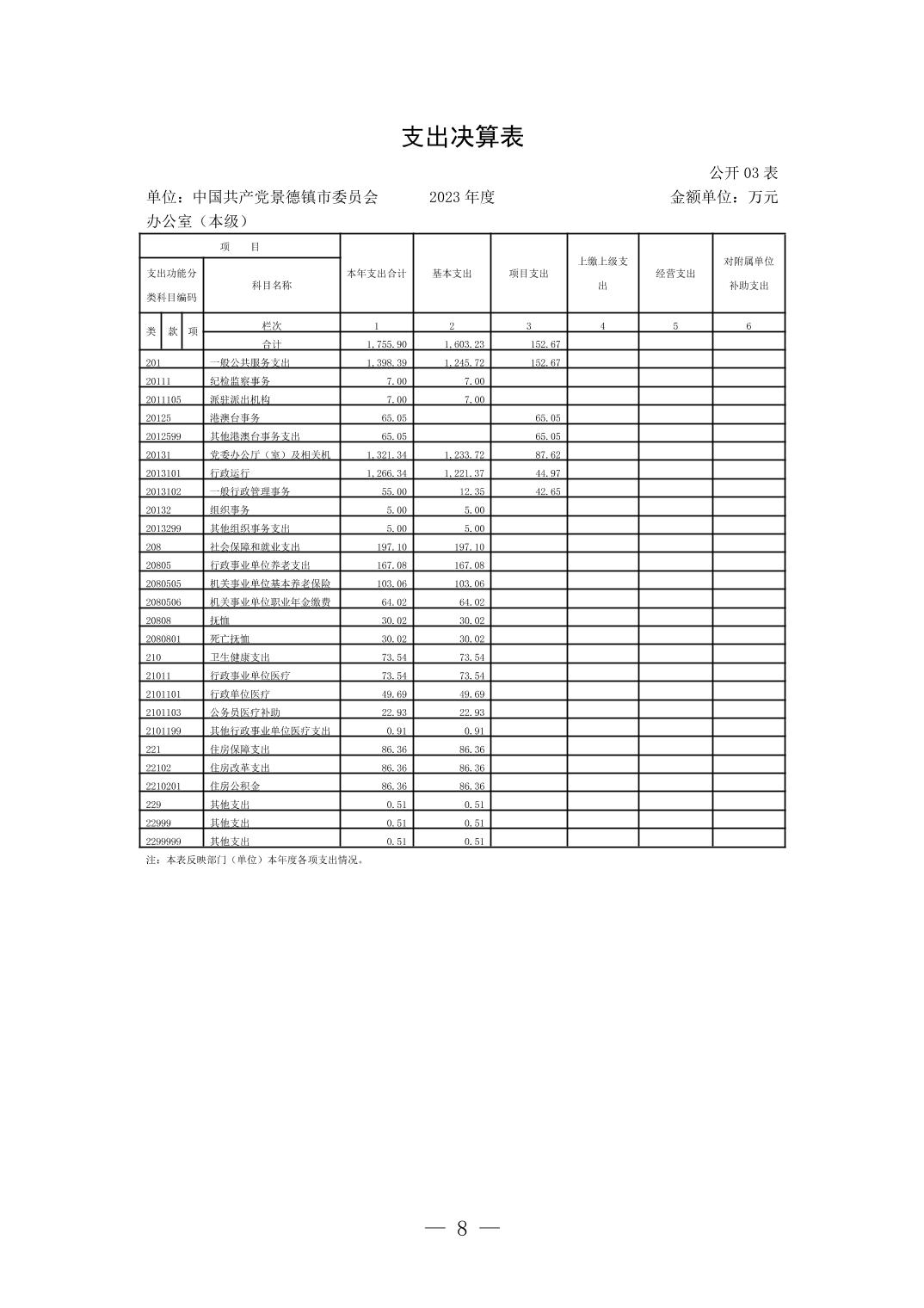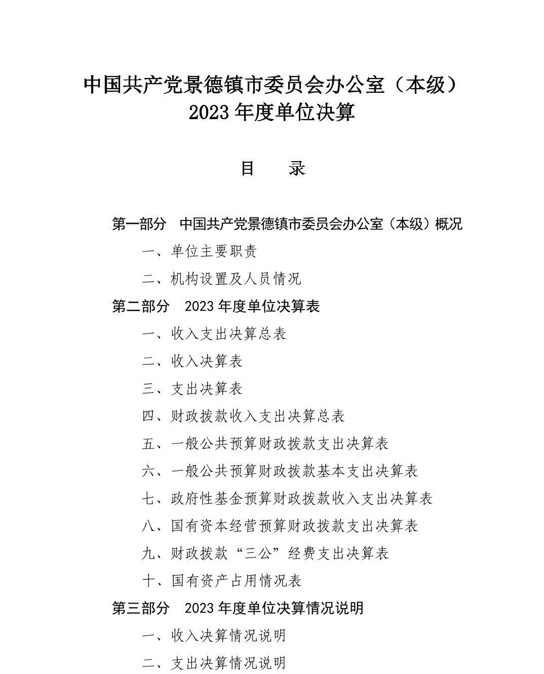 中国共产党景德镇市委员会办公室(本级)2023年单位决算