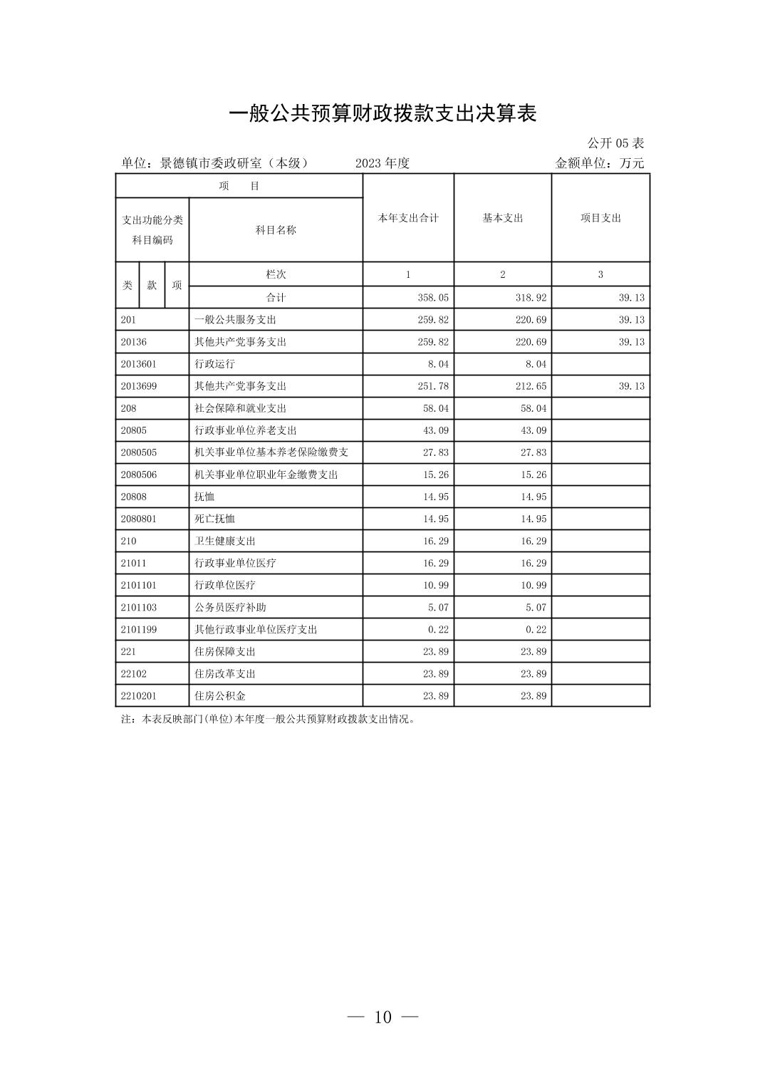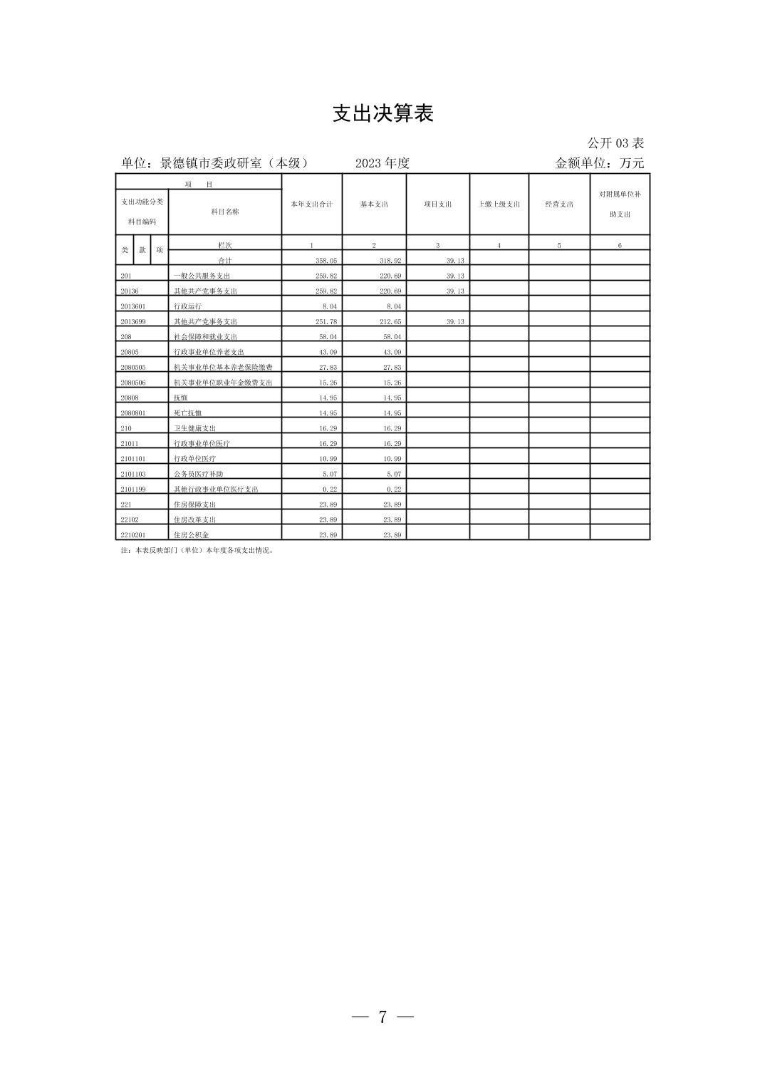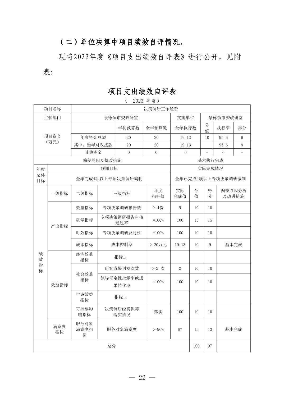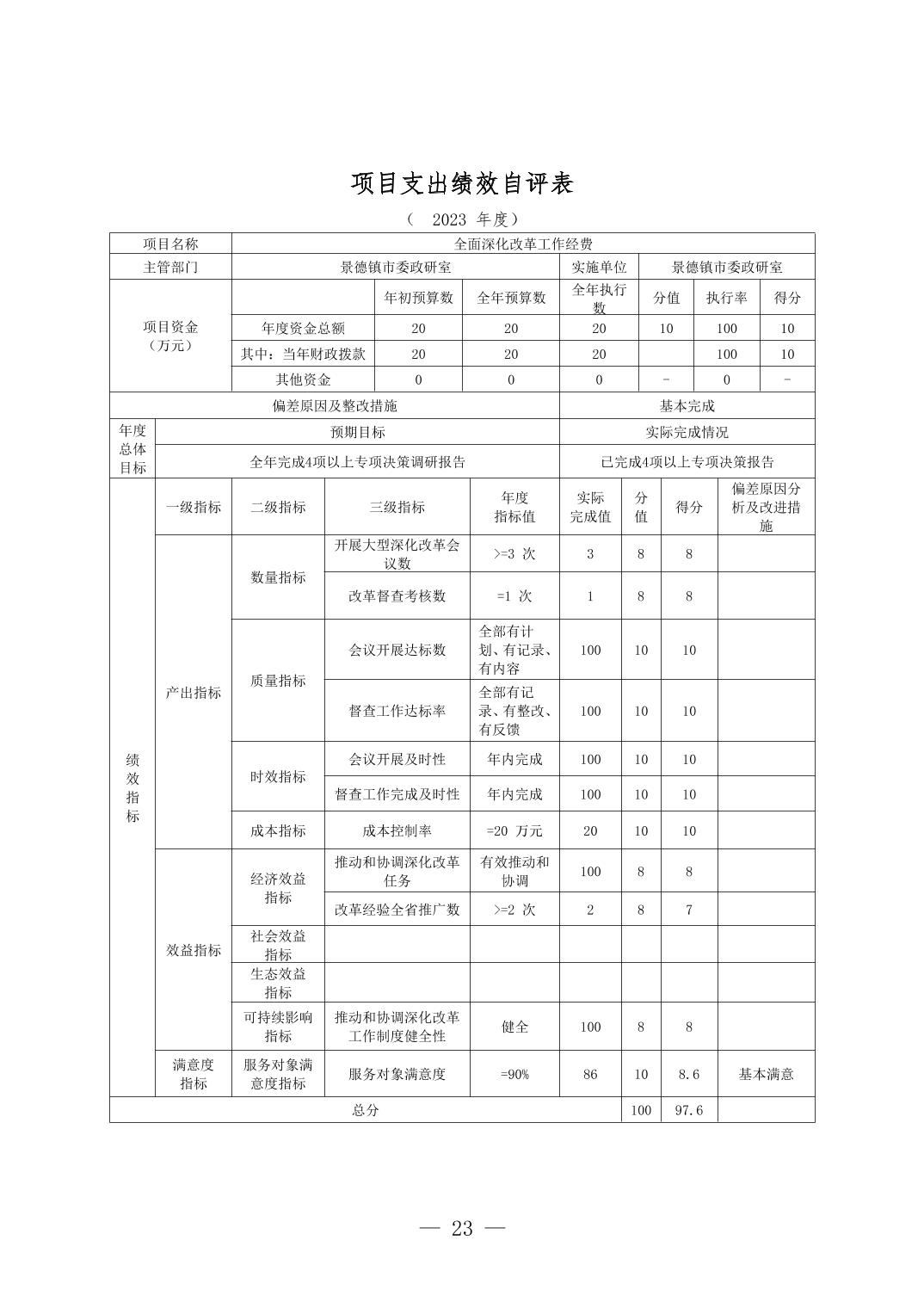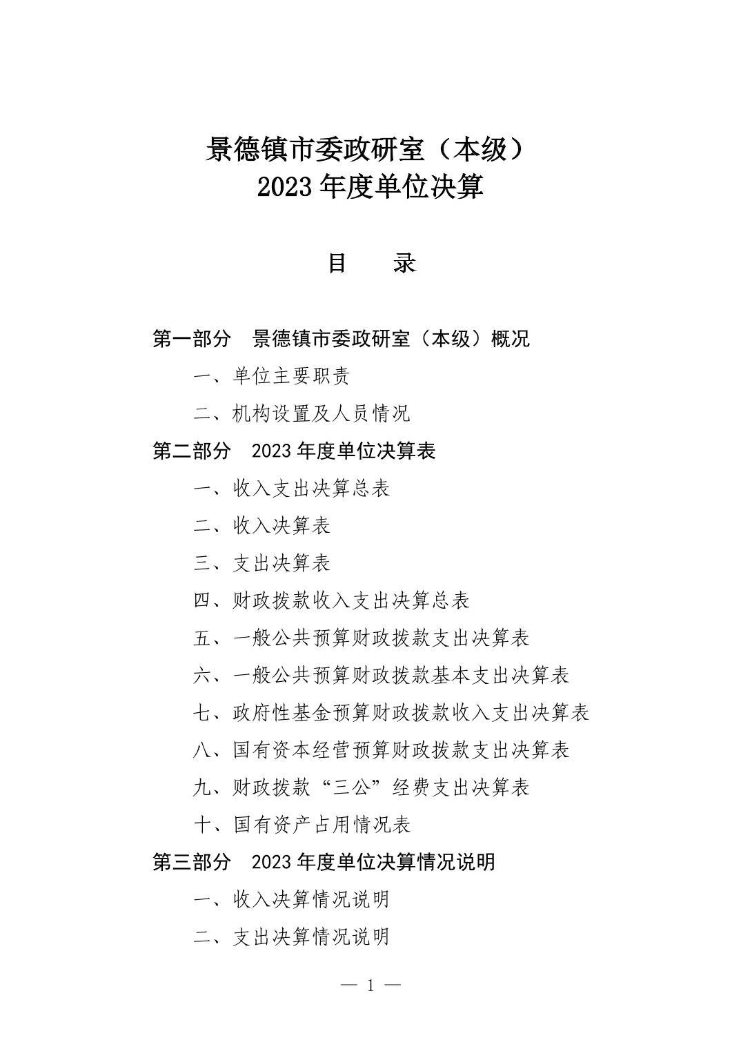 景德镇市委政研室(本级)2023年单位决算