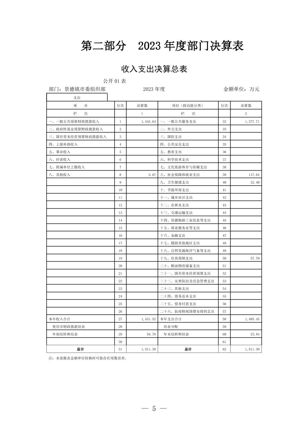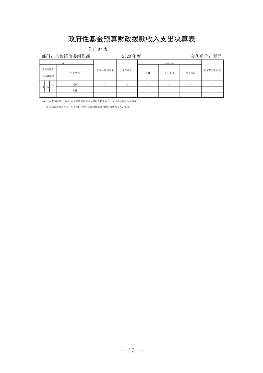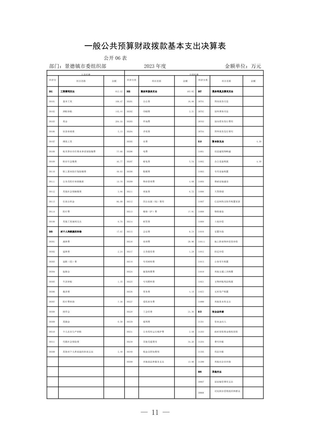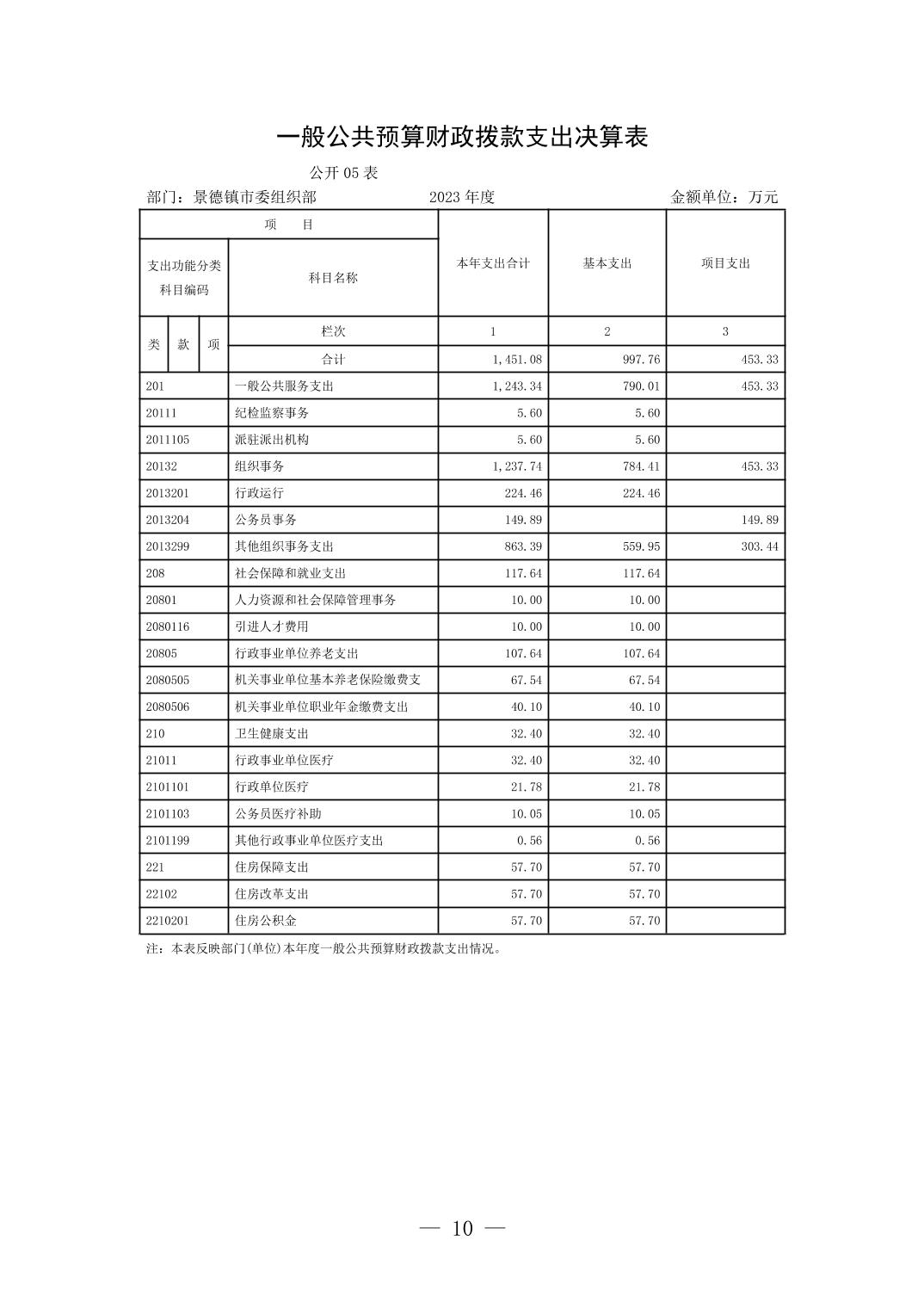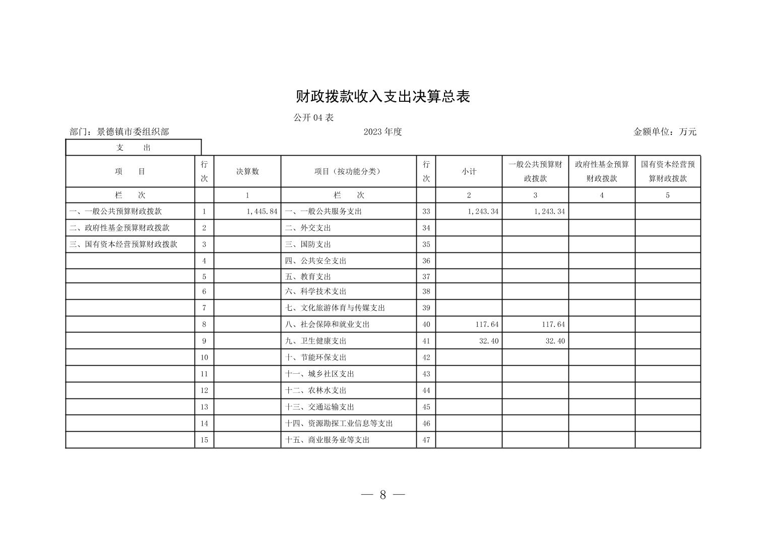景德镇市委组织部2023年部门决算公开报告