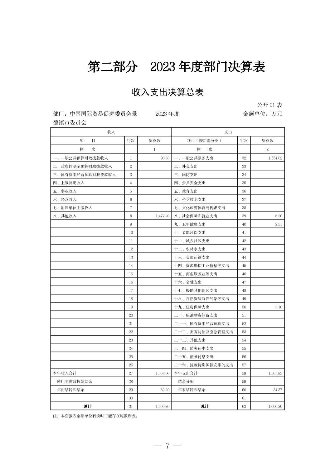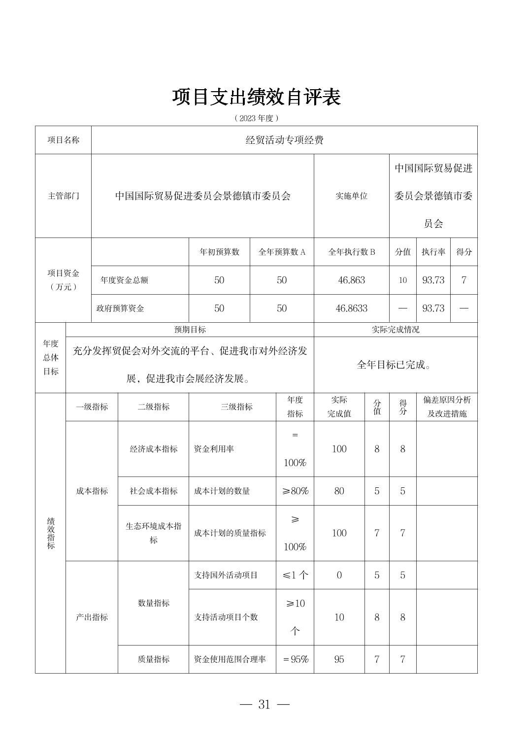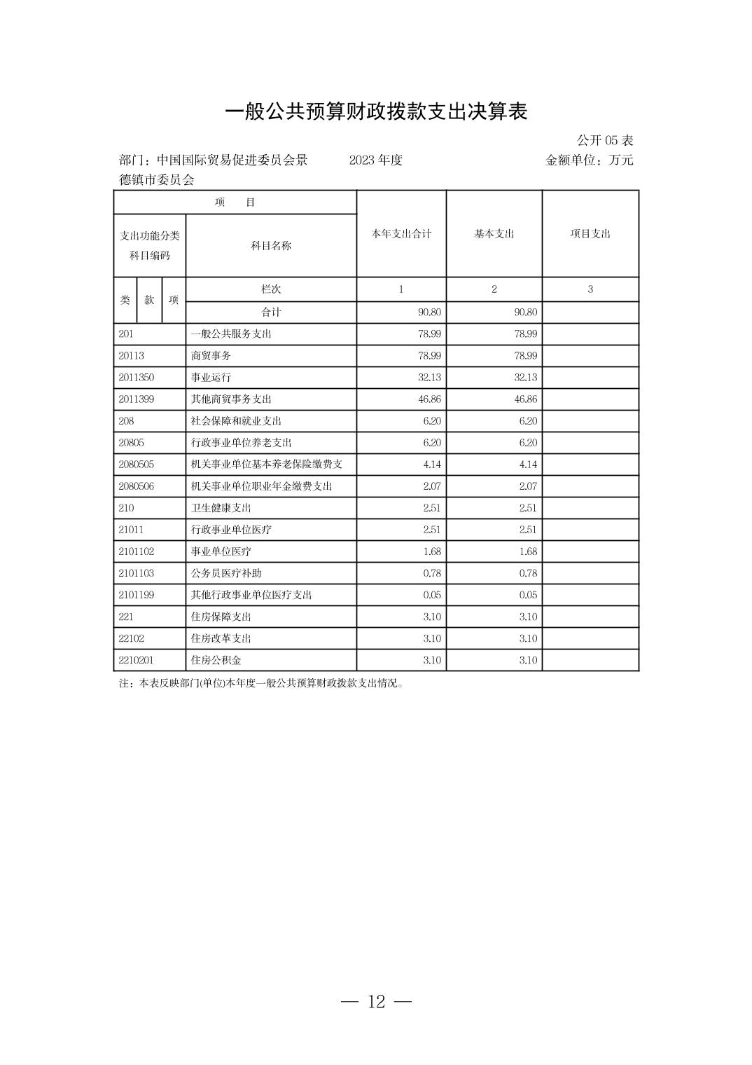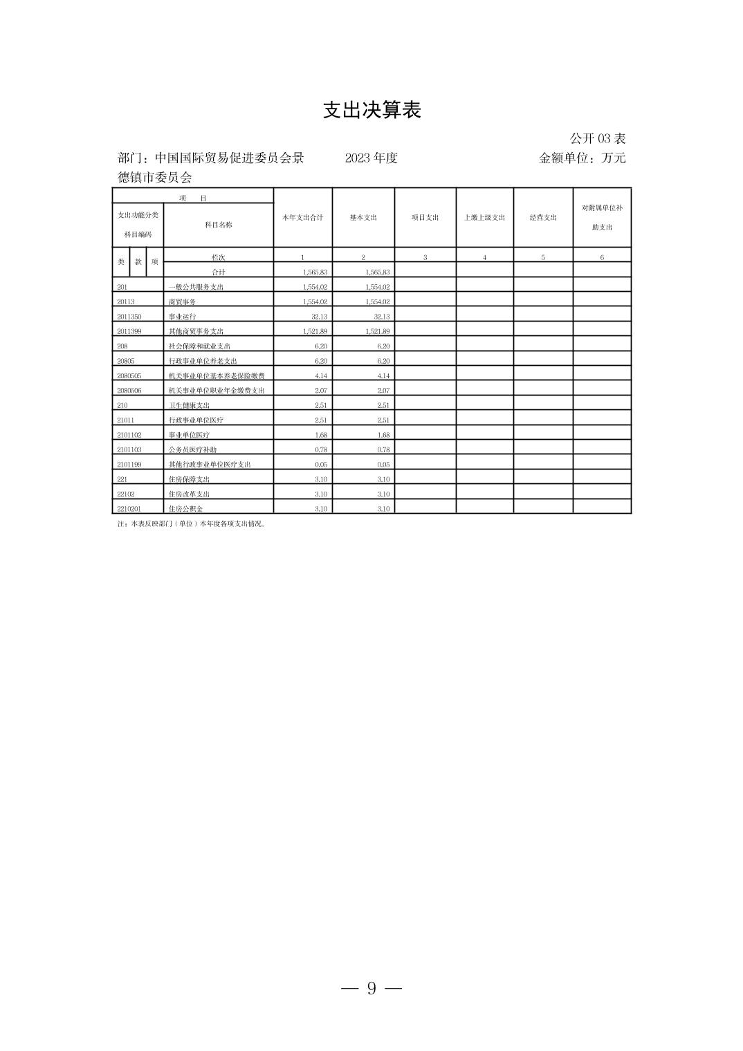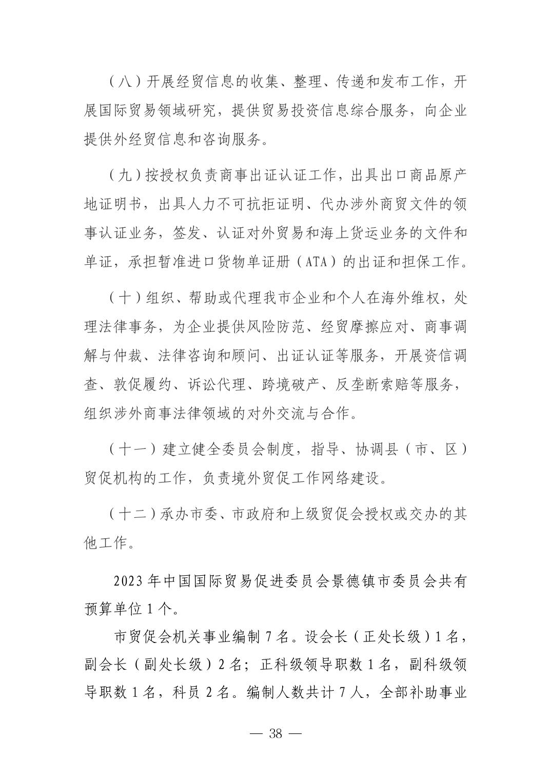 中国国际贸易促进委员会景德镇市委员会2023年度部门决算