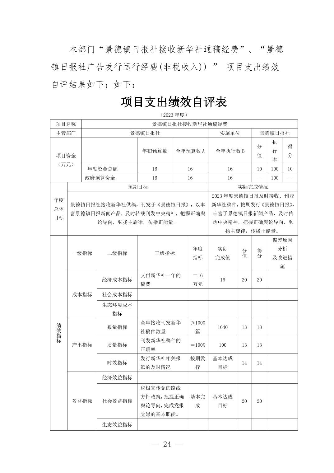 景德镇日报社2023年部门决算