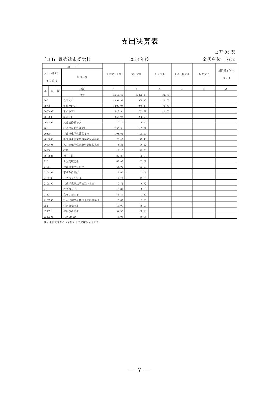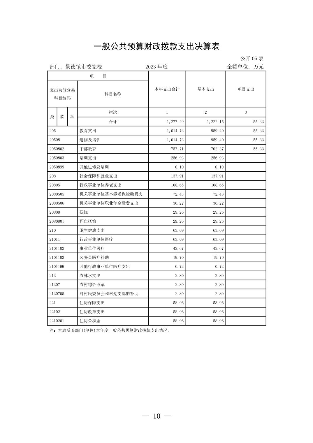景德镇市委党校2023年部门决算