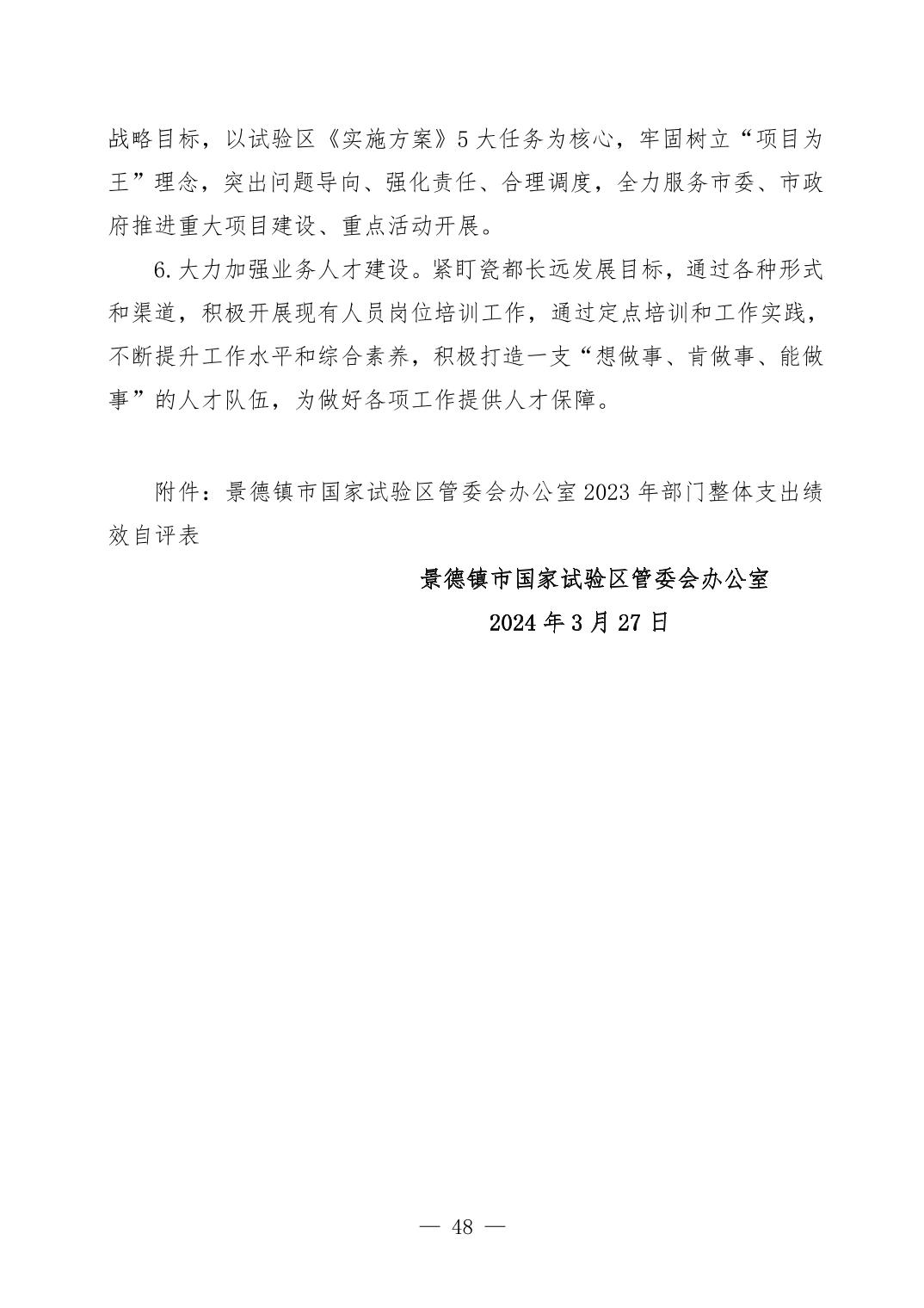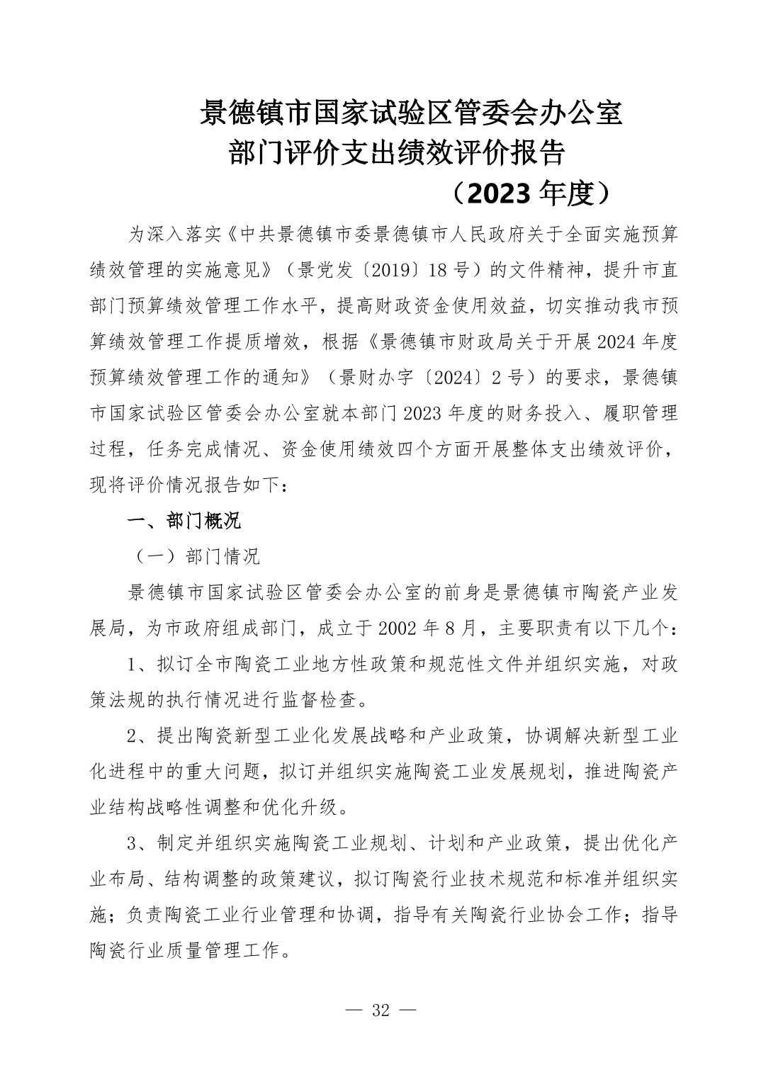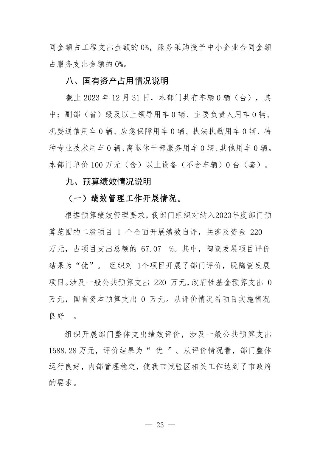 景德镇市国家试验区管委会2023年决算
