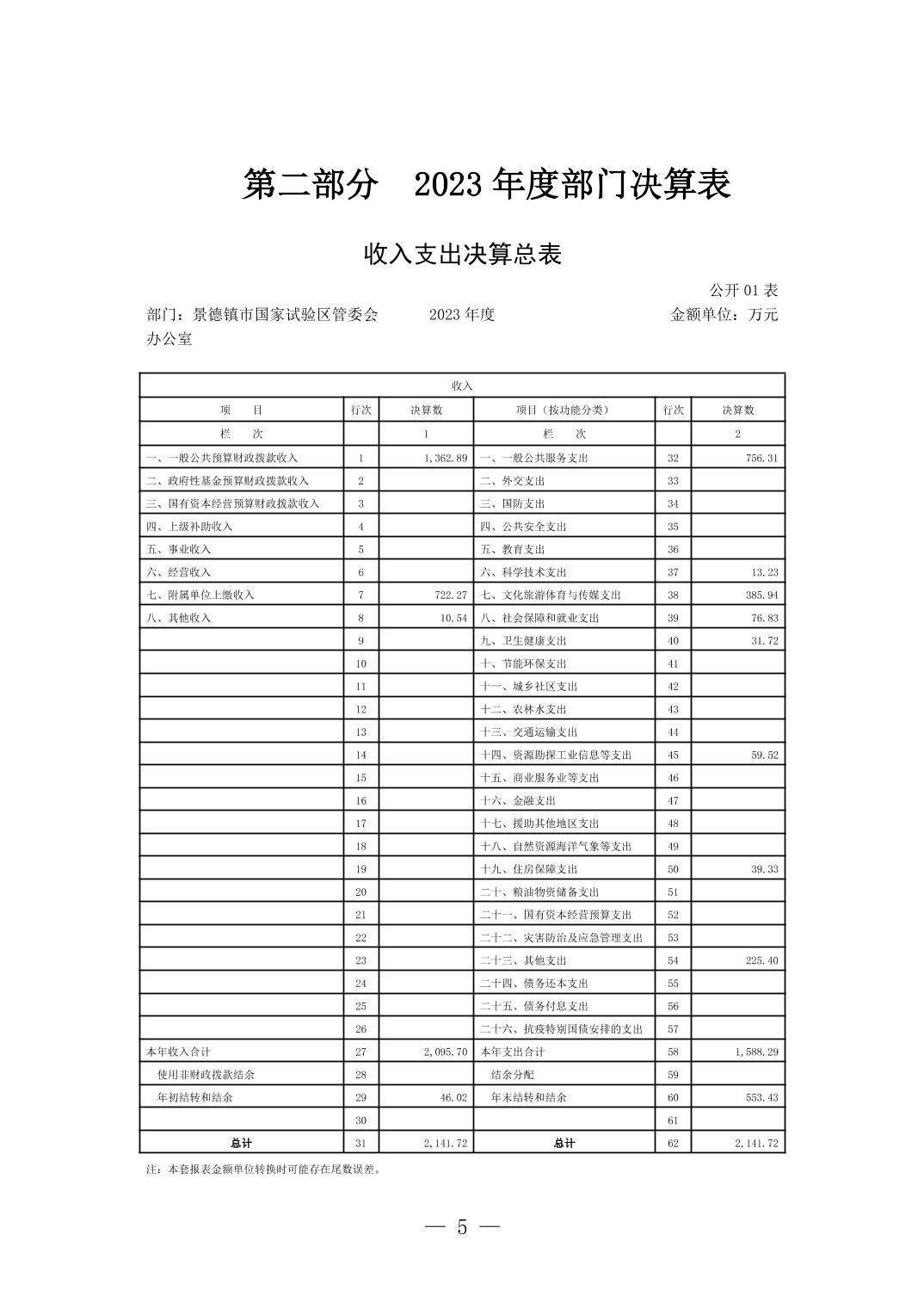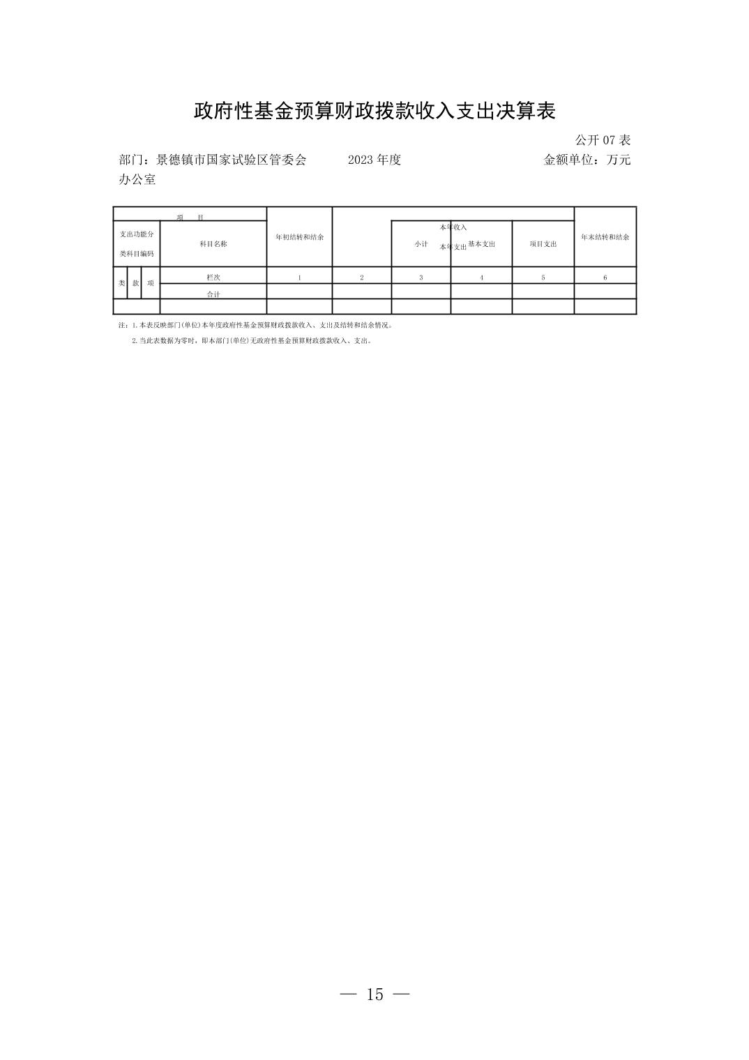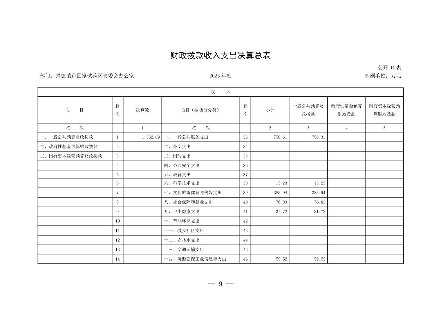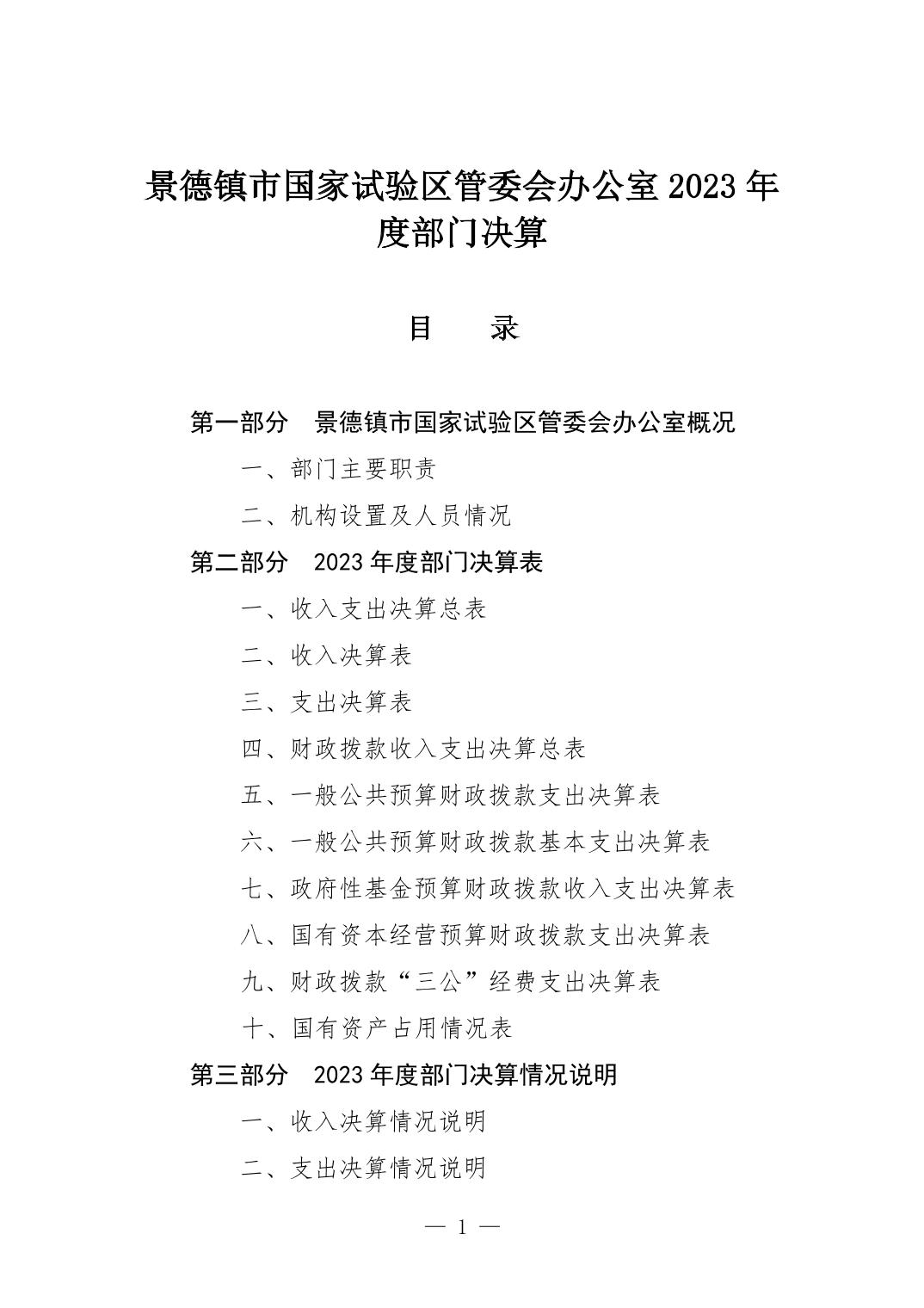 景德镇市国家试验区管委会2023年决算