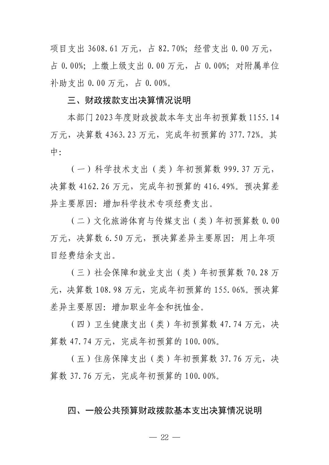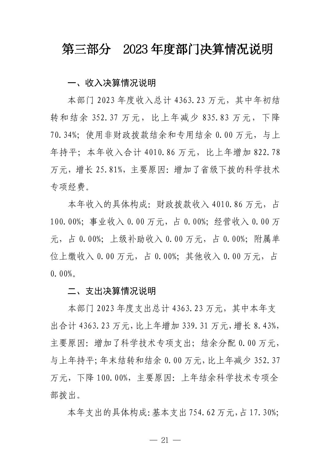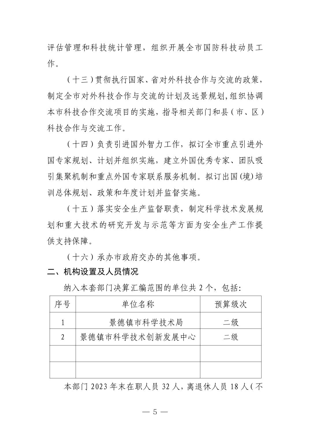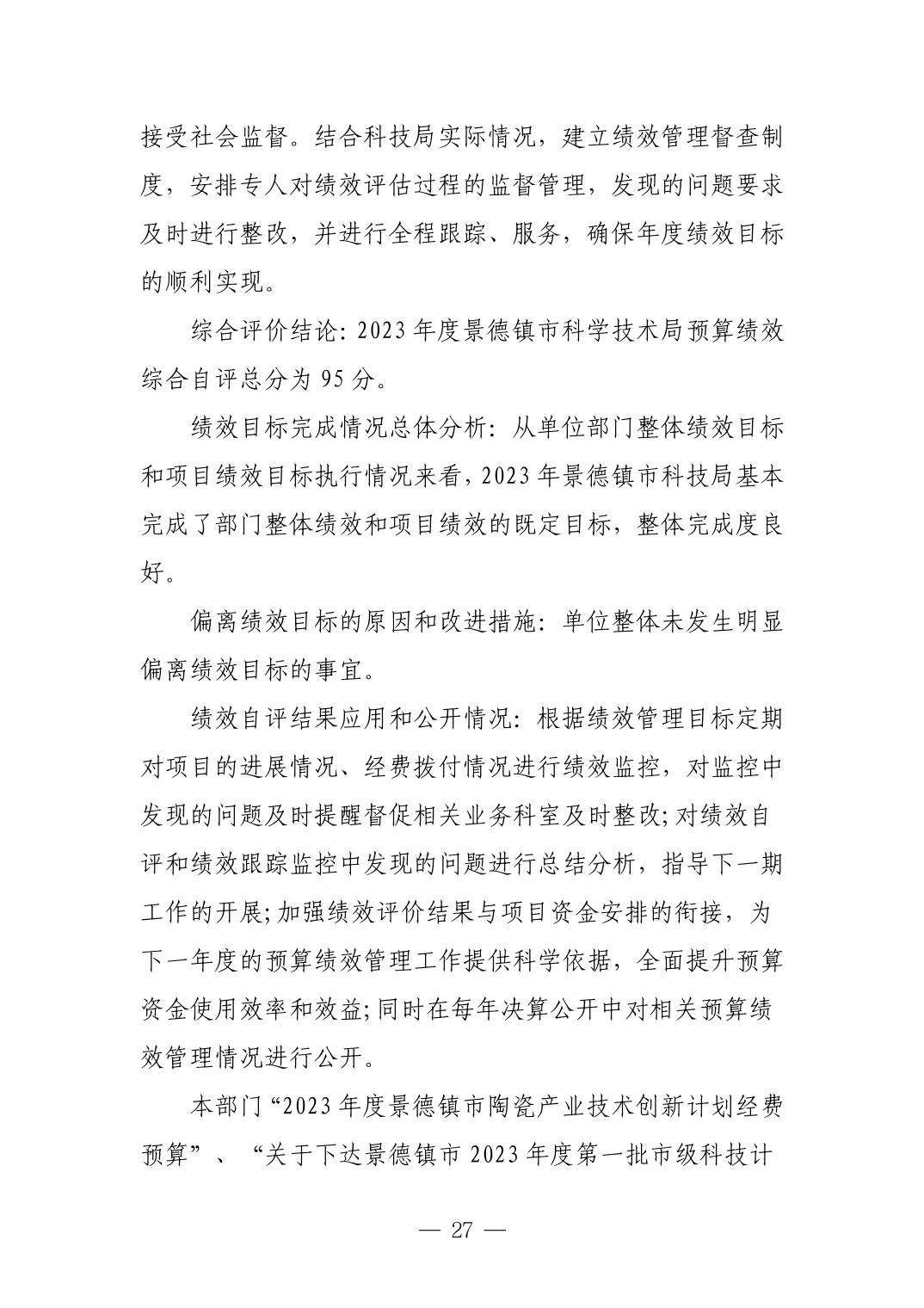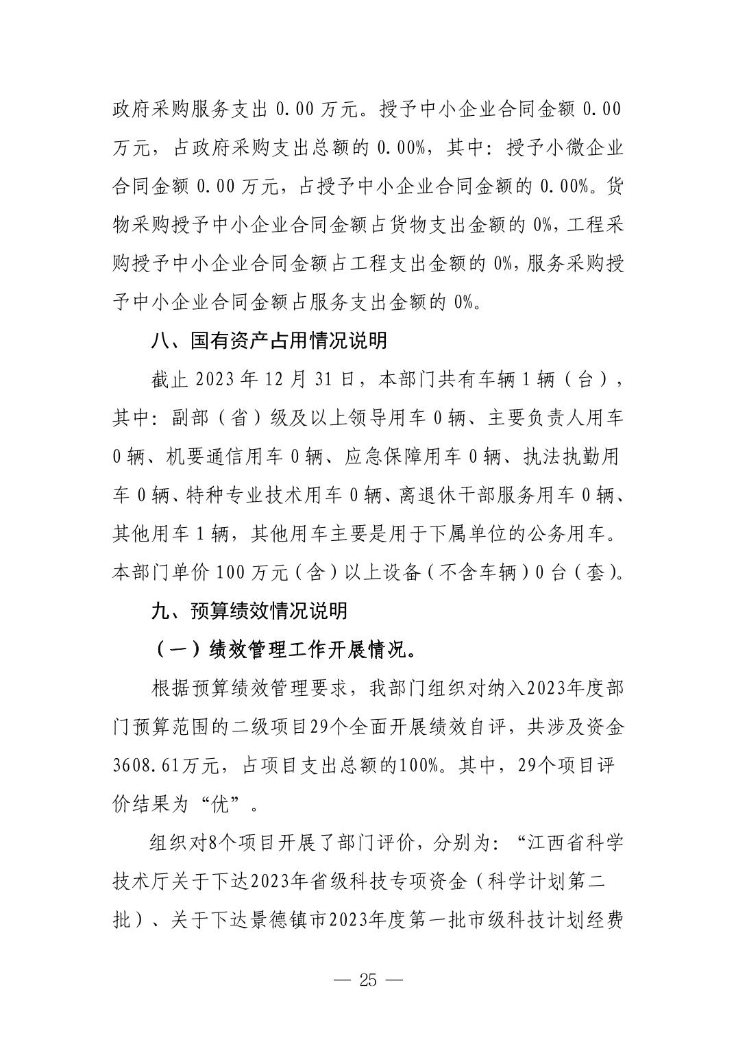 景德镇市科技局2023年部门决算