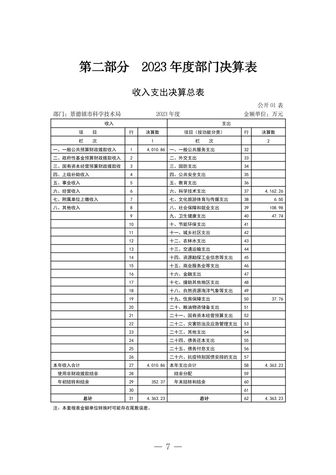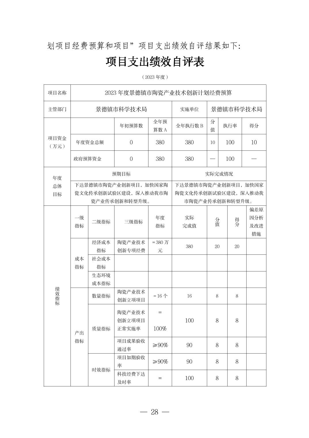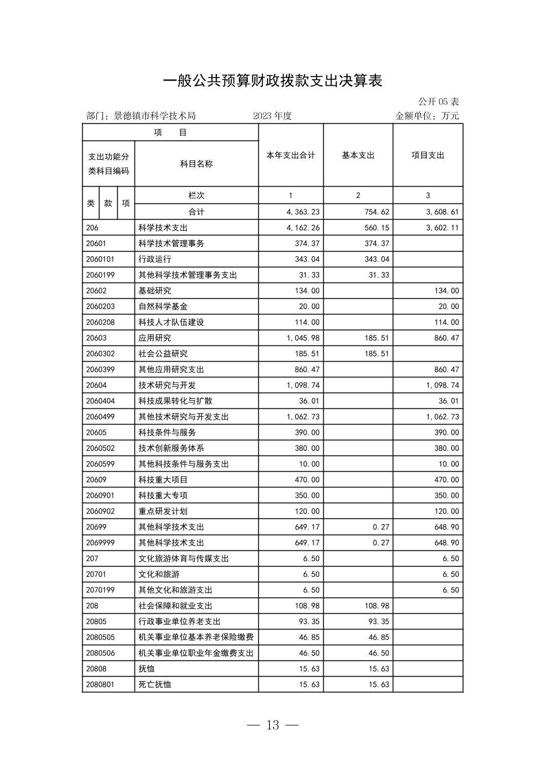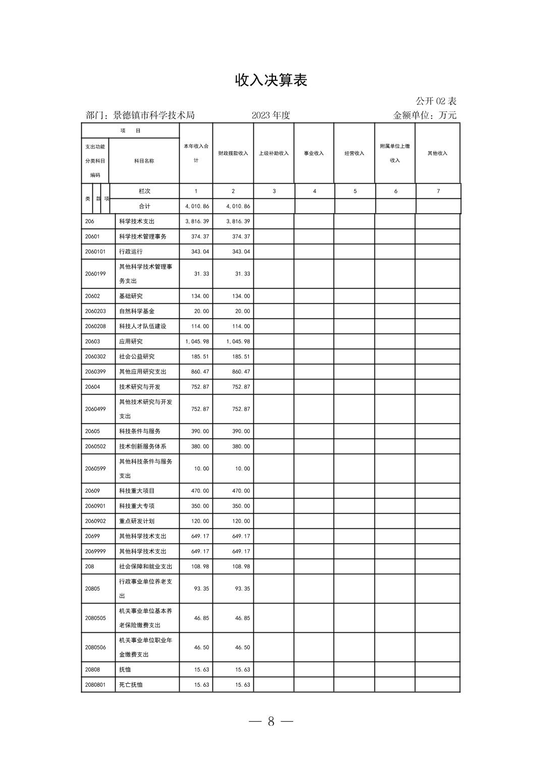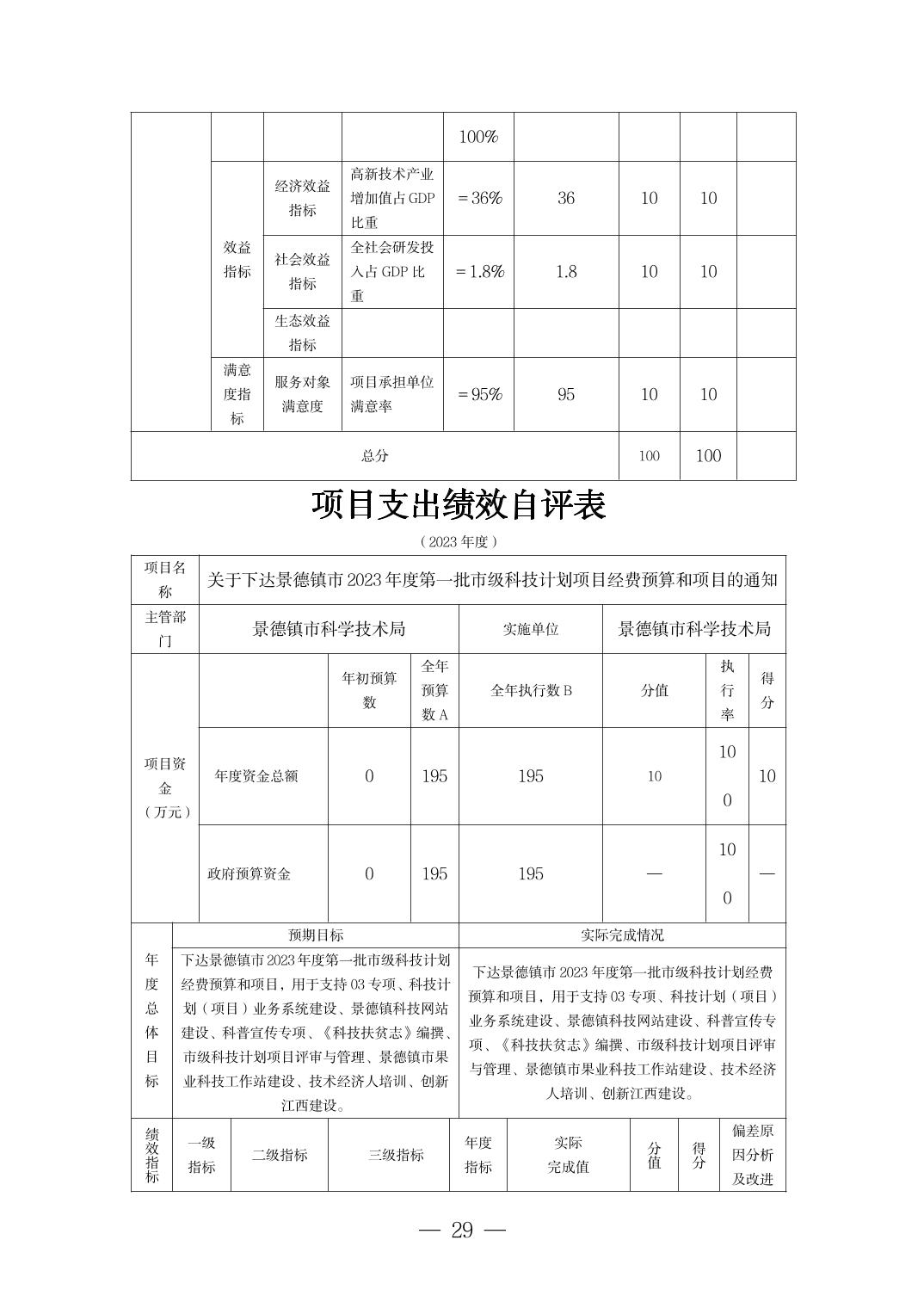 景德镇市科技局2023年部门决算