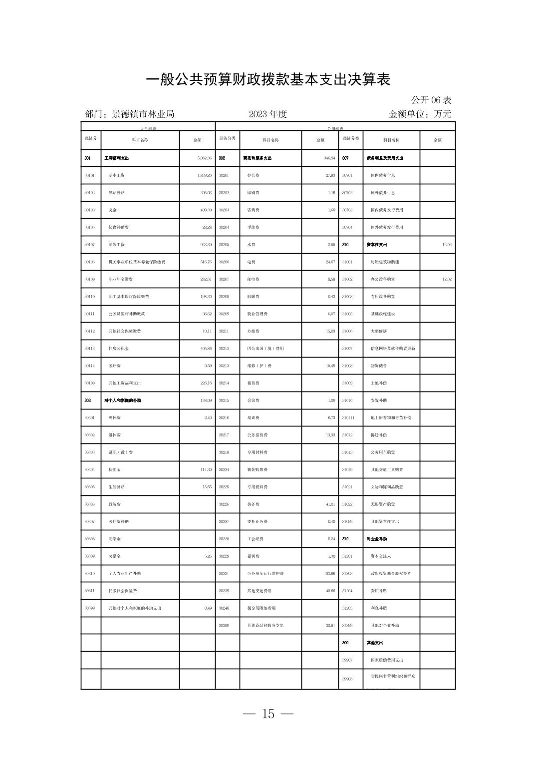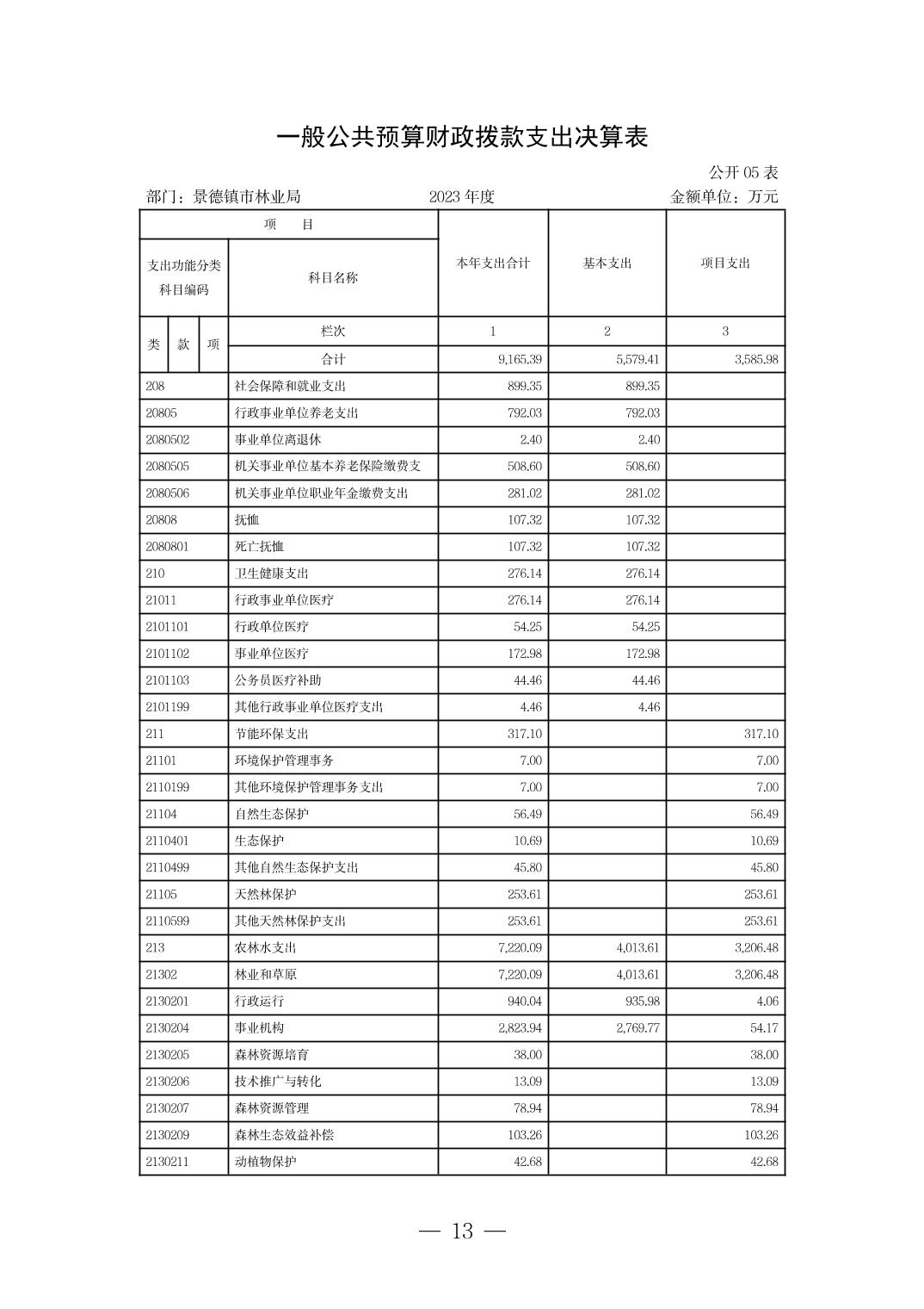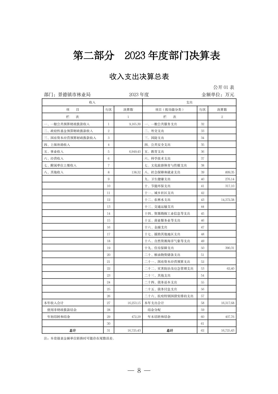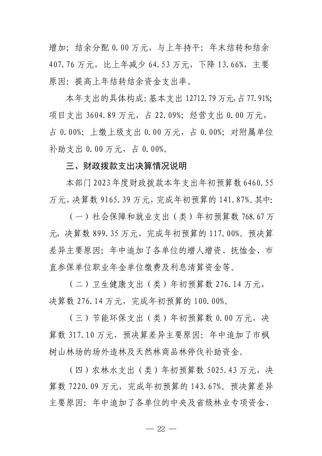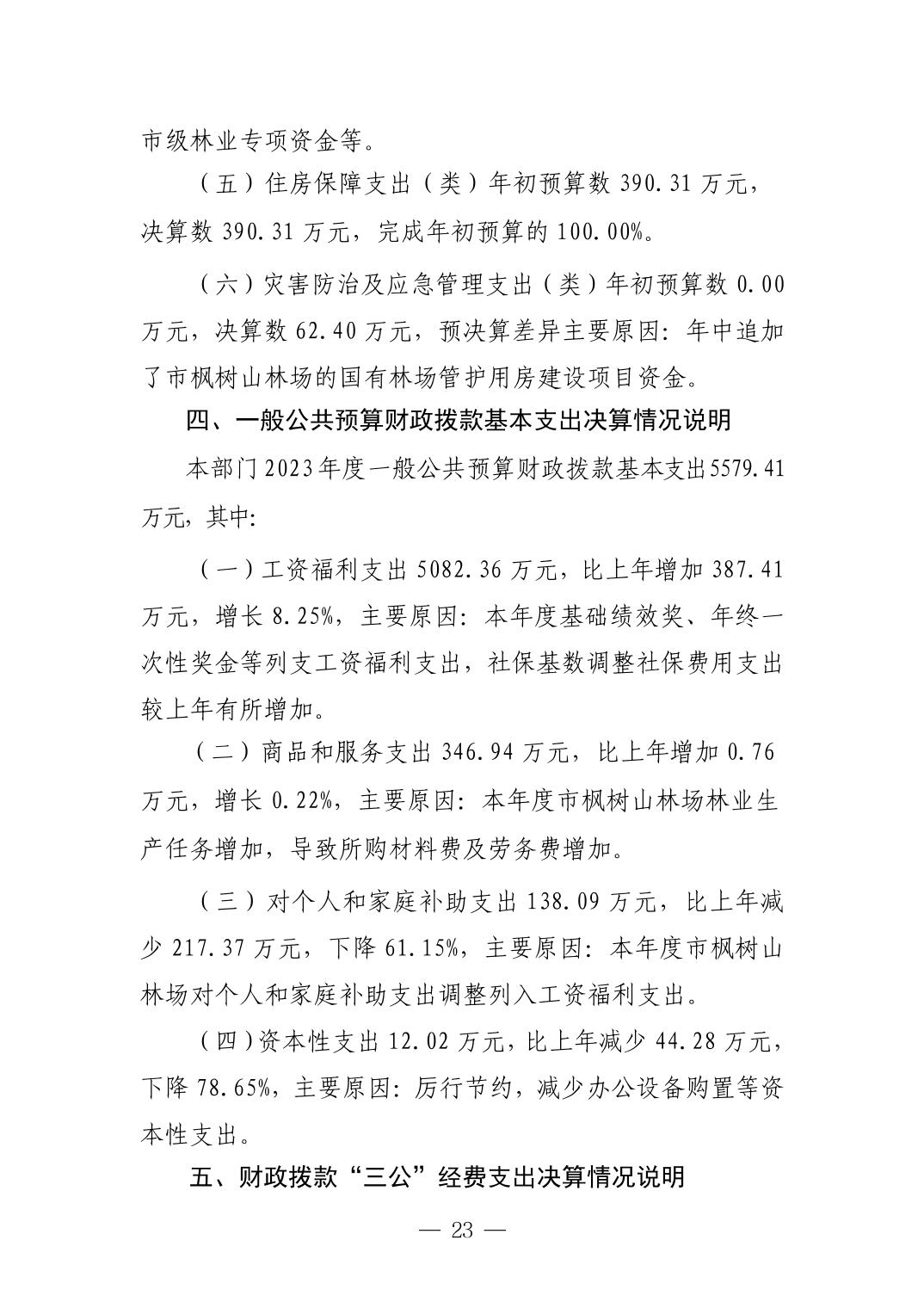 景德镇市林业局2023年部门决算