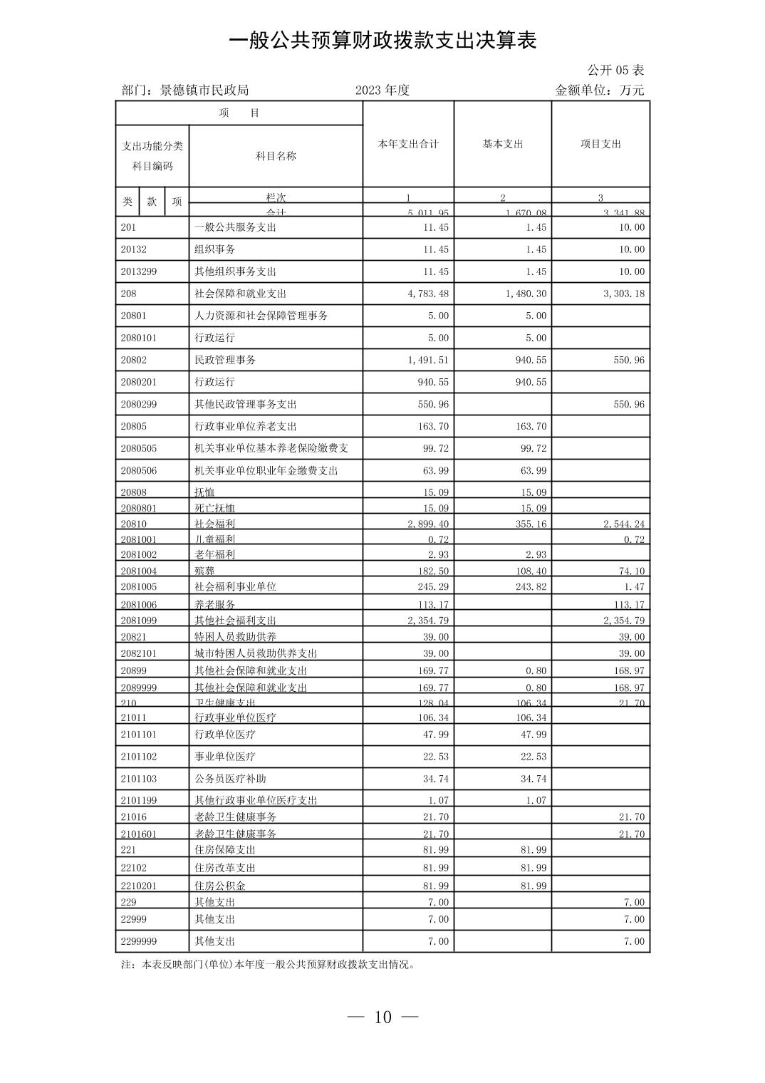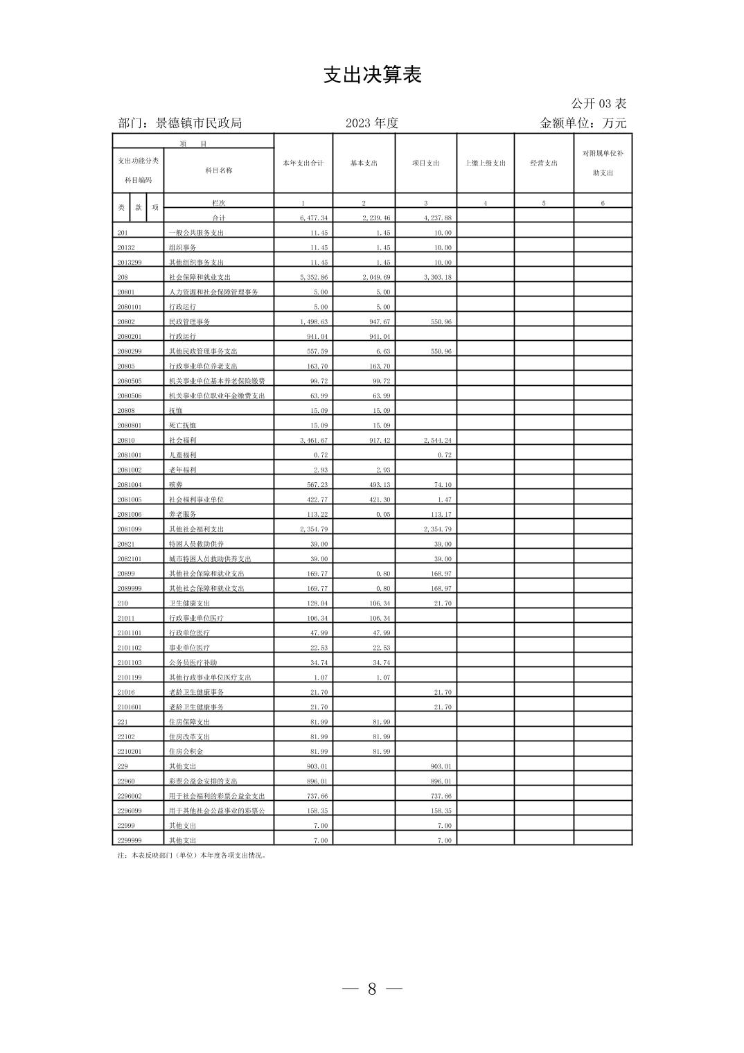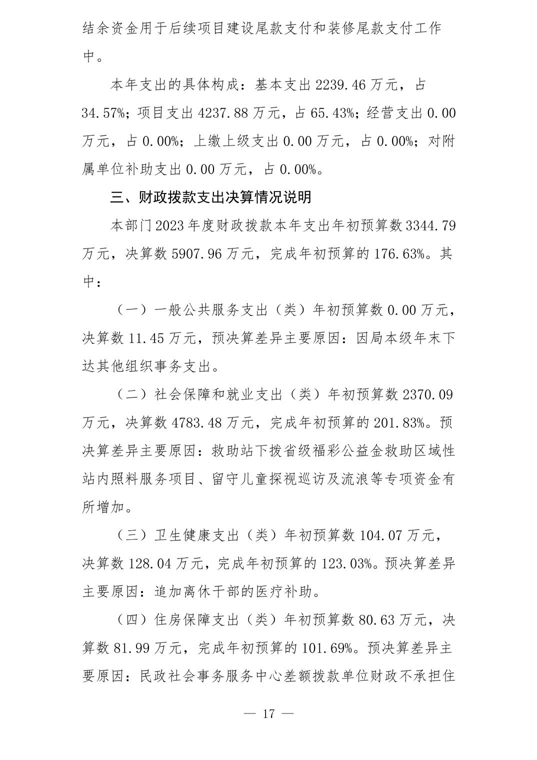 景德镇市民政局2023年部门决算