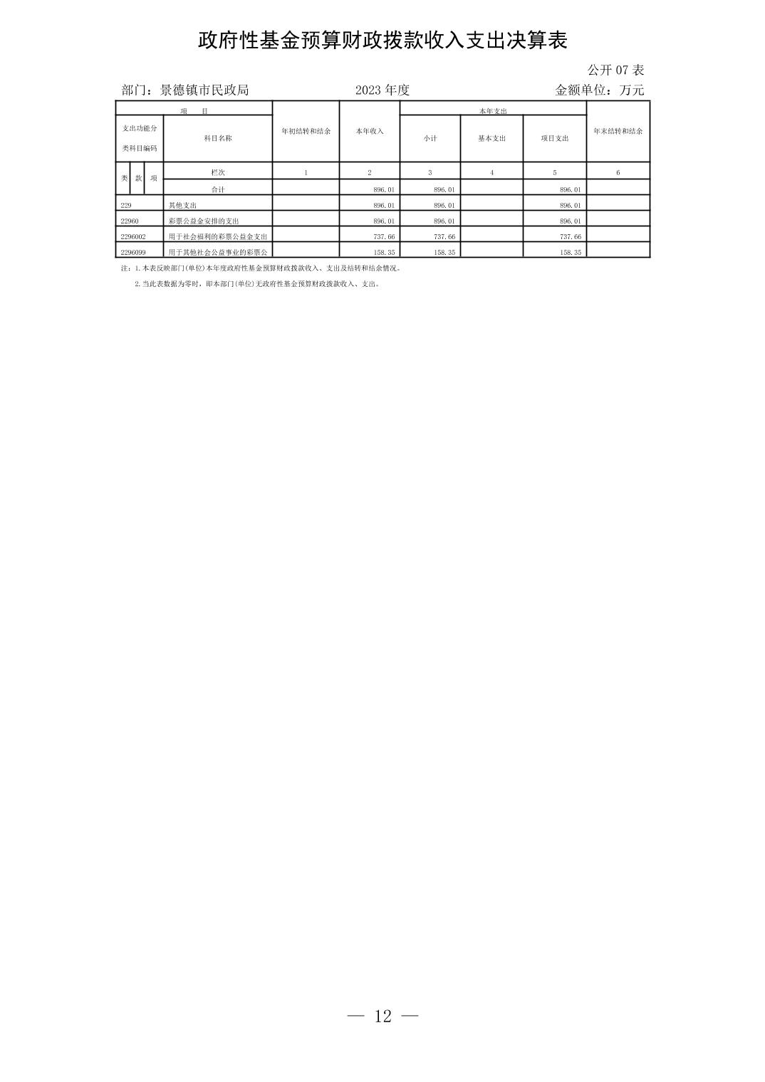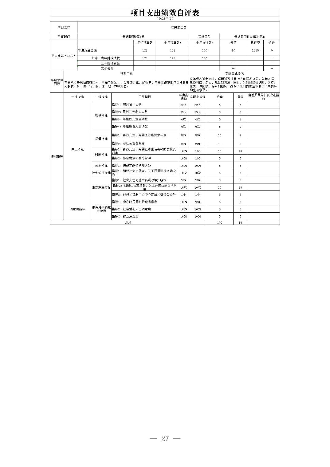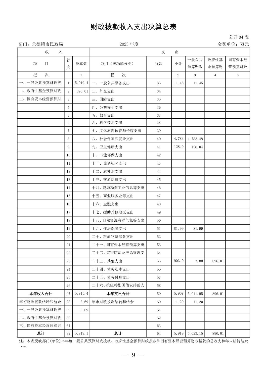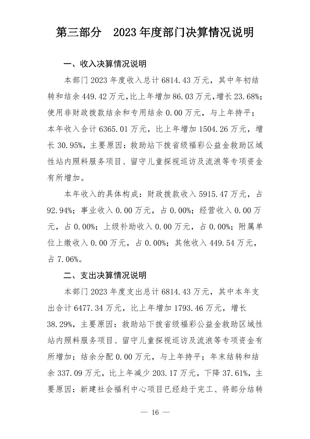 景德镇市民政局2023年部门决算