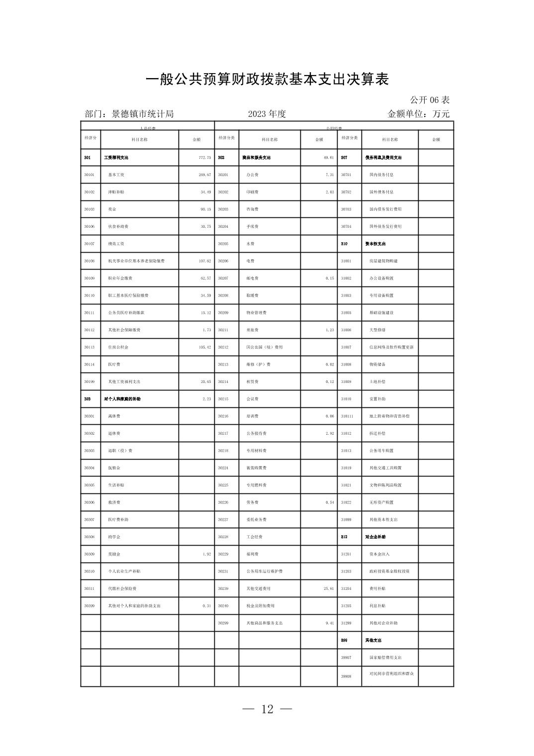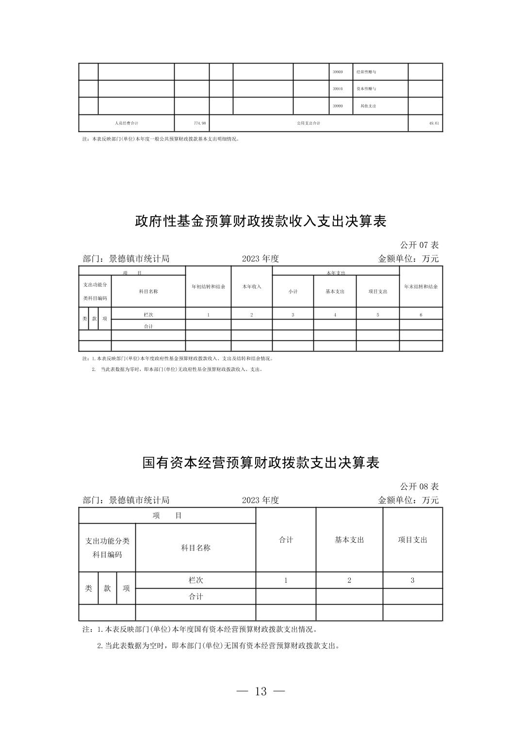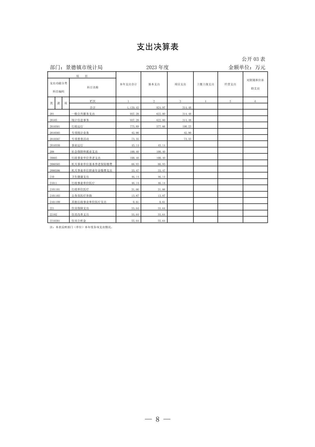 景德镇市统计局2023年部门决算