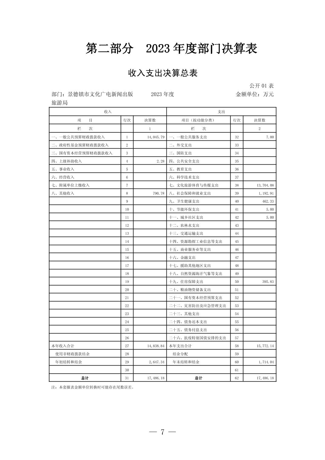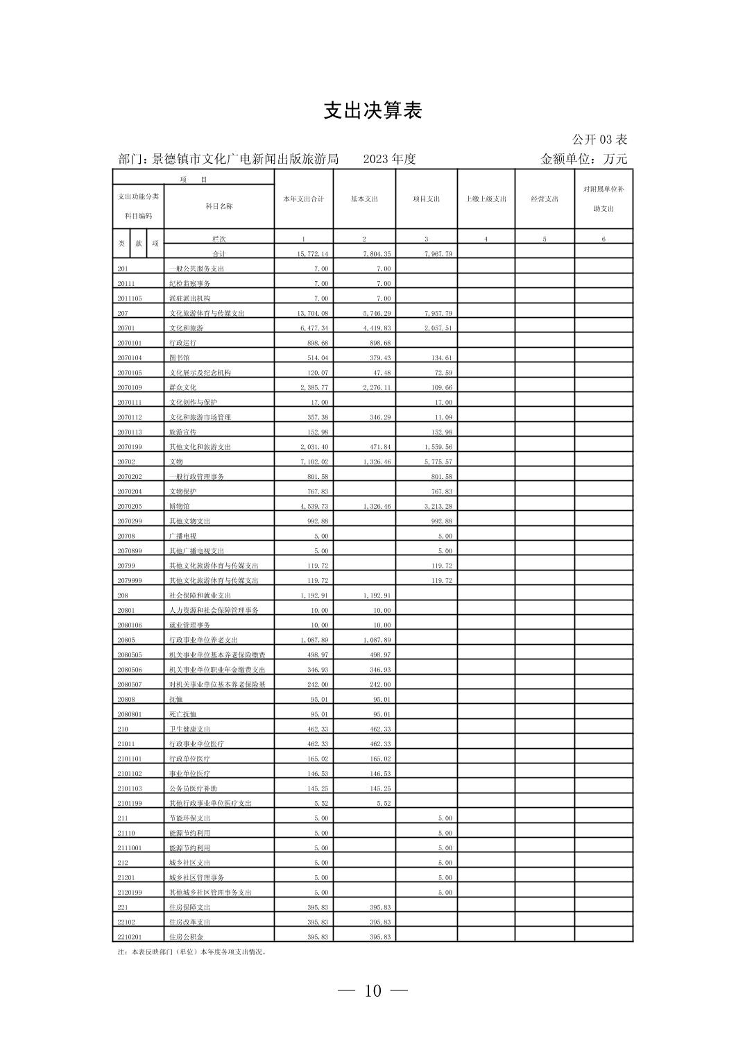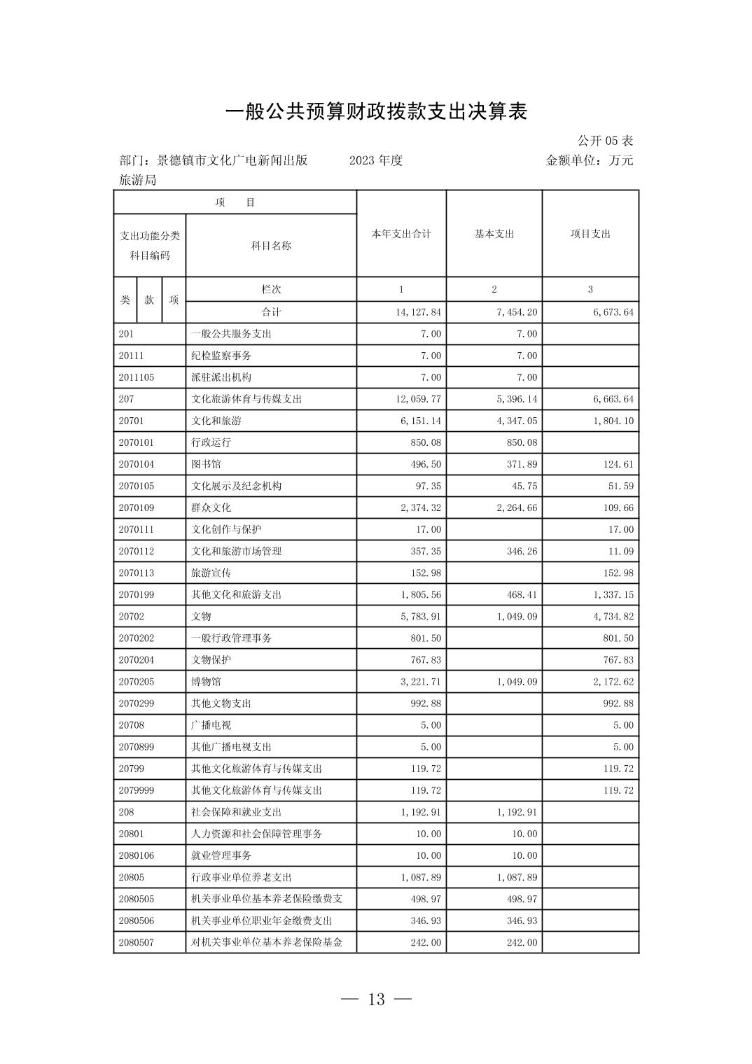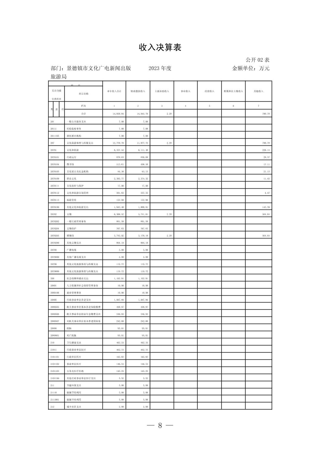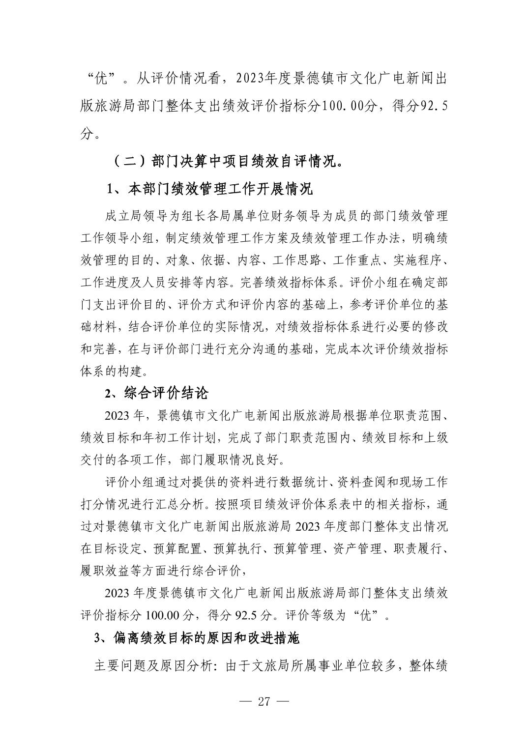 景德镇市文化广电新闻出版旅游局2023年部门决算