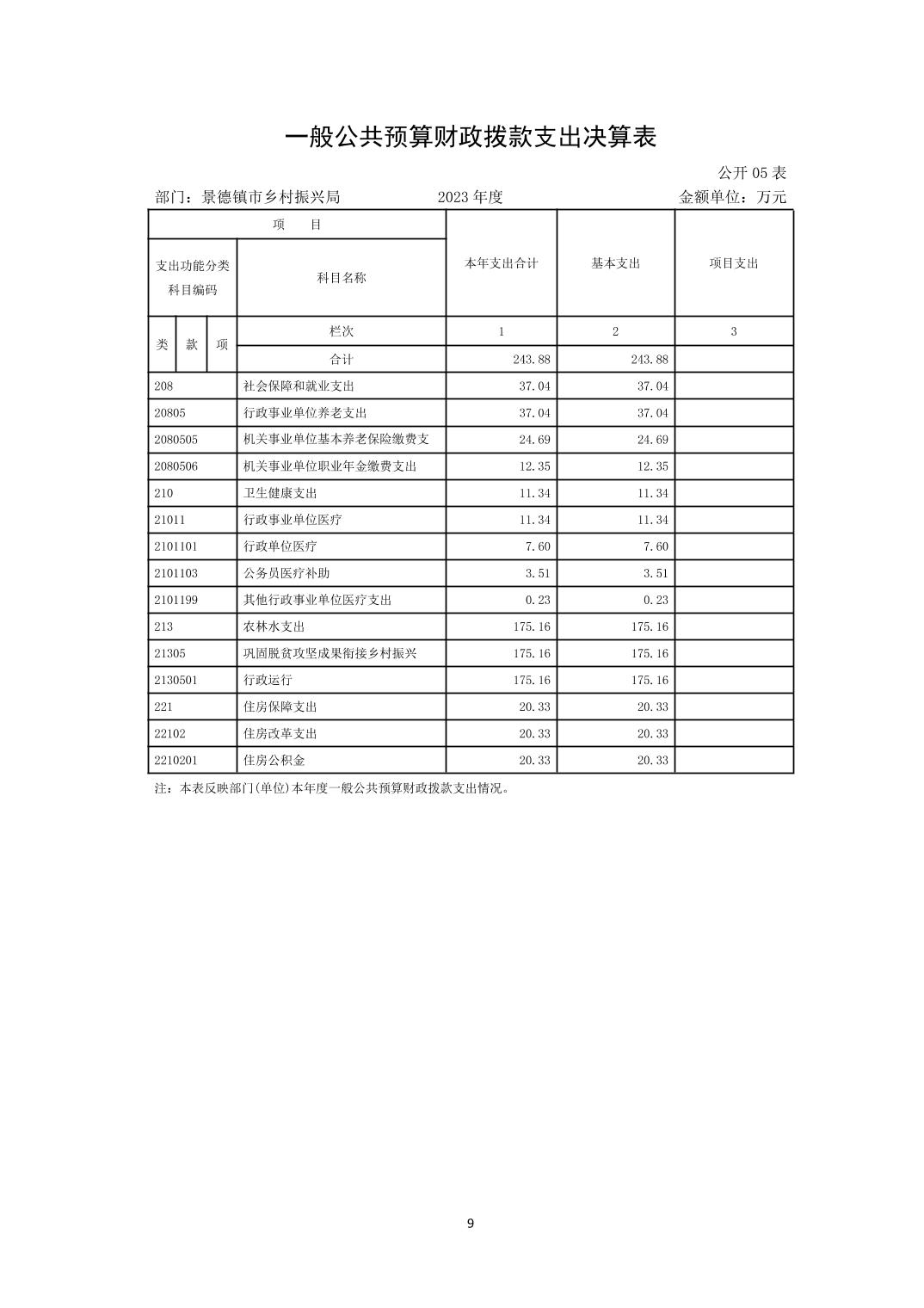 景德镇市乡村振兴局2023年部门决算