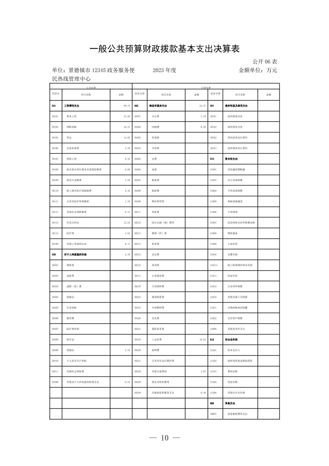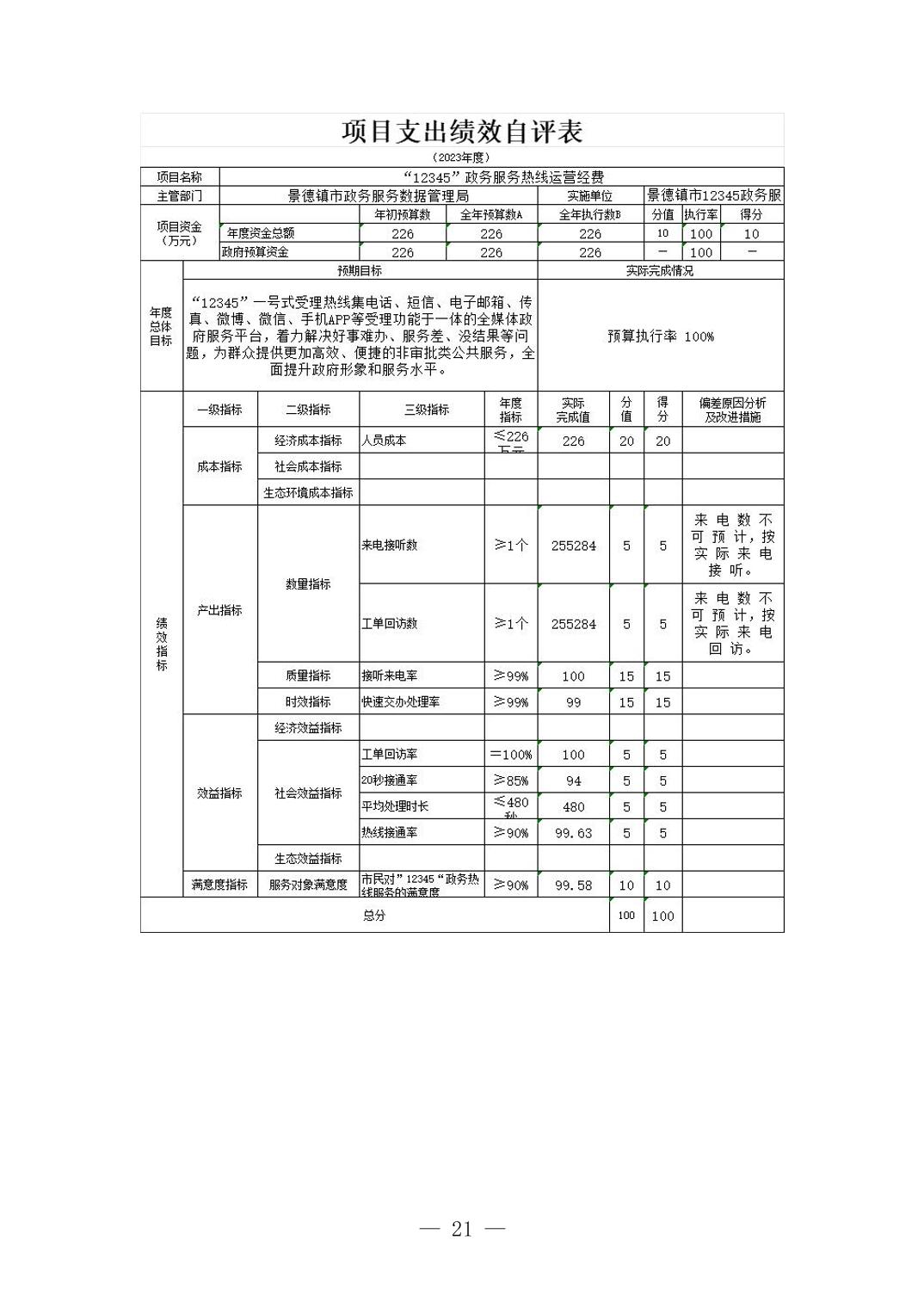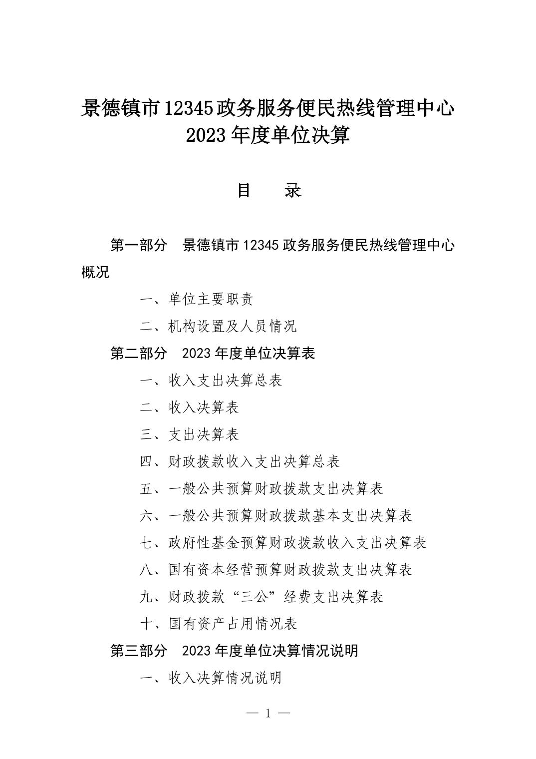 景德镇市12345政务服务便民热线管理中心2023年单位决算