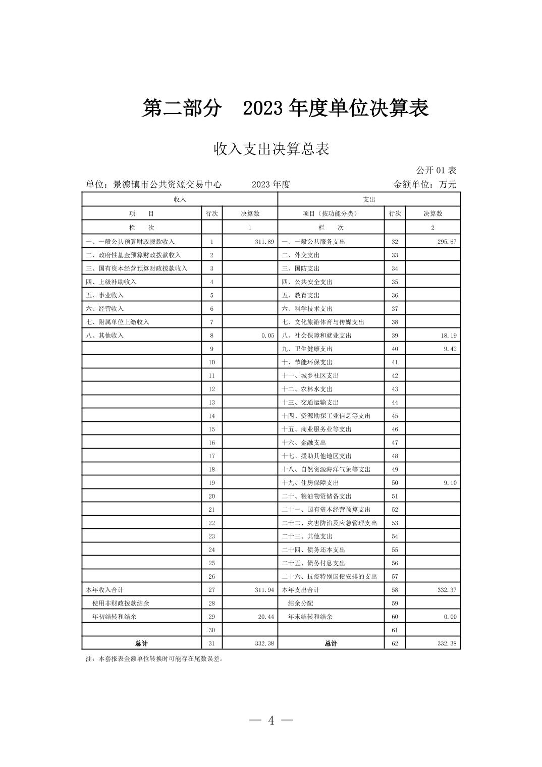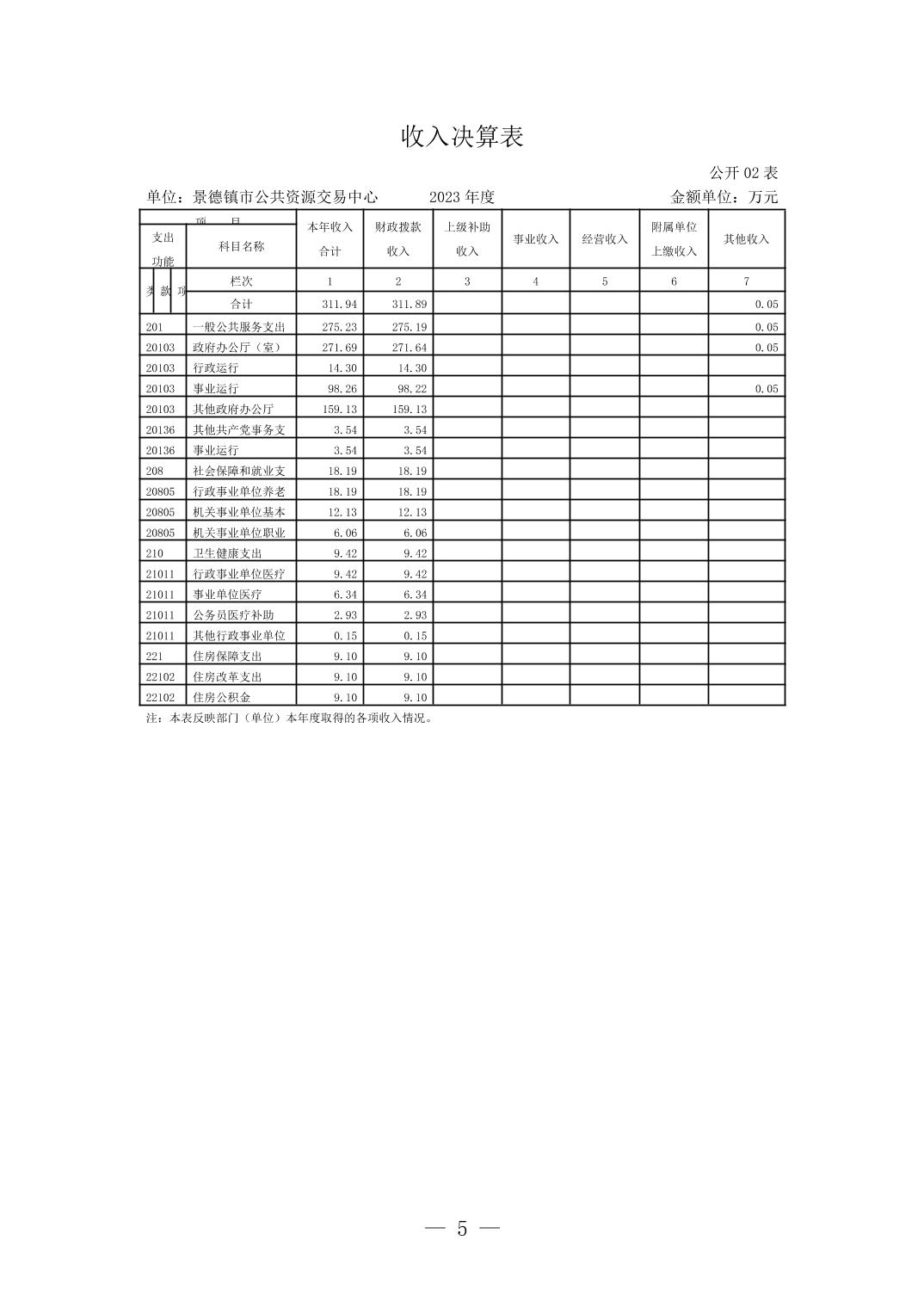 景德镇市公共资源交易中心2023年单位决算