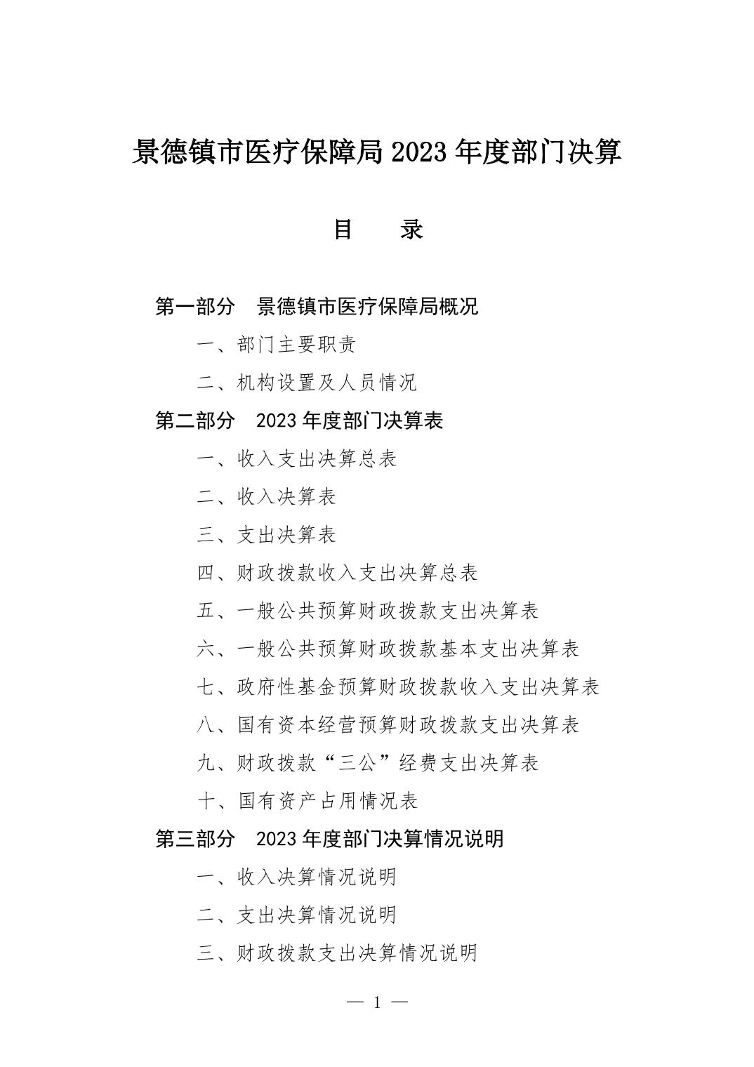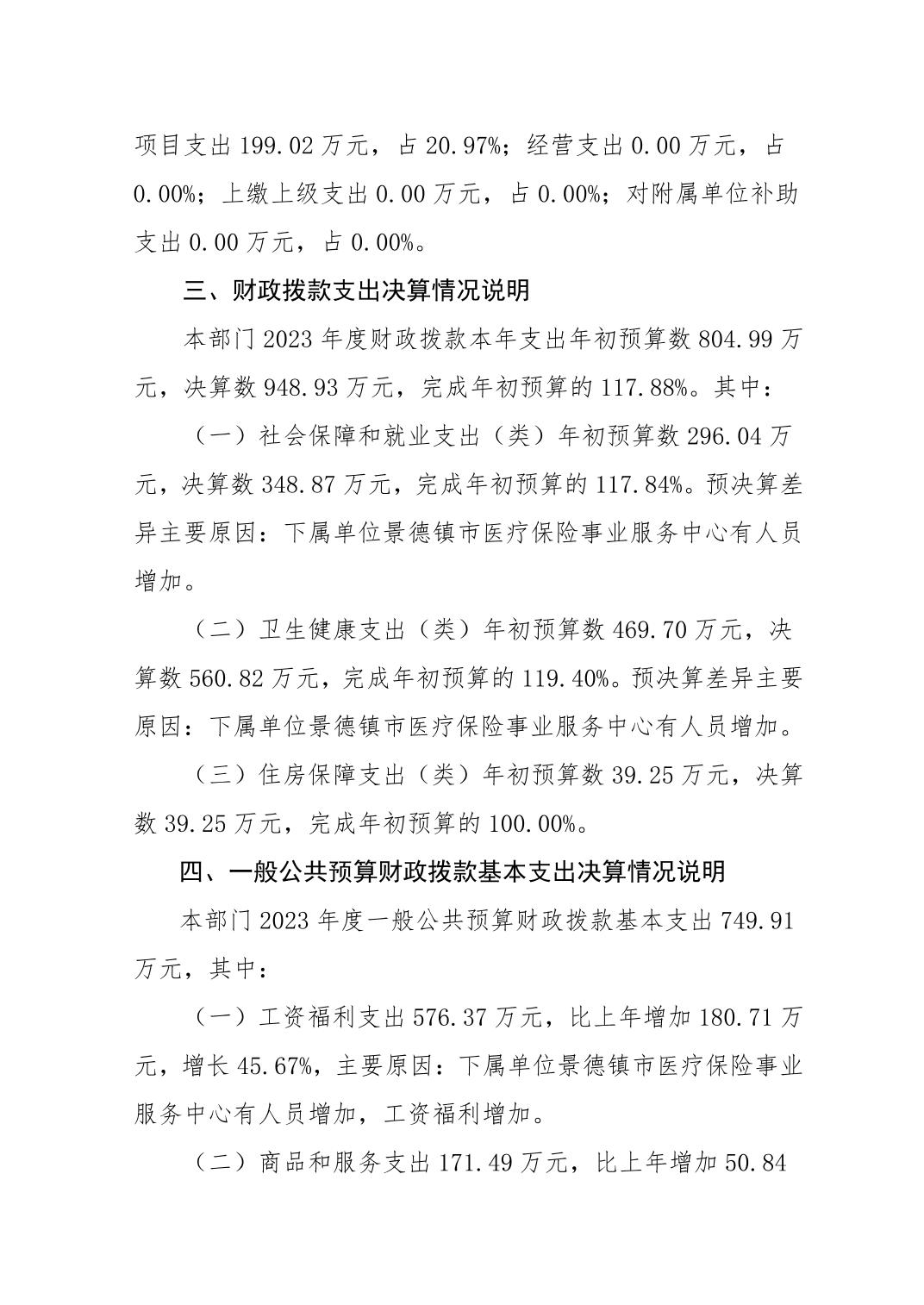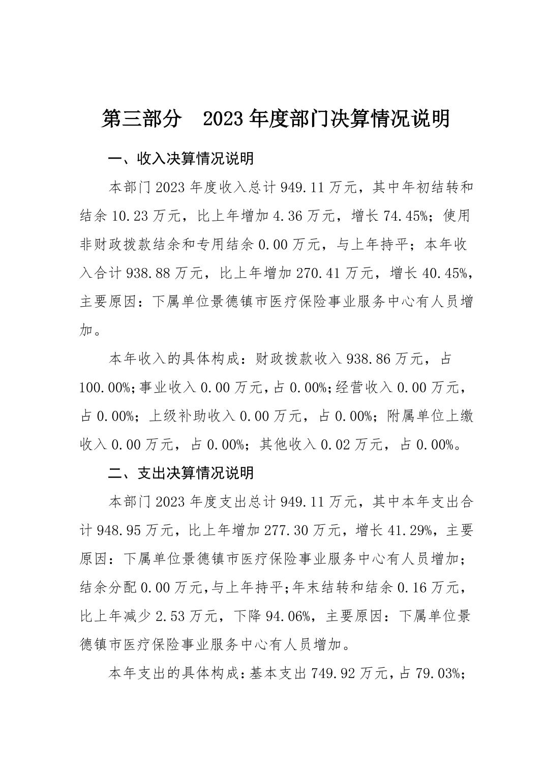 景德镇市医疗保障局2023年部门决算
