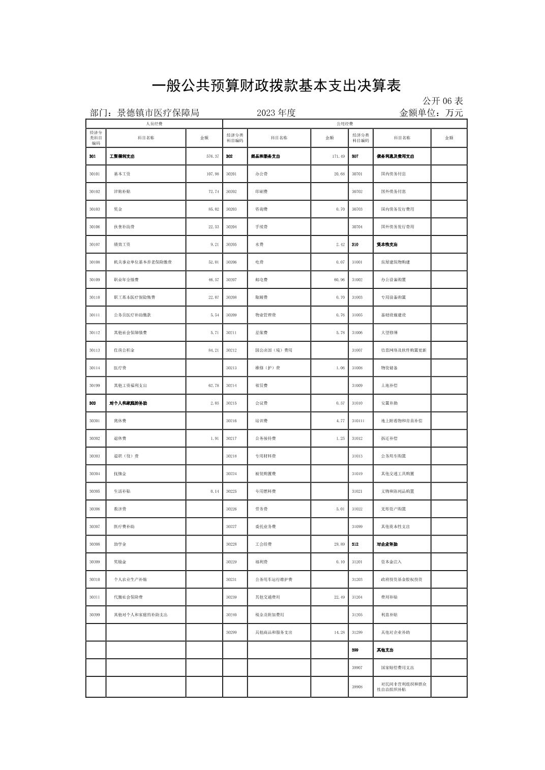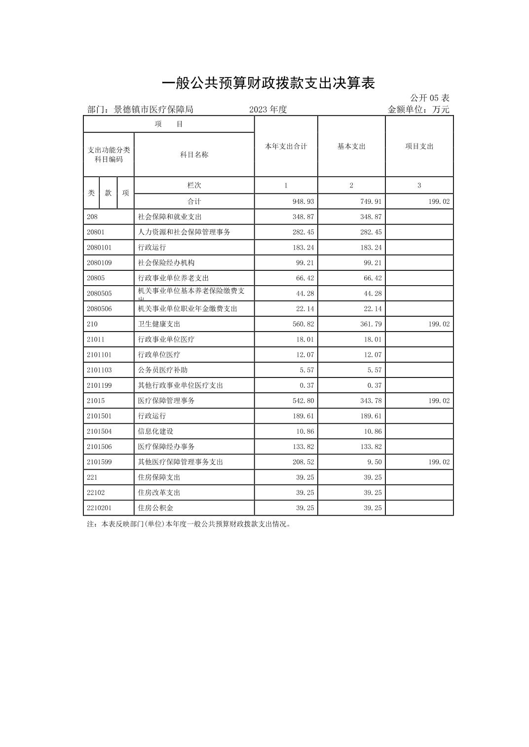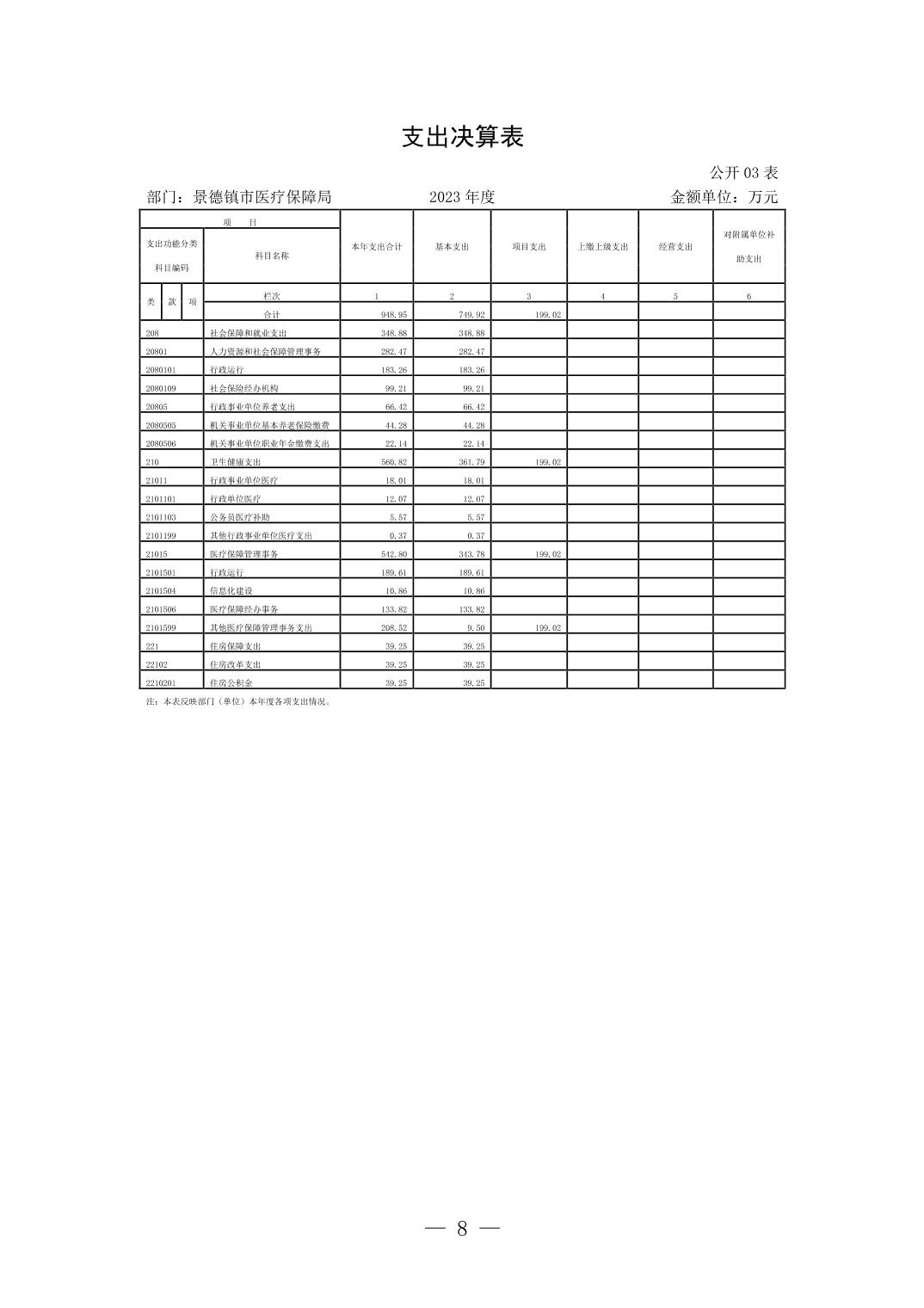 景德镇市医疗保障局2023年部门决算